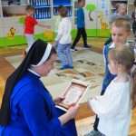 Również 14 października w progi naszego przedszkola zagościł pan Burmistrz Mieczysław Piziurny wręczając na ręce s. Dyrektor Magdaleny Rut piękny bukiet kwiatów, składając najserdeczniejsze życzenia dla wszystkich pracowników Przedszkola parafialnego im. Św. Mikołaja w Radymnie.