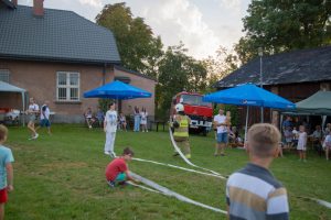 Do zabaw włączyli się także nasi strażacy, którzy nie tylko czuwali nad bezpieczeństwem ale przygotowali świetne konkurencje dla całych rodzin a także panowie z łowieckiego koła, którzy przygotowali wirtualną strzelnicę, na której wielu mgło poćwiczyć celność i wprawne oko.