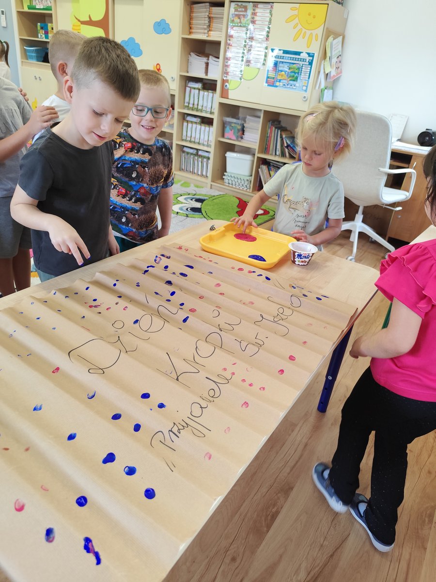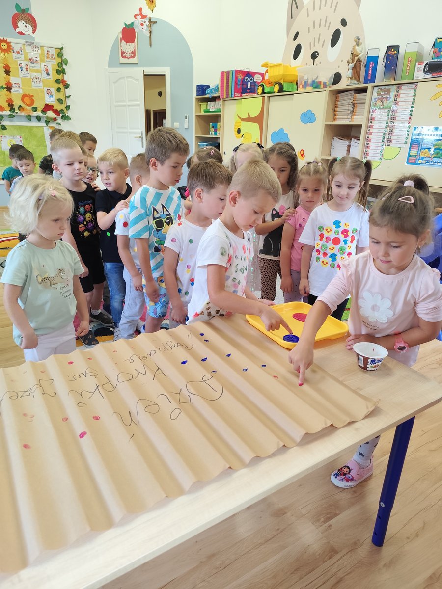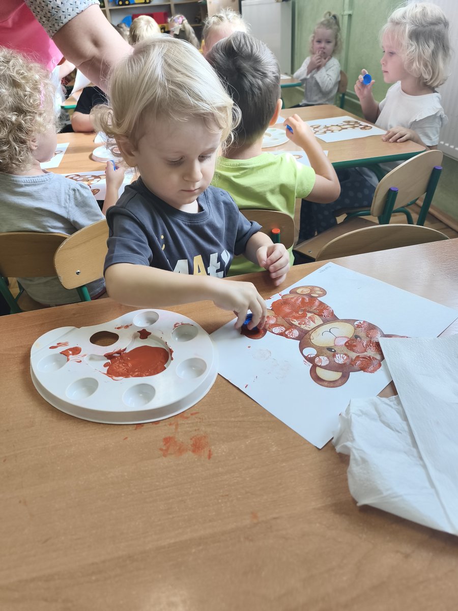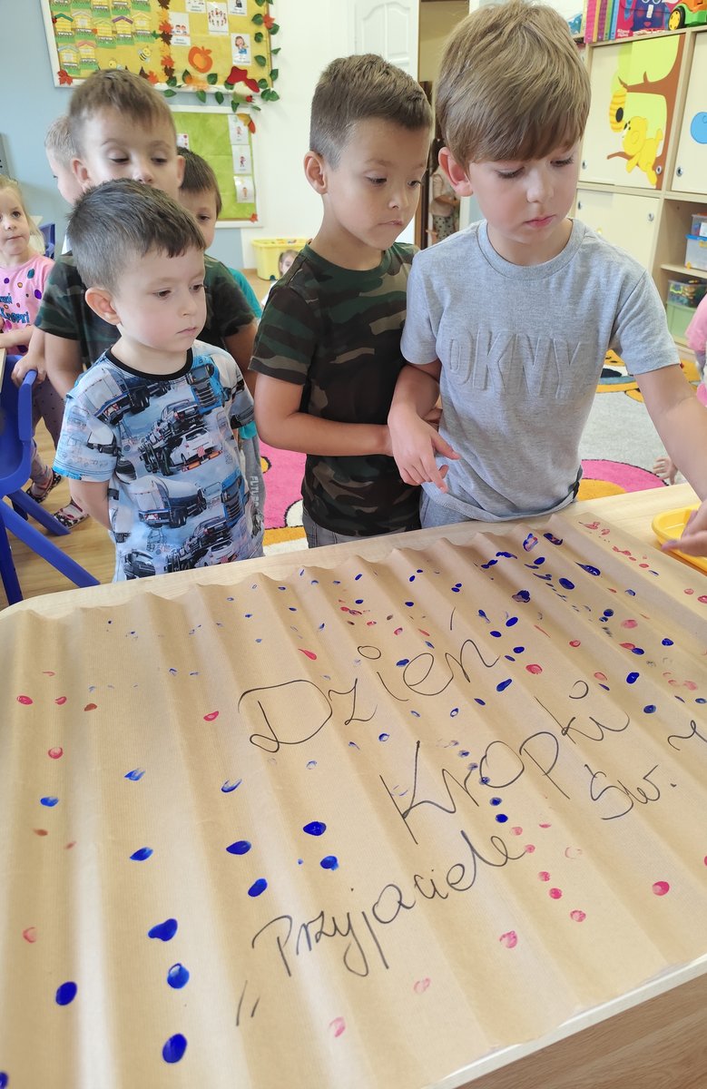 Dzień Kropki to wyjątkowe święto kreatywności ✨, odwagi i odkrywania talentów. Nasze maluszki również uczestniczyły w obchodach tego dnia! Dzieci przyszły do przedszkola ubrane w ubrania ozdobione kropkami, a na zajęciach plastycznych tworzyły swoje własne prace, inspirowane kropkami – kolorowe misie 🐻. Poprzez różnorodne zabawy ruchowe oraz plastyczne, dzieci rozwijały swoją wyobraźnię oraz zdolności manualne. Rozmawialiśmy także o tym, że każdy z nas jest wyjątkowy i posiada swoje talenty. 🌟 Oto kilka zdjęć pamiątkowych. Nie wszyscy jednak chcieli dać się sfotografować. Myślę że wkrótce pozwolą na to. Poniżej również fotorelacja z zabaw i prac w pozostałych grupach.