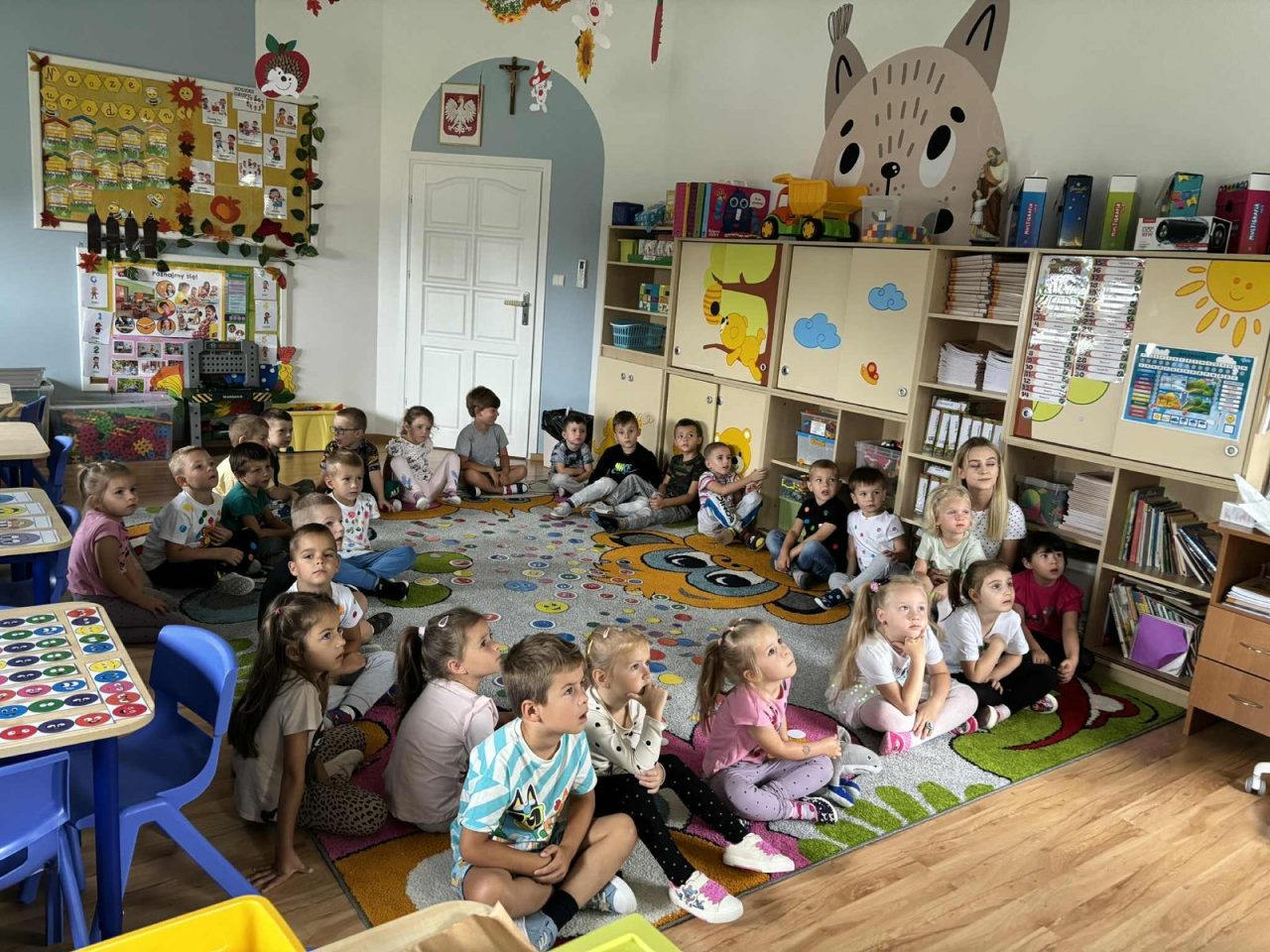 Na początku września skupiliśmy się na procesie adaptacji, aby pomóc dzieciom oswoić się z nowym środowiskiem. Zorganizowaliśmy zabawy integracyjne, śpiewaliśmy piosenki 🎵 i prowadziliśmy rozmowy o tym, co dzieci lubią, a czego nie lubią. Dzieci miały możliwość swobodnej zabawy, co pozwoliło im poznać siebie nawzajem i zbudować poczucie bezpieczeństwa w nowym otoczeniu. Cieszymy się, że nasze maluszki są otwarte na kontakt z nauczycielem i rówieśnikami, a także chętnie biorą udział w zajęciach muzycznych 🎶, ruchowych i plastycznych 🎨. Grupa szybko integruje się poprzez wspólne zabawy i aktywności!