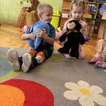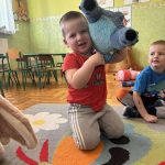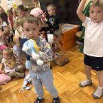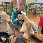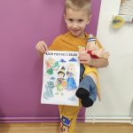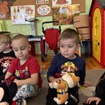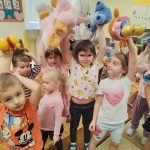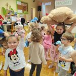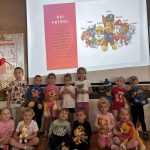 Na początku dnia dzieci uczestniczyły w prezentacji dotyczącej tematyki bajek, gdzie przypomnieliśmy sobie, dlaczego bajki są tak ważne i czego nas uczą. 📚 Następnie przedszkolaki z dumą prezentowały swoje przyniesione przytulanki przedstawiające ulubionych bohaterów. Każde dziecko miało okazję opowiedzieć o swojej postaci i bajce, z której pochodzi. 🧸✨