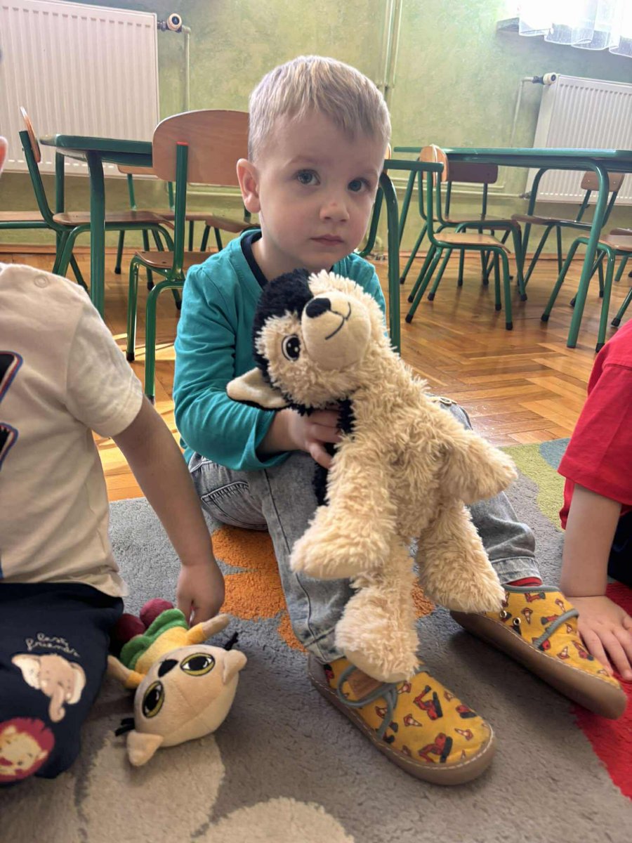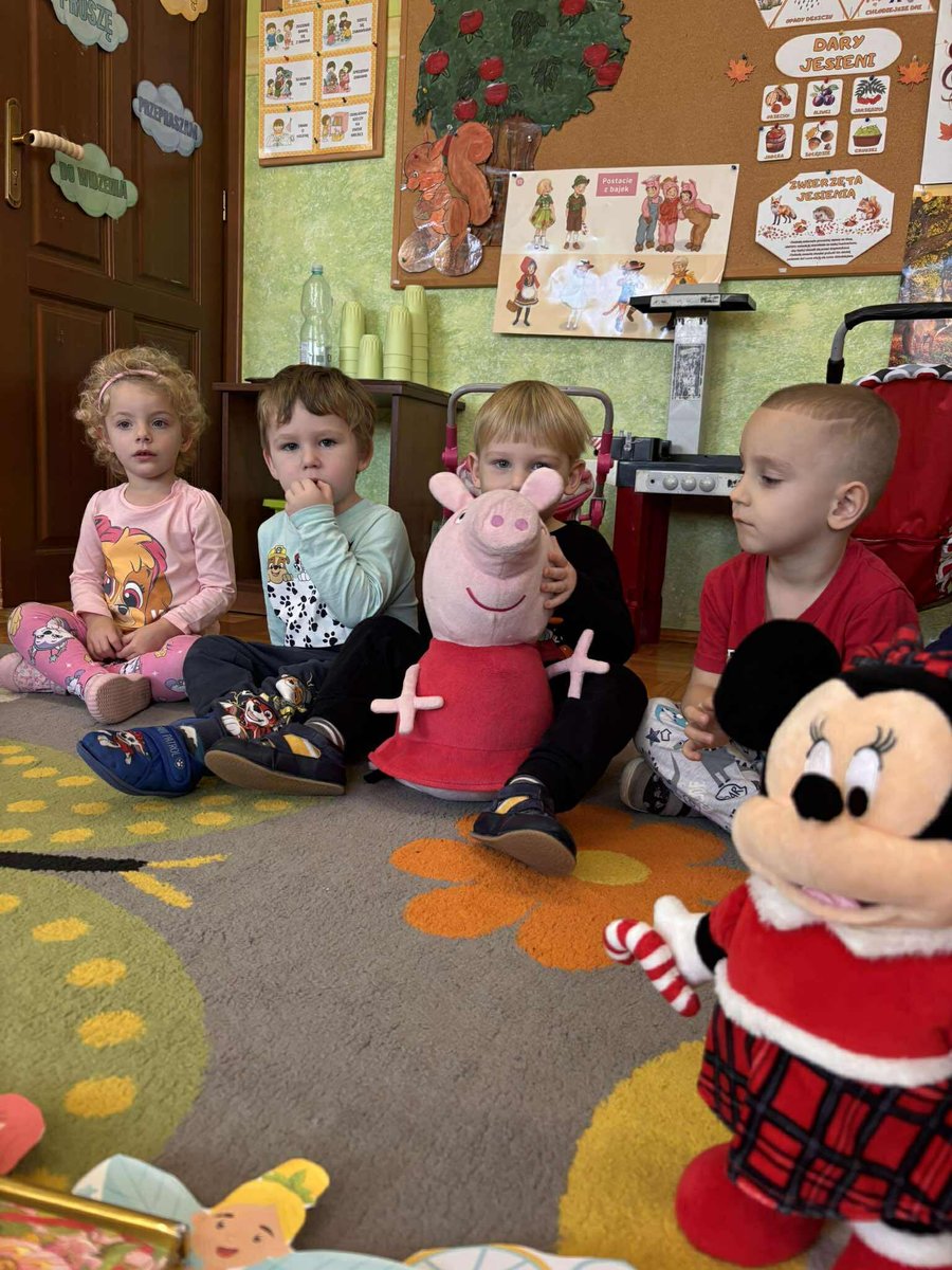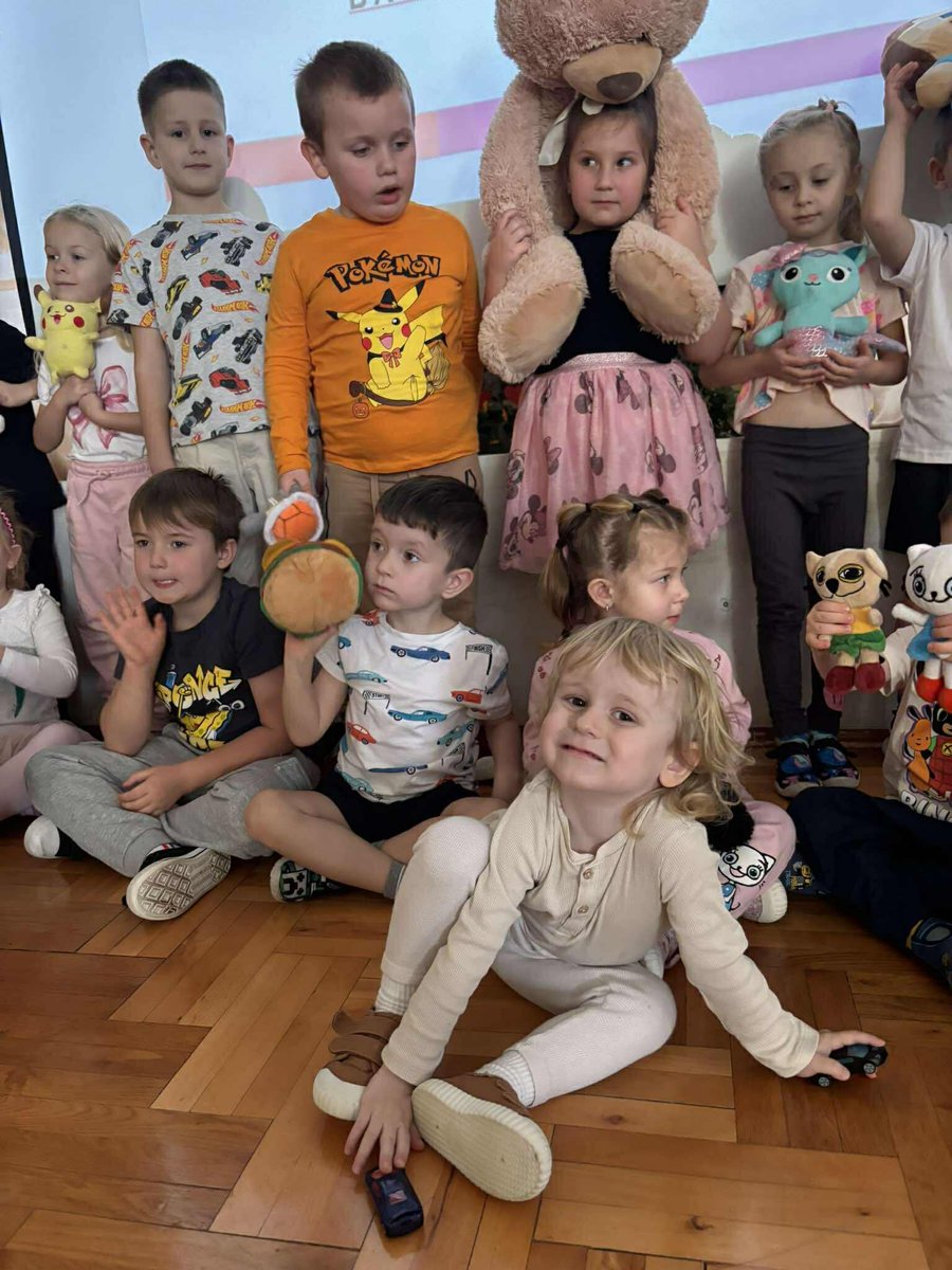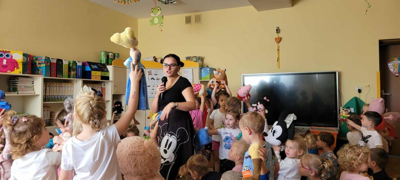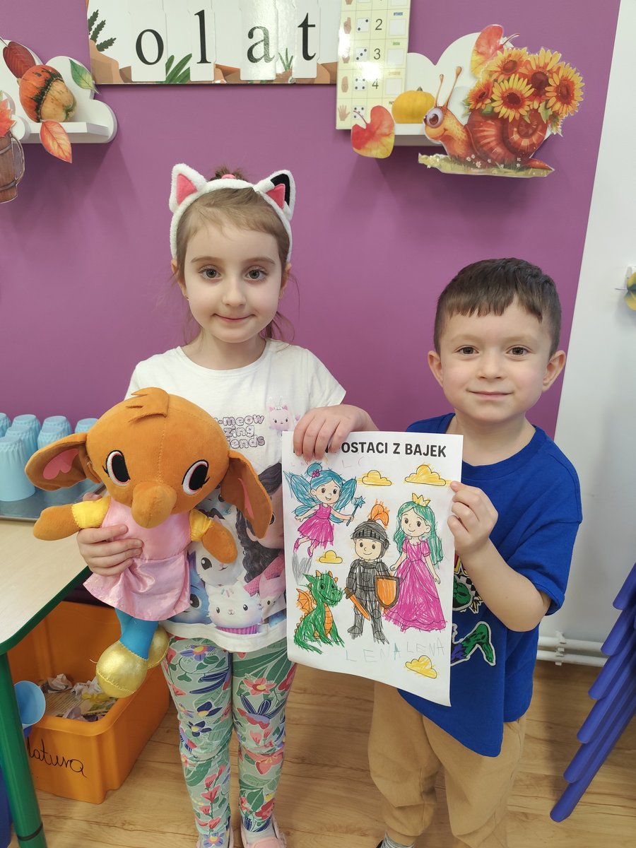 Na początku dnia dzieci uczestniczyły w prezentacji dotyczącej tematyki bajek, gdzie przypomnieliśmy sobie, dlaczego bajki są tak ważne i czego nas uczą. 📚 Następnie przedszkolaki z dumą prezentowały swoje przyniesione przytulanki przedstawiające ulubionych bohaterów. Każde dziecko miało okazję opowiedzieć o swojej postaci i bajce, z której pochodzi. 🧸✨