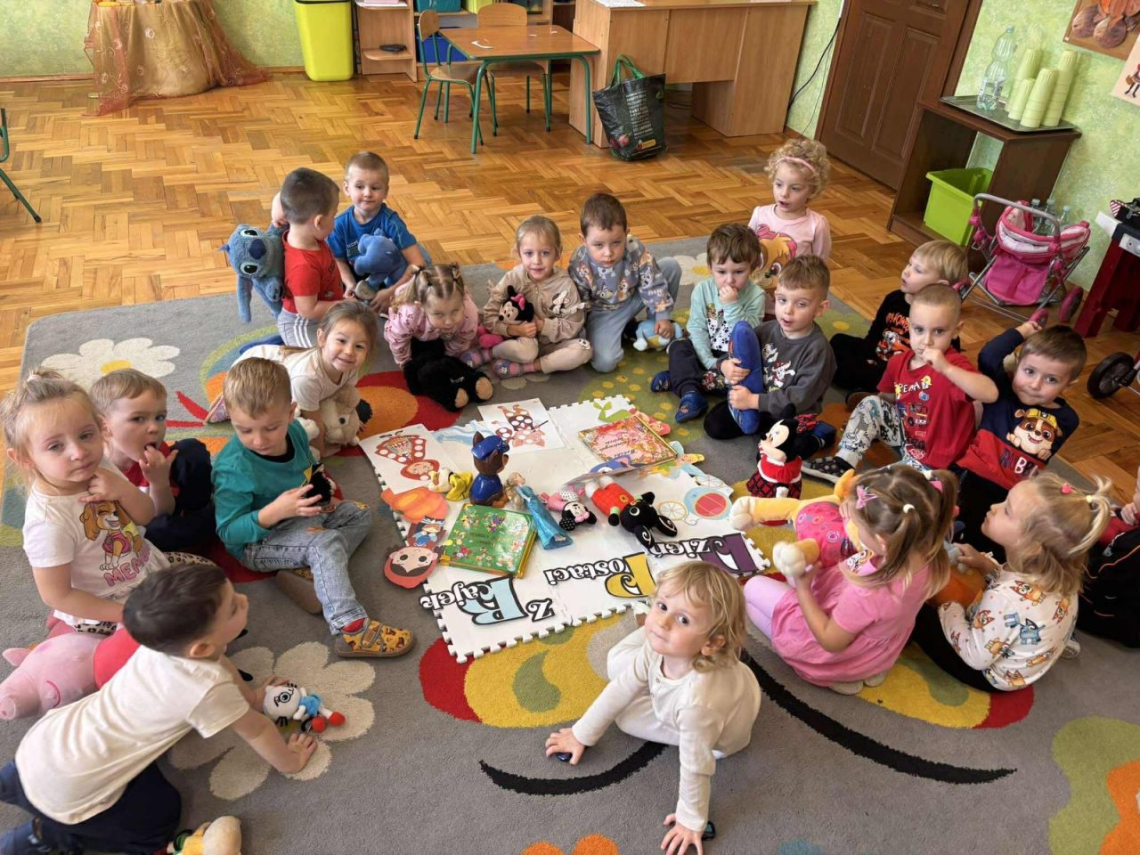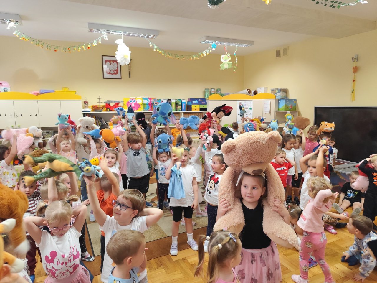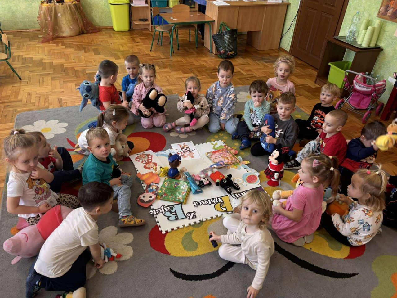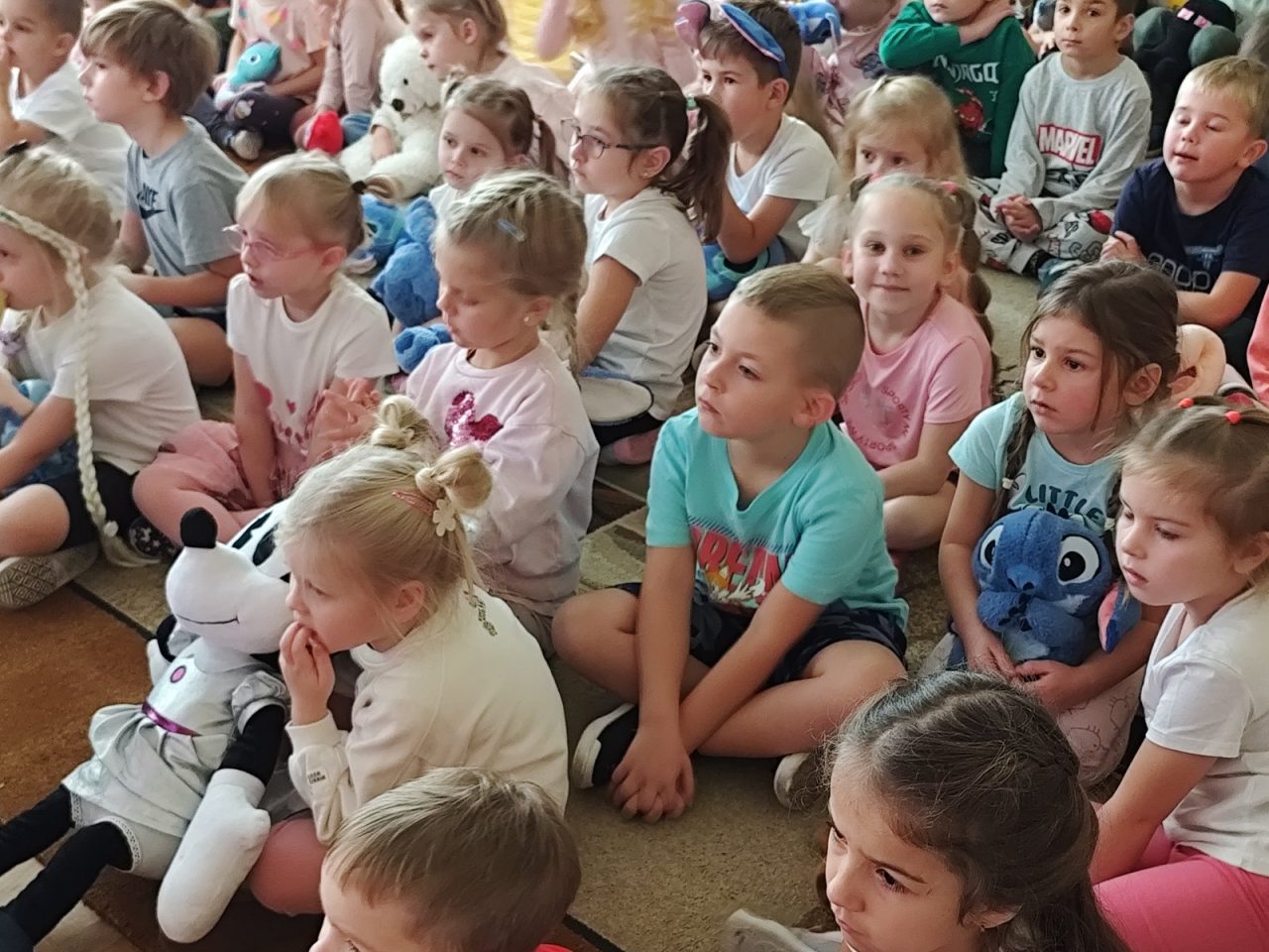 Na początku dnia dzieci uczestniczyły w prezentacji dotyczącej tematyki bajek, gdzie przypomnieliśmy sobie, dlaczego bajki są tak ważne i czego nas uczą. 📚 Następnie przedszkolaki z dumą prezentowały swoje przyniesione przytulanki przedstawiające ulubionych bohaterów. Każde dziecko miało okazję opowiedzieć o swojej postaci i bajce, z której pochodzi. 🧸✨