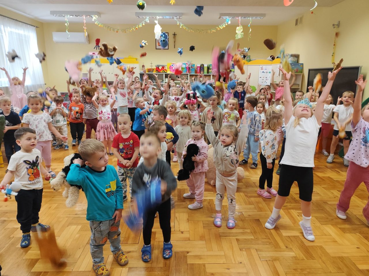 Kulminacyjnym punktem dnia był taniec inspirowany bajką „Psi Patrol”, w którym wszyscy uczestniczyli z ogromnym zaangażowaniem i uśmiechem. 🕺💃 Na zakończenie wspólnie obejrzeliśmy klasyczną bajkę o Królewnie Śnieżce i siedmiu krasnoludkach, co było doskonałym momentem na chwilę odpoczynku po pełnym wrażeń dniu. 🌈