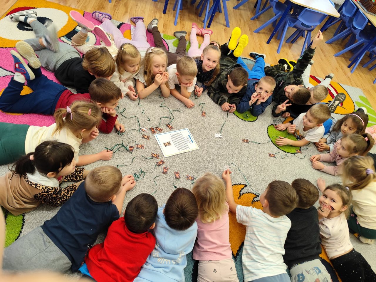 Podczas zajęć 12.12.2023 r dzieci z grupy ” Przyjaciele Św. Józefa” uczestniczyły w dwóch aktywnościach rozwijających motorykę małą, koordynację ruchową oraz kreatywność. Całe zajęcia zostały połączone w jeden blok tematyczny, którego celem było rozwijanie sprawności manualnej, umiejętności współpracy oraz satysfakcji z własnej twórczości. 🌈