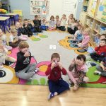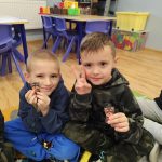 Zajęcia upłynęły w atmosferze kreatywnej zabawy i aktywności ruchowej. Połączenie części plastycznej z elementami ruchu pozwoliło dzieciom rozwijać różne umiejętności, a jednocześnie utrzymać wysoki poziom zaangażowania i motywacji. 🎈