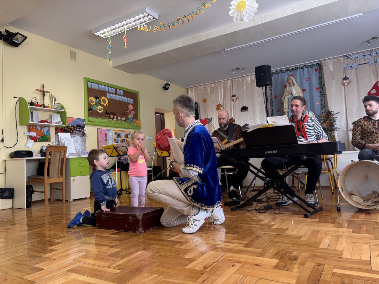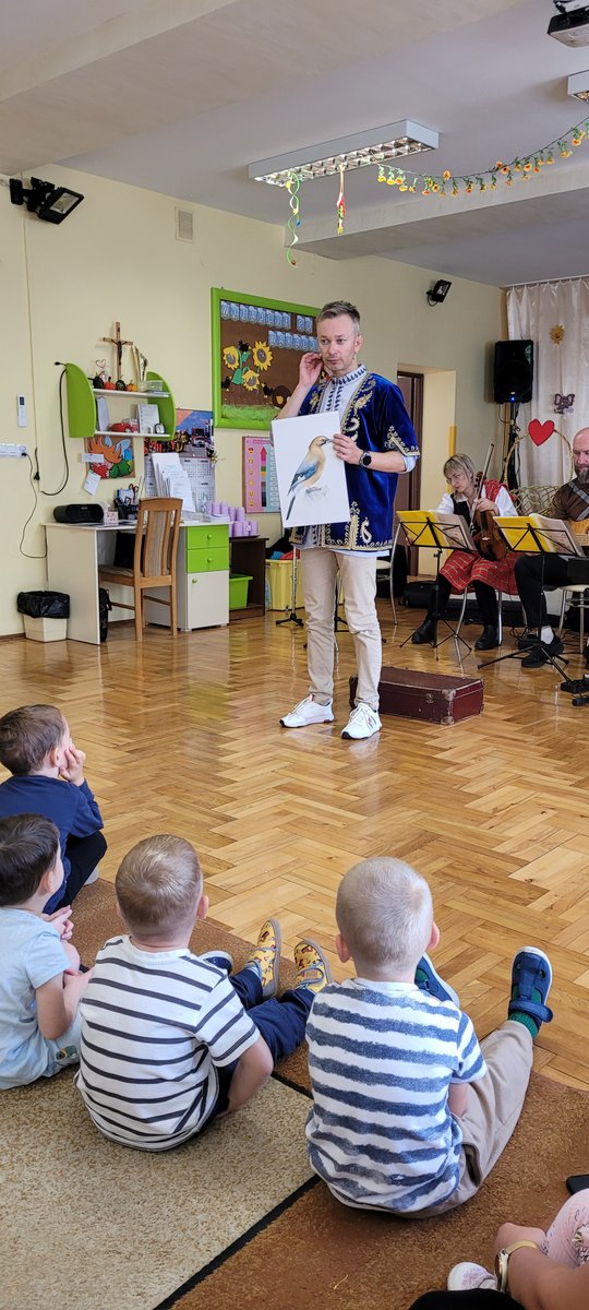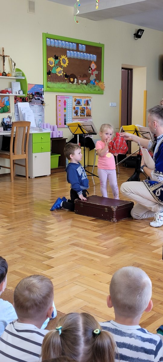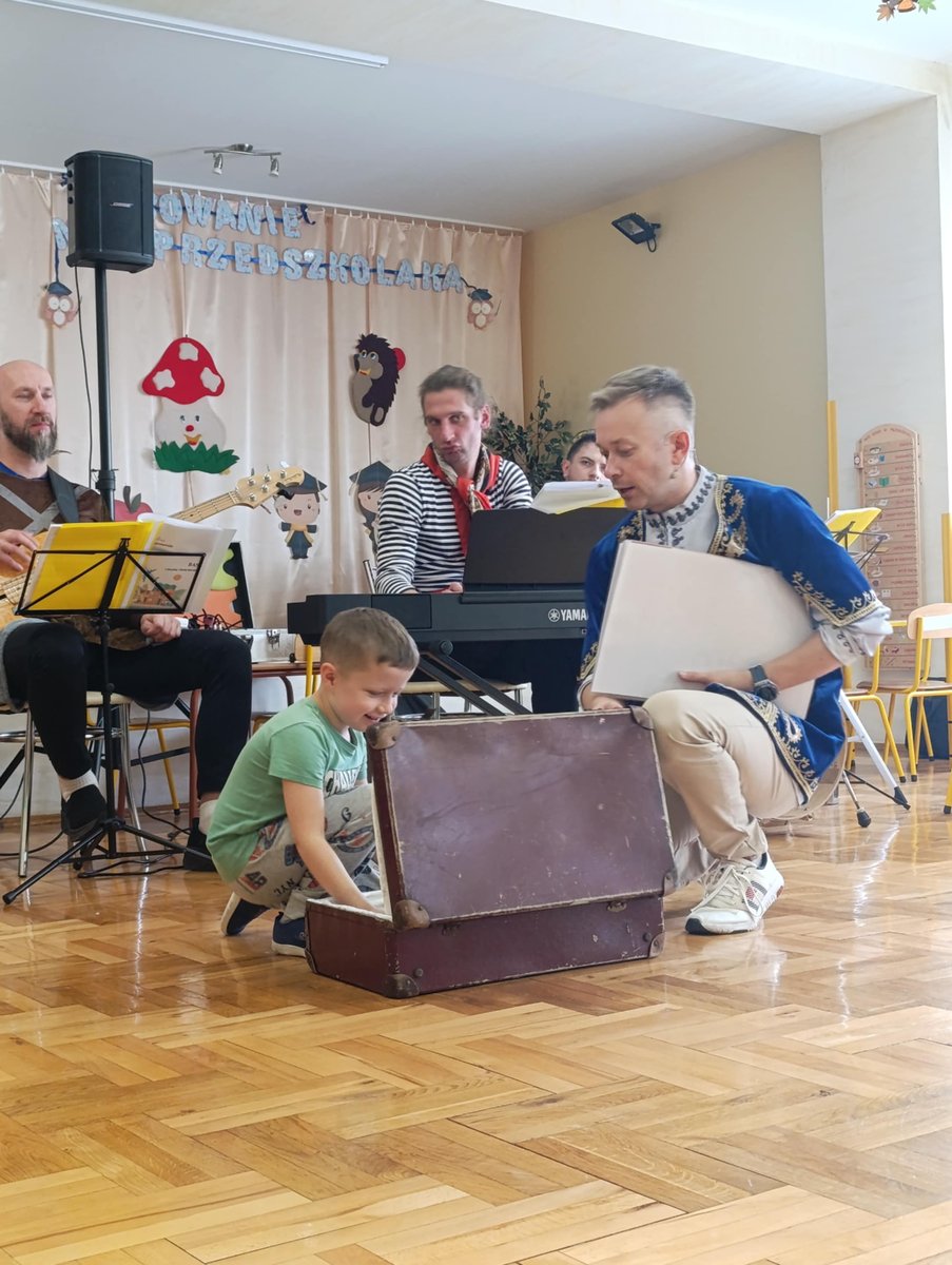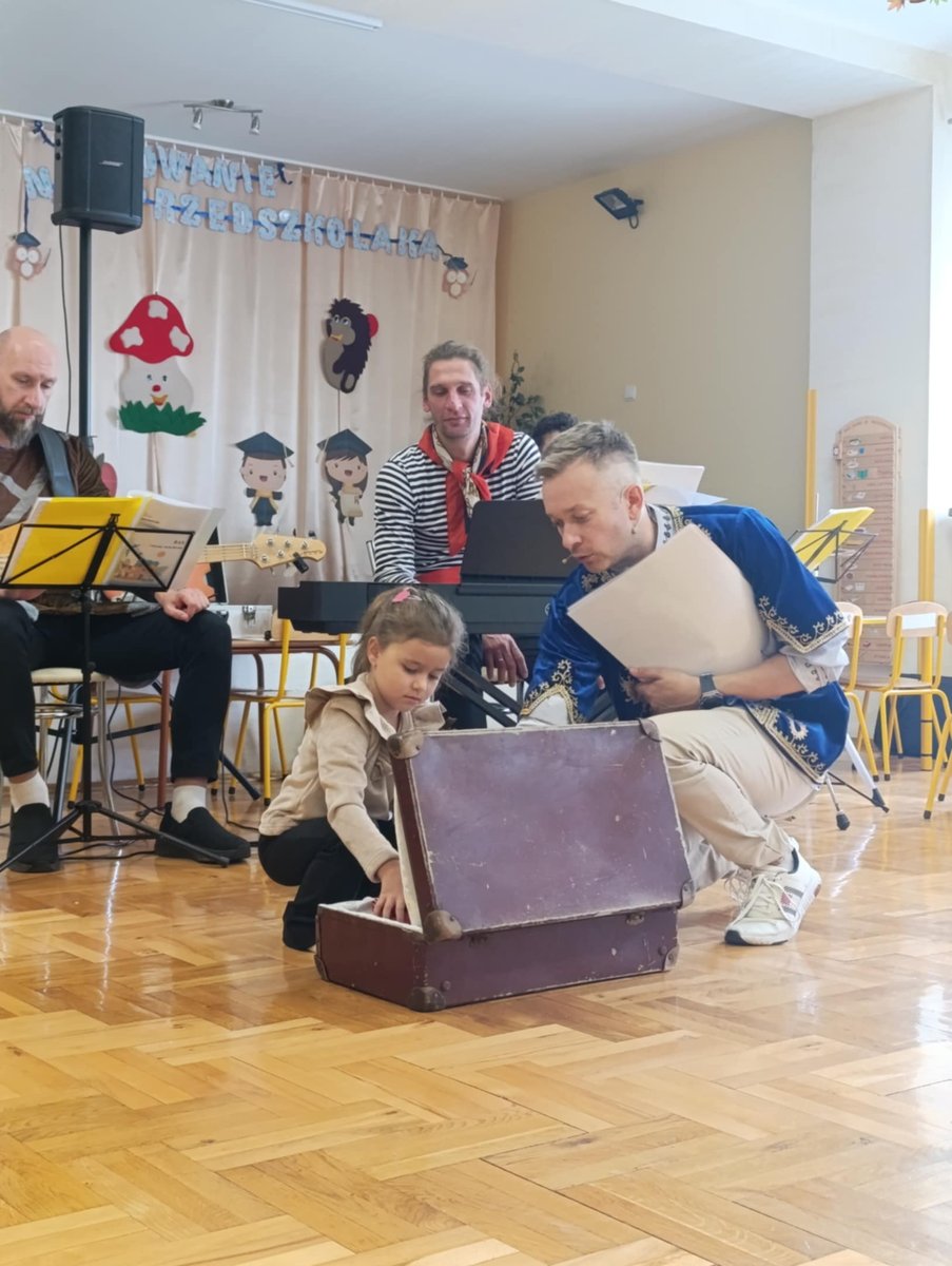 Dnia 09.10.2025 r. gościliśmy w naszym przedszkolu Mobilną filharmonie z pierwszym koncertem z cyklu „Cztery strony świata muzyki”. Wyruszyliśmy w muzyczną podróż po Europie. Od skocznych bałkańskich tańców ,po polskie oberki i czeskie polki, po francuskie walczyki i eleganckie wiedeńskie melodie – właśnie takich melodii mogliśmy dziś posłuchać.