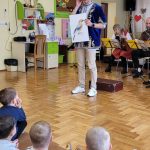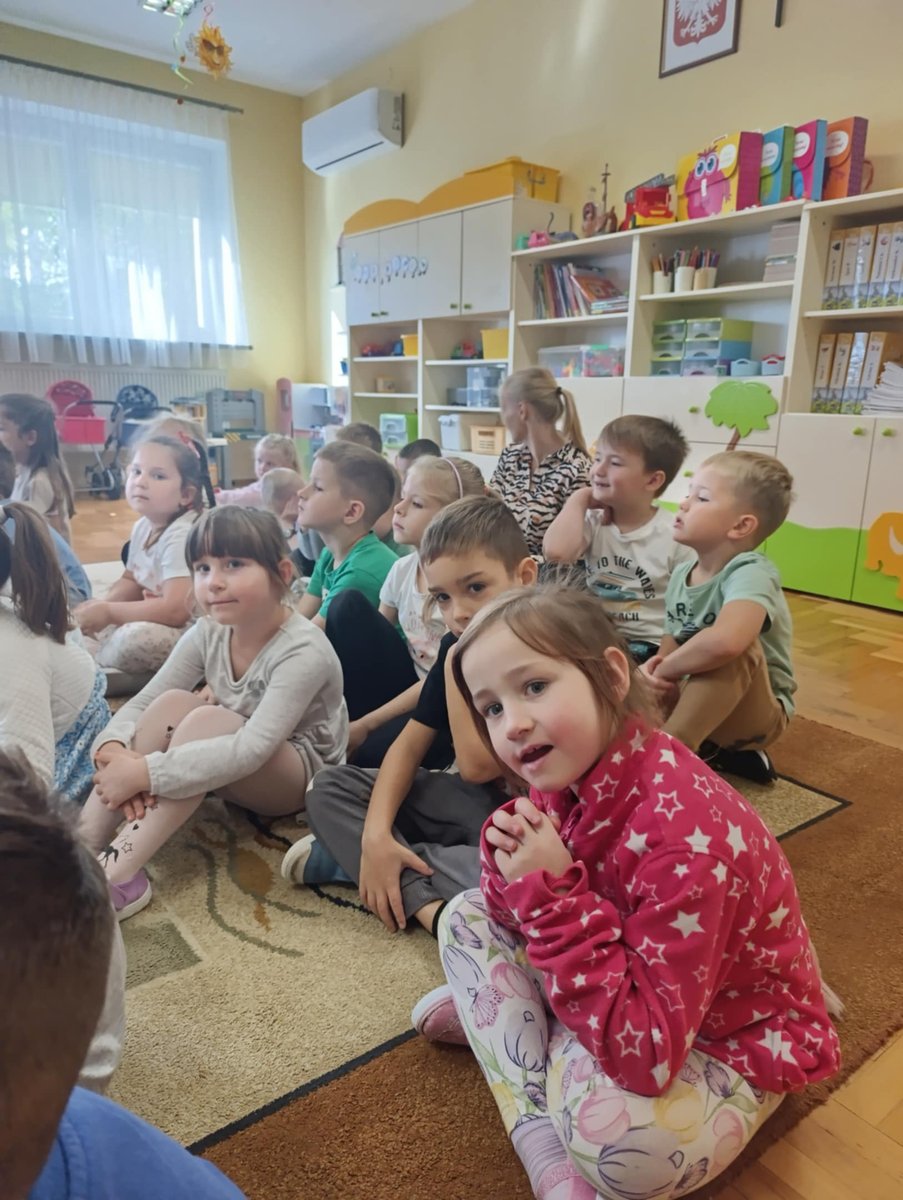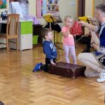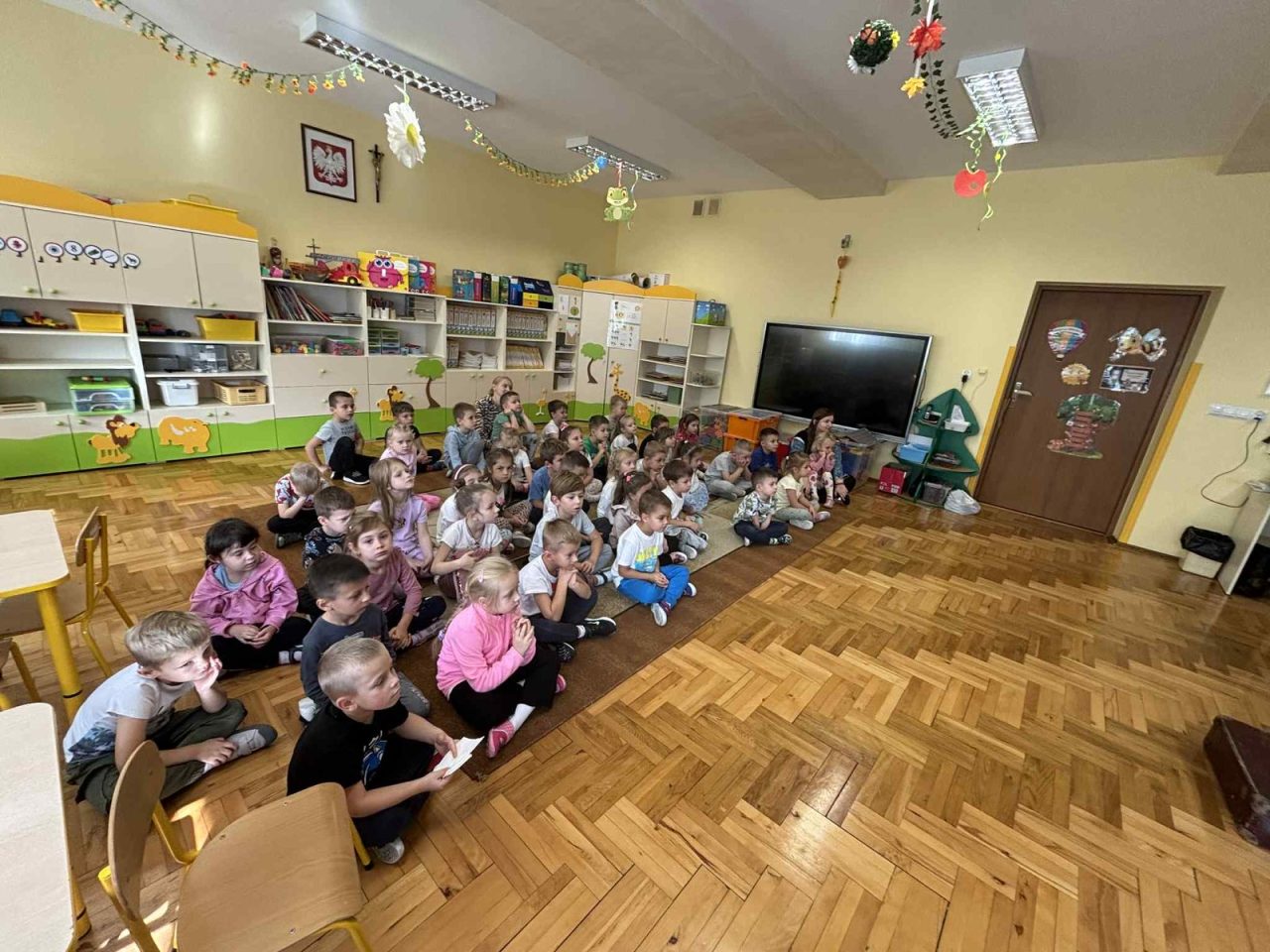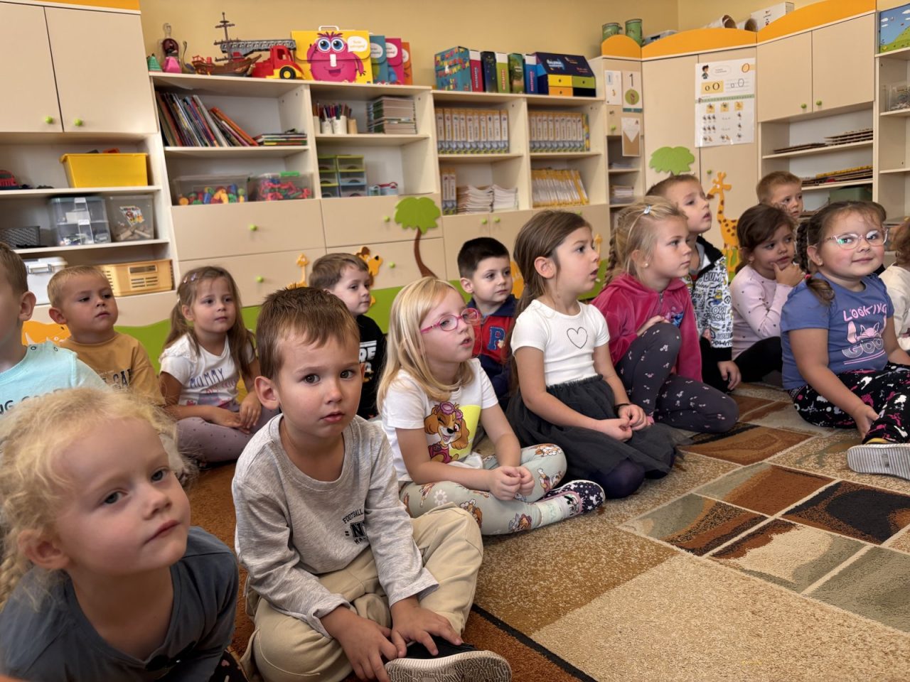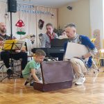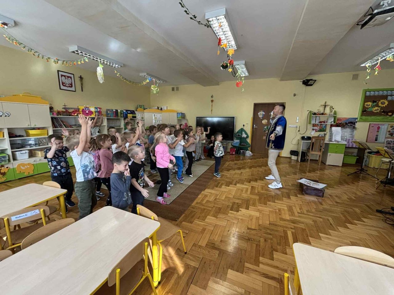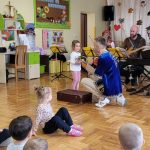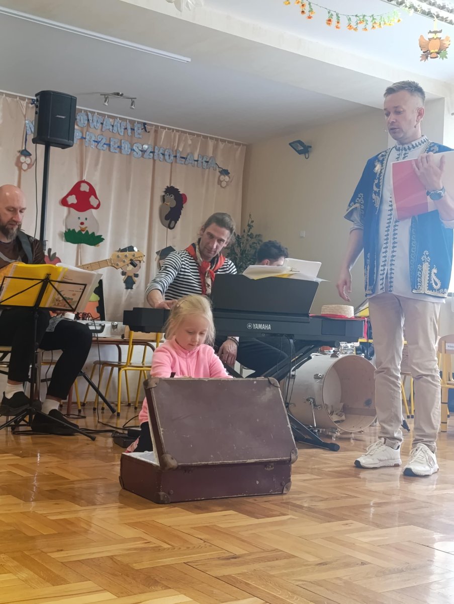 Dnia 09.10.2025 r. gościliśmy w naszym przedszkolu Mobilną filharmonie z pierwszym koncertem z cyklu „Cztery strony świata muzyki”. Wyruszyliśmy w muzyczną podróż po Europie. Od skocznych bałkańskich tańców ,po polskie oberki i czeskie polki, po francuskie walczyki i eleganckie wiedeńskie melodie – właśnie takich melodii mogliśmy dziś posłuchać.