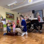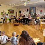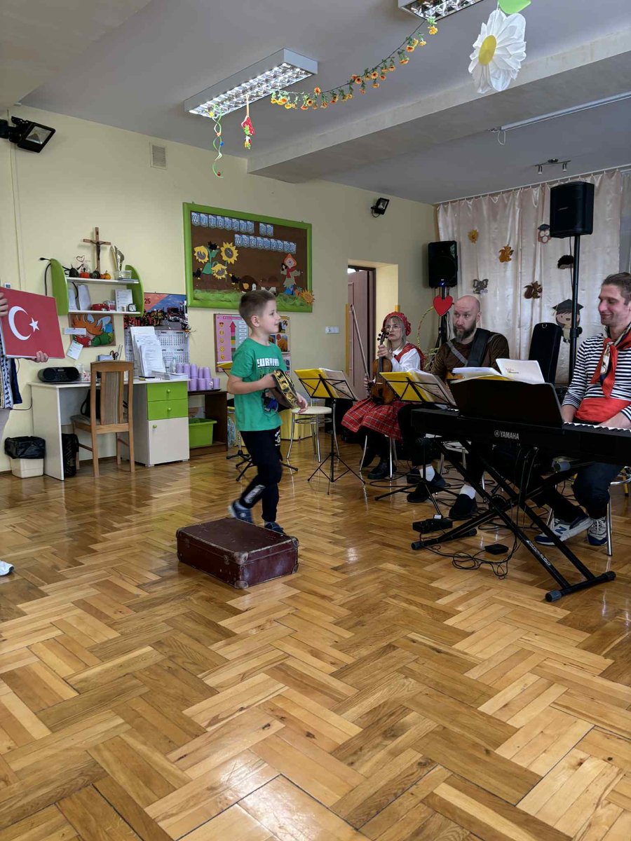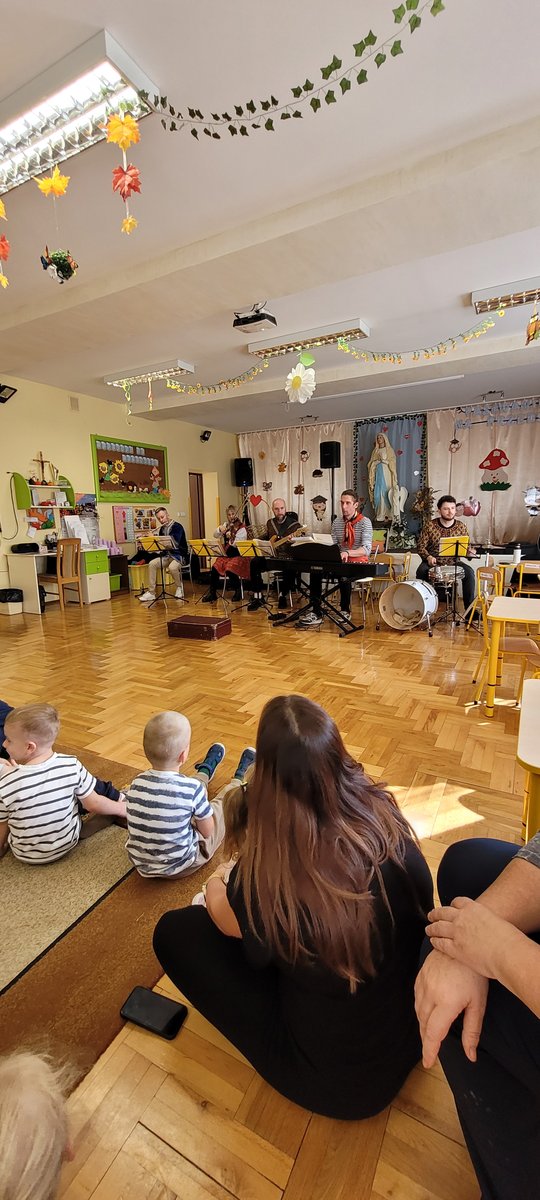Dzieci słuchały muzyków z przyjemnością i nie jedna mała nóżka wystukiwała rytm melodii 🙂🎸🎹🎻🥁🪘🎵