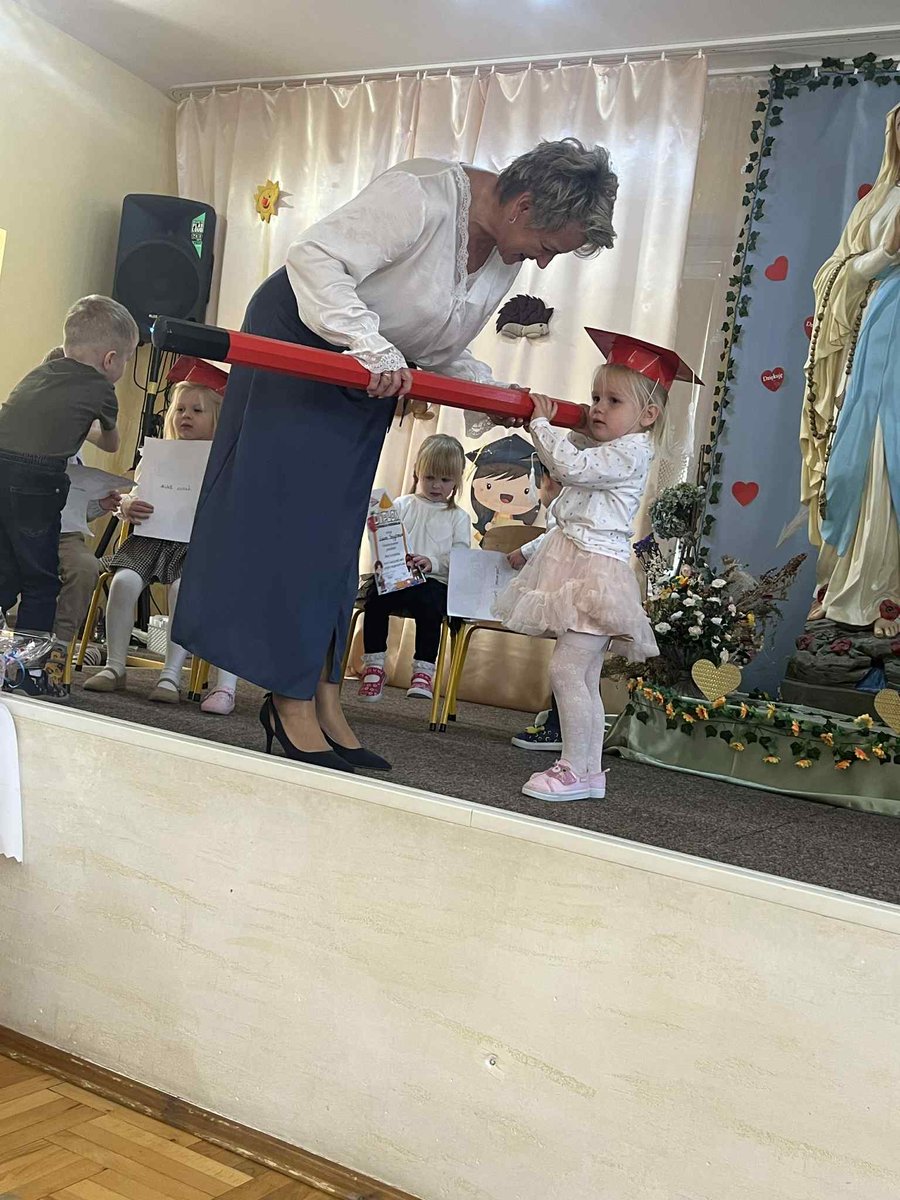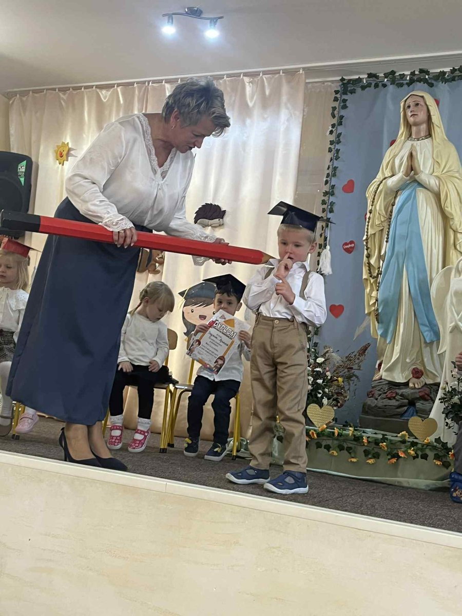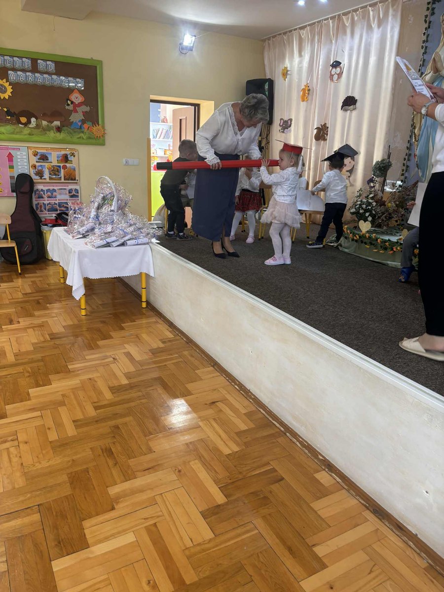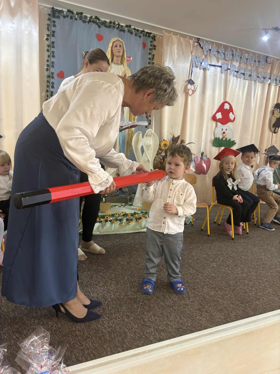Kluczowym momentem uroczystości było symboliczne pasowanie, które odbyło się w obecności pani Dyrektor przedszkola Małgorzaty Sobejko oraz nauczycieli. 👩🏫 Każde dziecko otrzymało pamiątkowy dyplom oraz drobny upominek 🎁, który będzie przypominał o tym szczególnym dniu.