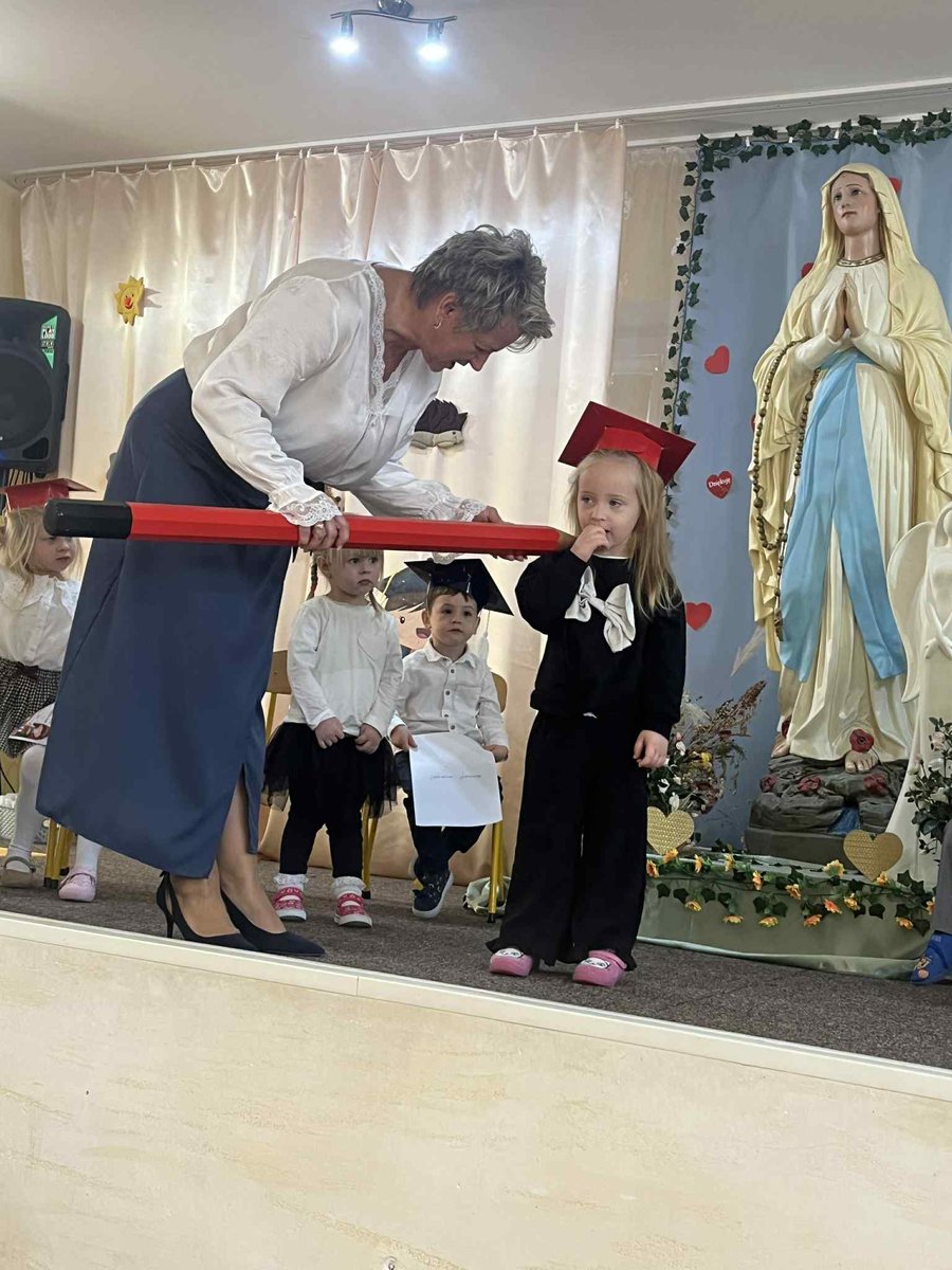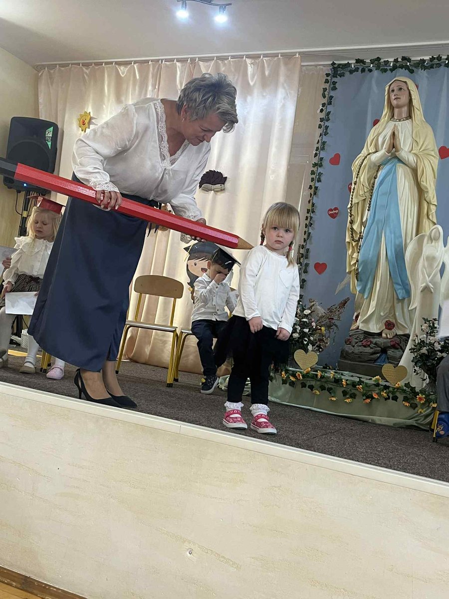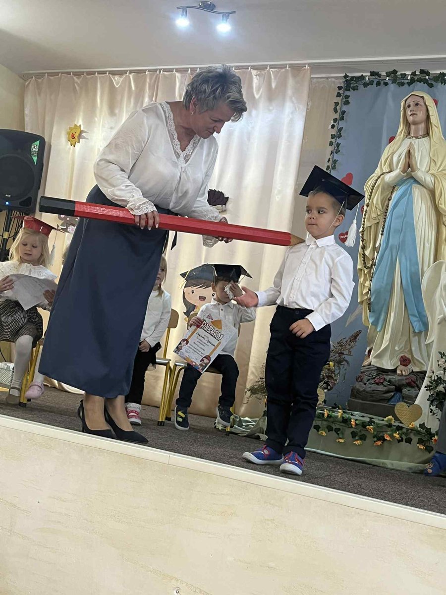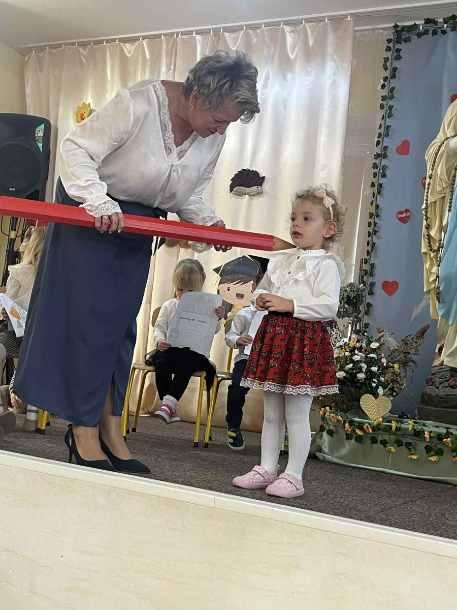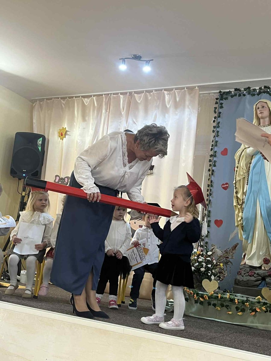 Kluczowym momentem uroczystości było symboliczne pasowanie, które odbyło się w obecności pani Dyrektor przedszkola Małgorzaty Sobejko oraz nauczycieli. 👩🏫 Każde dziecko otrzymało pamiątkowy dyplom oraz drobny upominek 🎁, który będzie przypominał o tym szczególnym dniu.