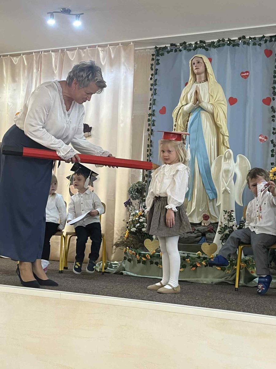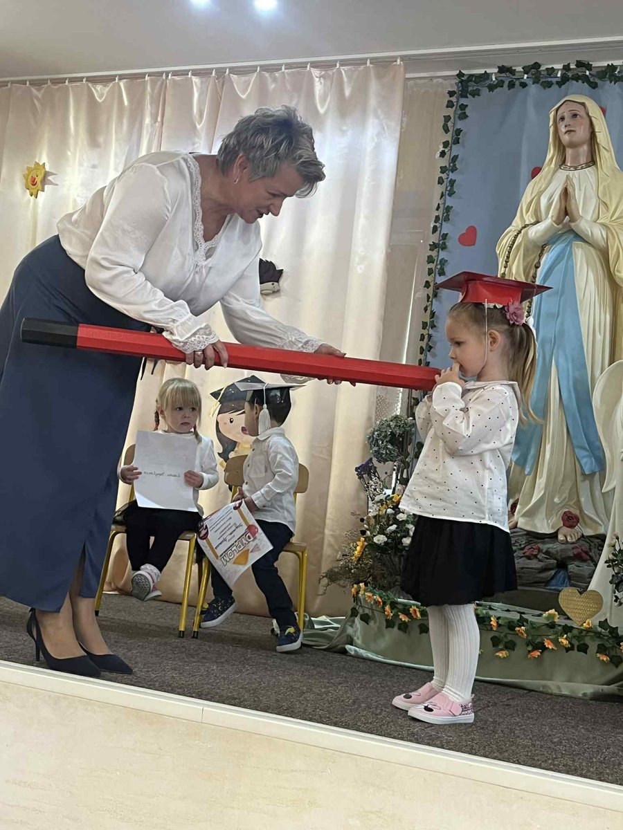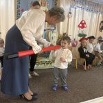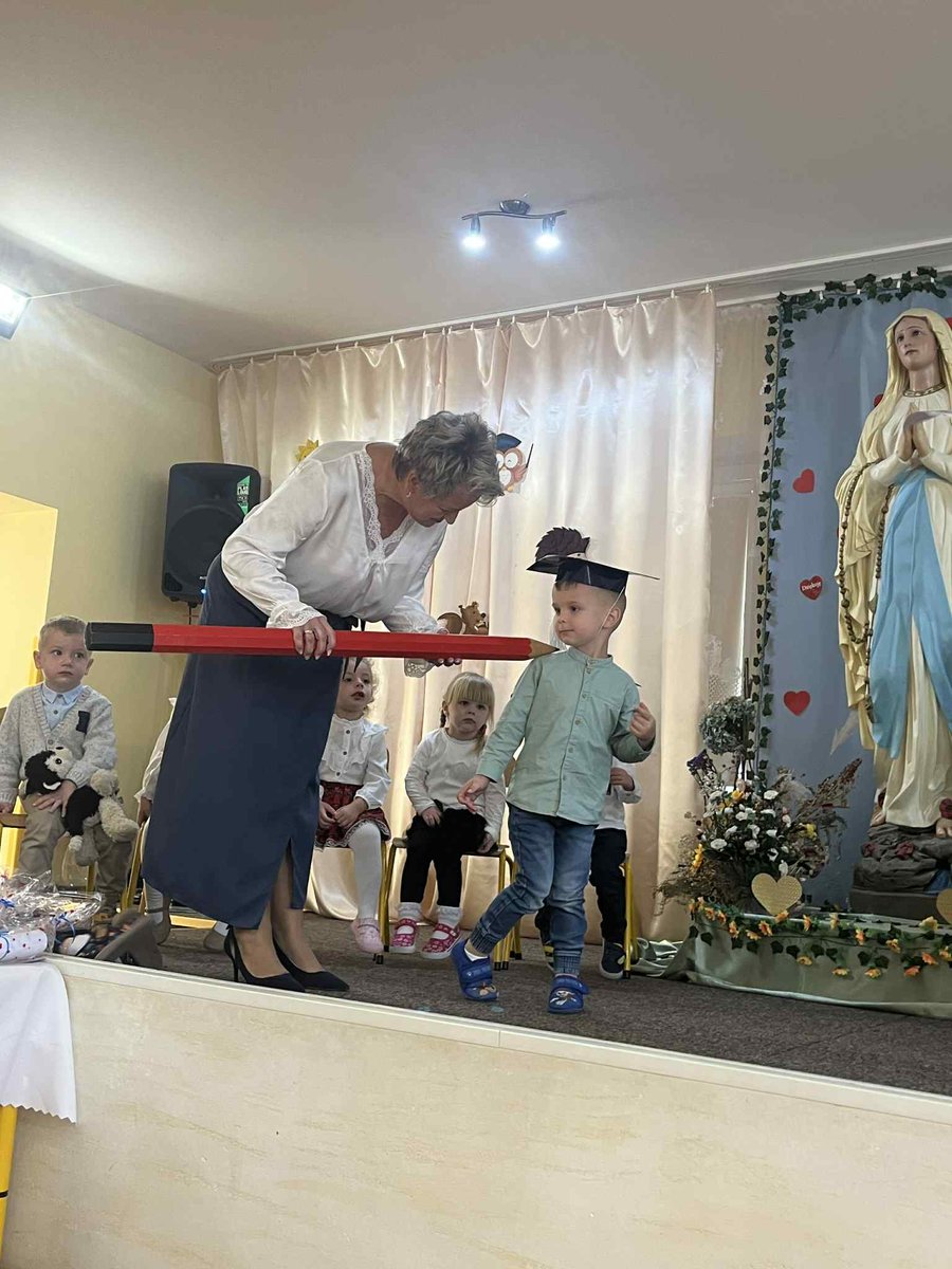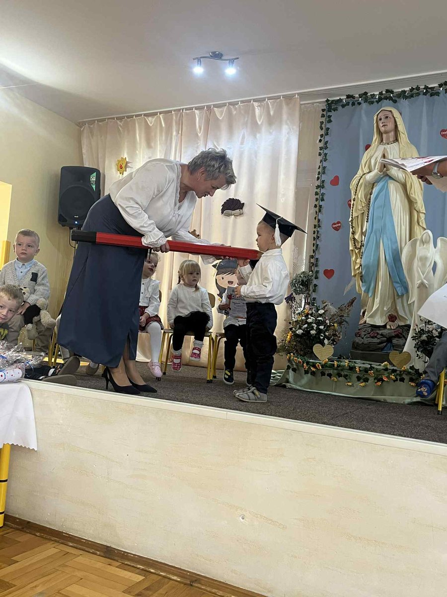 Kluczowym momentem uroczystości było symboliczne pasowanie, które odbyło się w obecności pani Dyrektor przedszkola Małgorzaty Sobejko oraz nauczycieli. 👩🏫 Każde dziecko otrzymało pamiątkowy dyplom oraz drobny upominek 🎁, który będzie przypominał o tym szczególnym dniu.