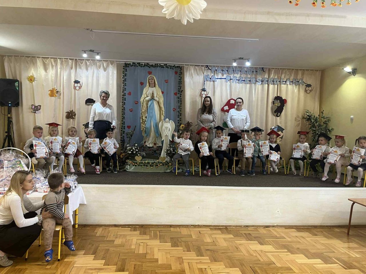 Uroczystość rozpoczęła się serdecznym powitaniem wszystkich zebranych dzieci. Przedszkolaki przygotowały piosenki i wierszyki dla wszystkich zebranych 😊. Wszyscy byli zachwyceni występami naszych małych artystów! 🌟