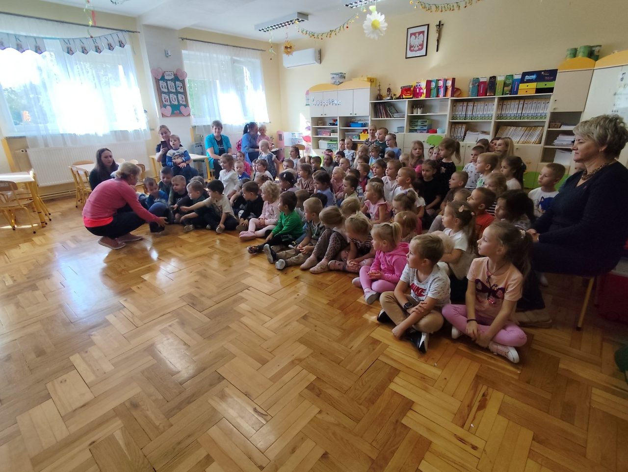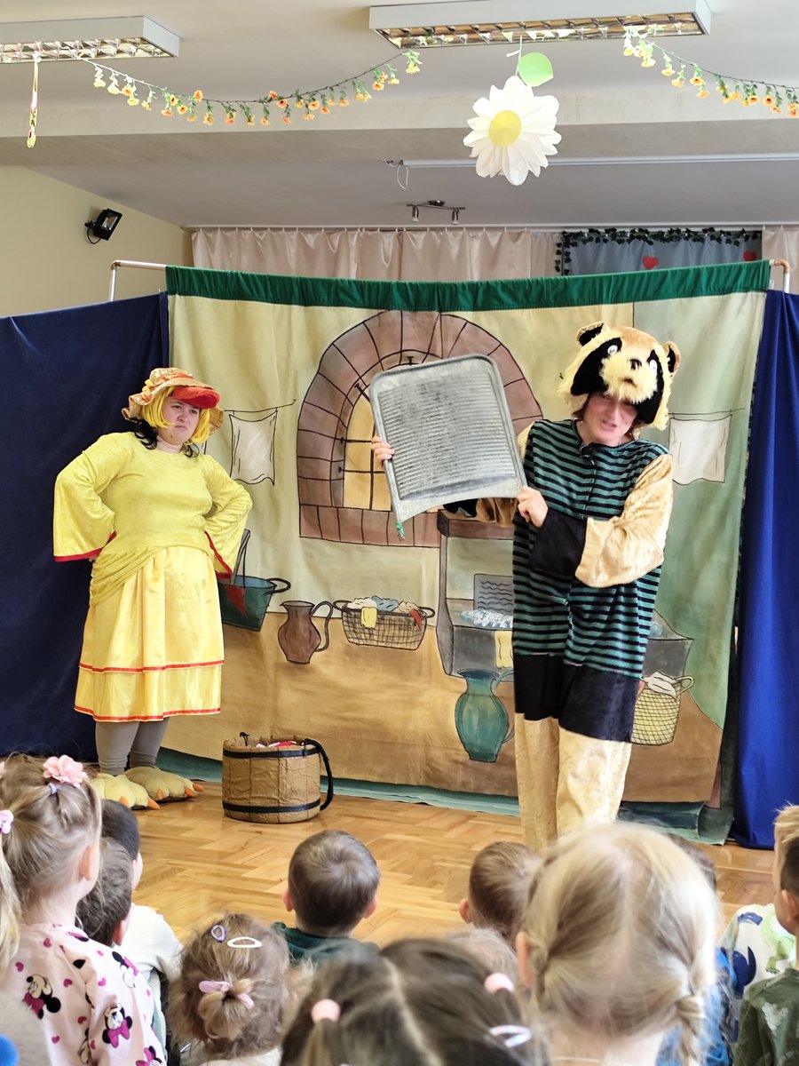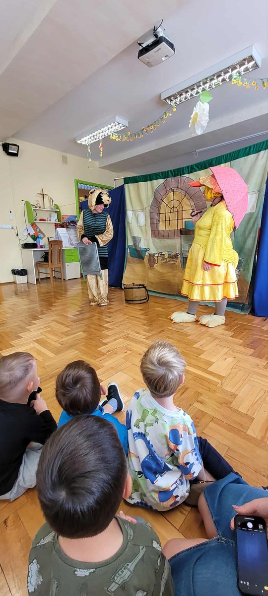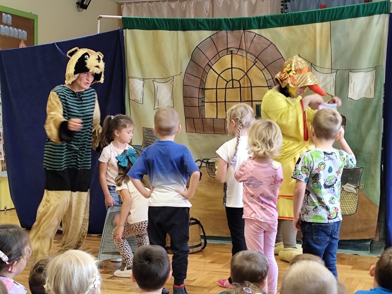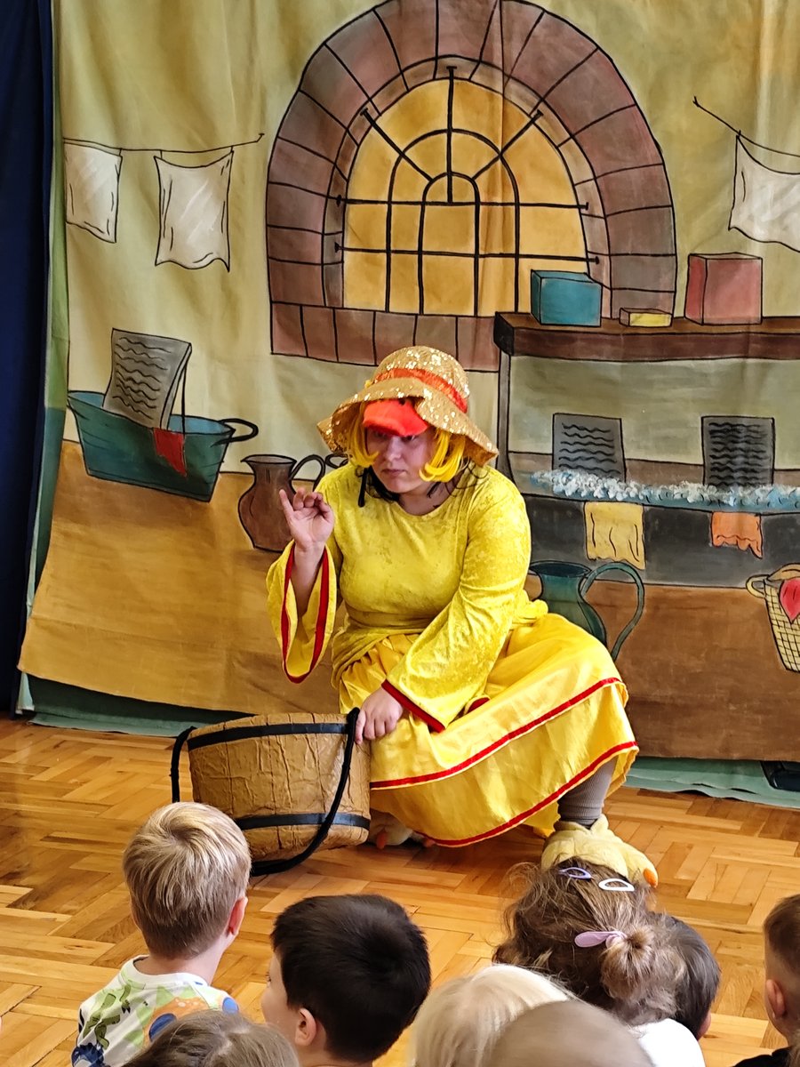 Dnia 02.10.2025 r. w naszym przedszkolu gościliśmy Teatrzyk „Krak” z Krakowa. Aktorzy zaprezentowali dla nas adaptację wiersza Jana Brzechwy „Kaczka Dziwaczka”, wystawioną pod tytułem „Kaczka Cudaczka”.