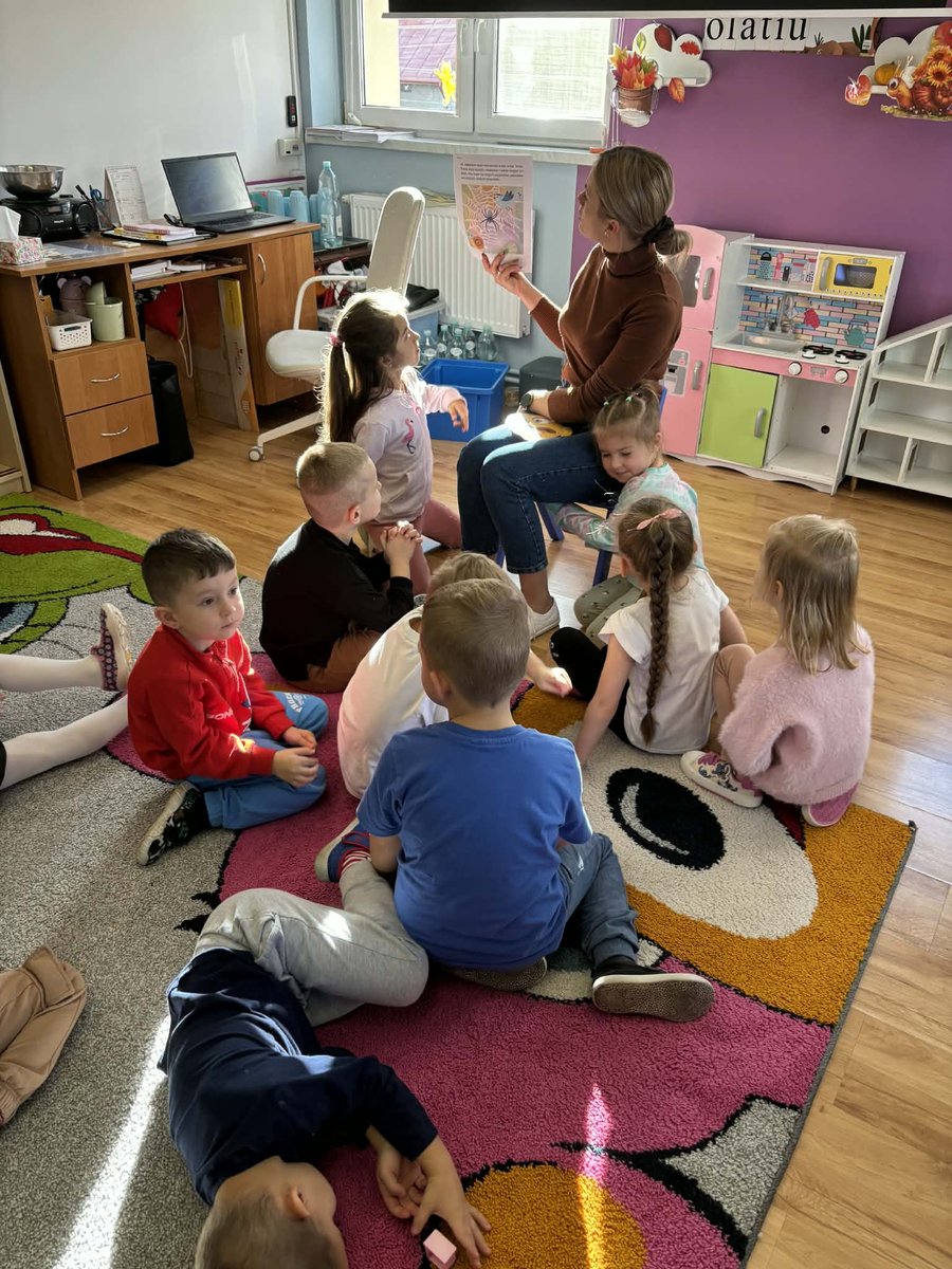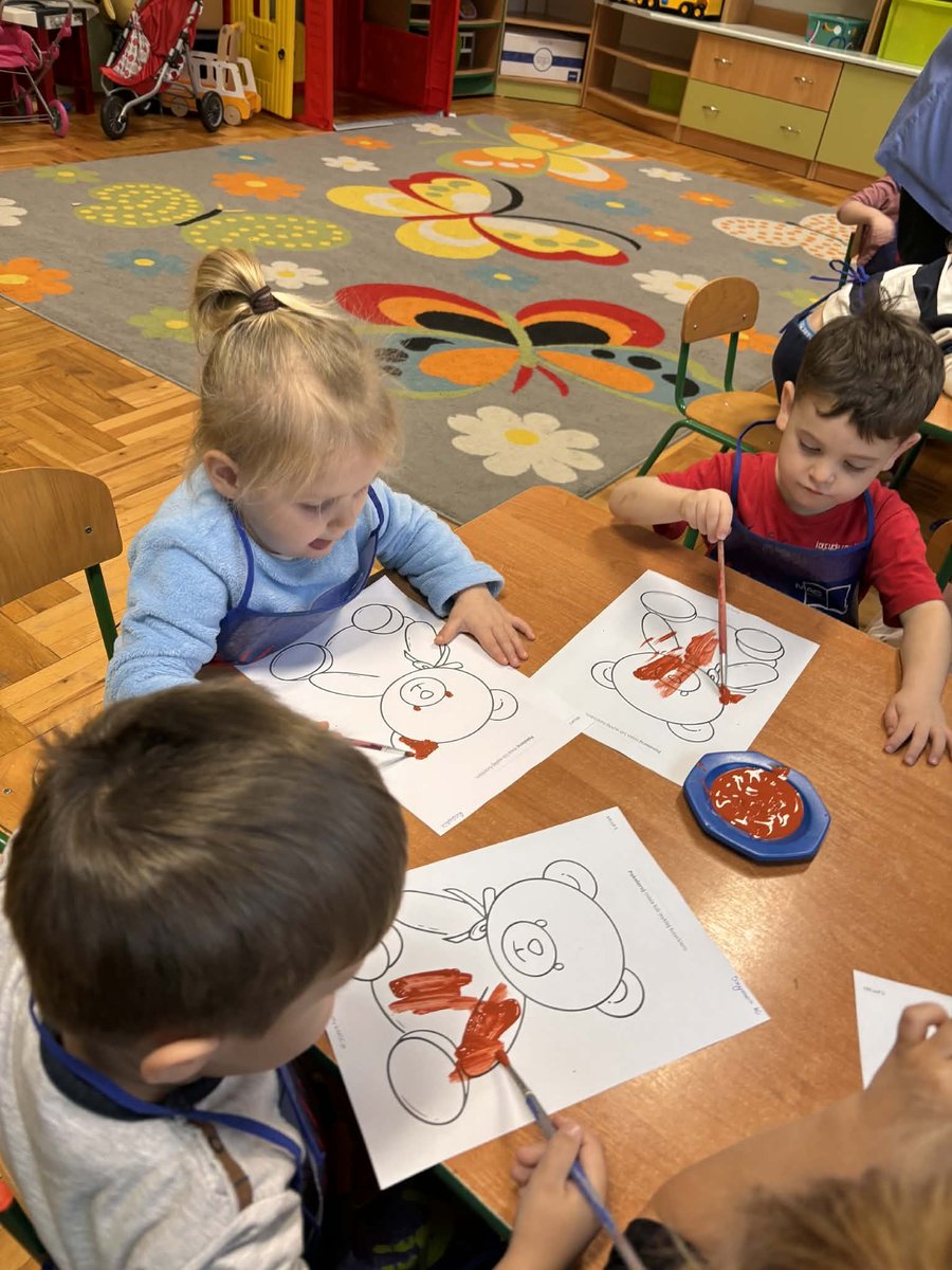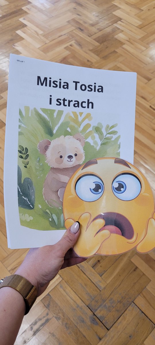 Na początku zajęć dzieci wysłuchały opowiadania „Misia Tosia i strach”, które wprowadziło je w tematykę. Po lekturze przeprowadzono rozmowę kierowaną – przedszkolaki dzieliły się własnymi doświadczeniami, opowiadały, czego się boją oraz jak reagują, gdy pojawia się strach. Podkreślono, że strach jest normalnym uczuciem i każdy czasami go odczuwa.