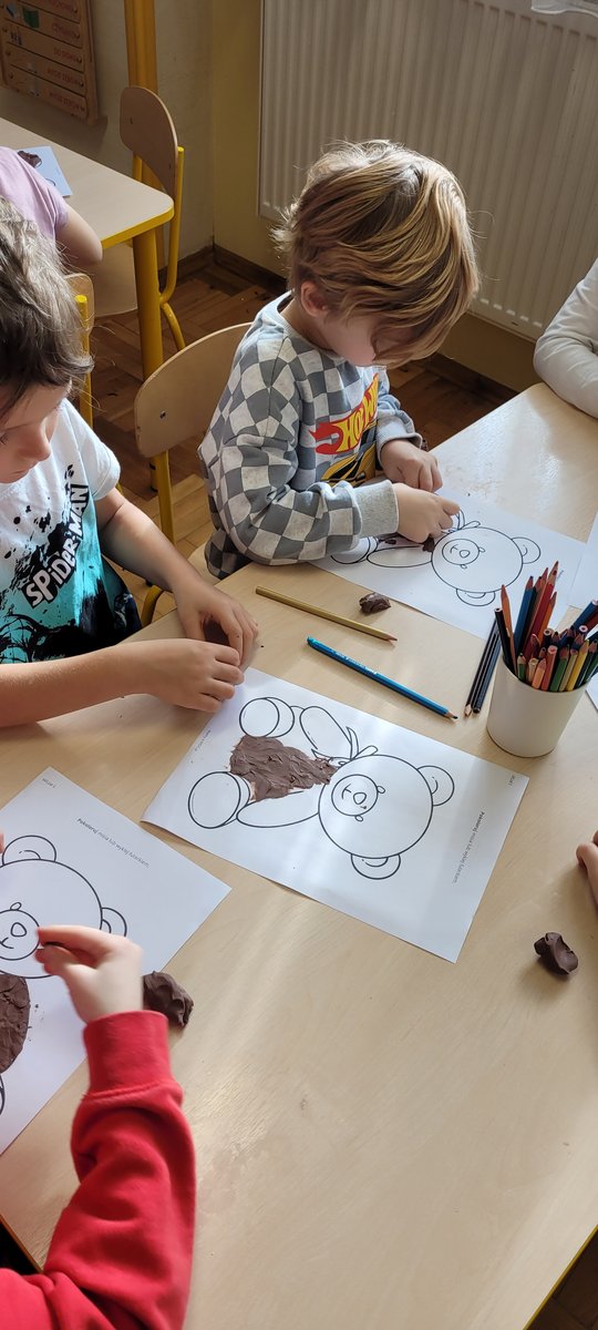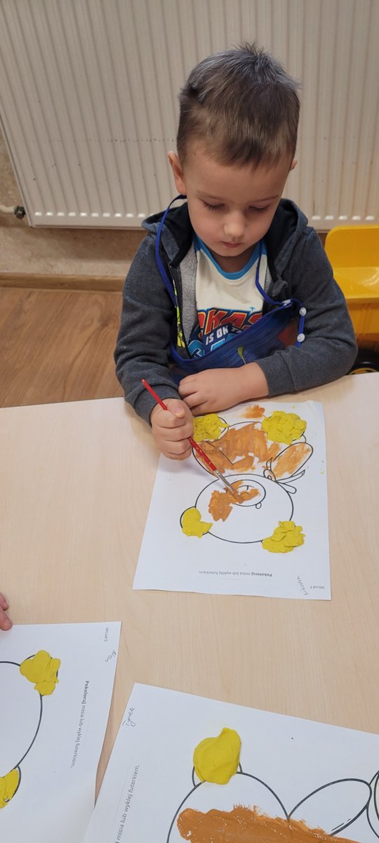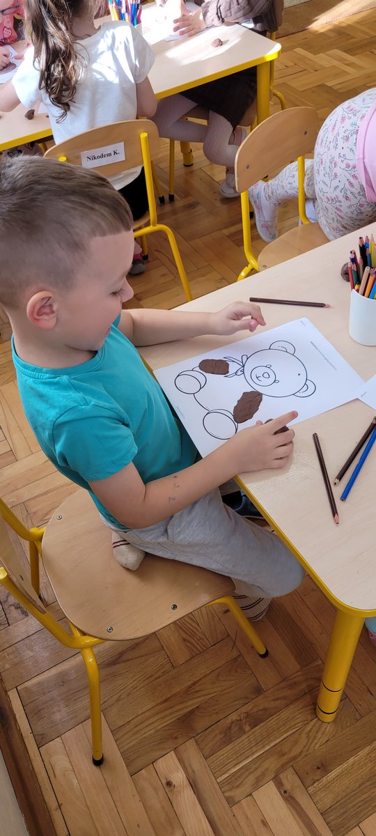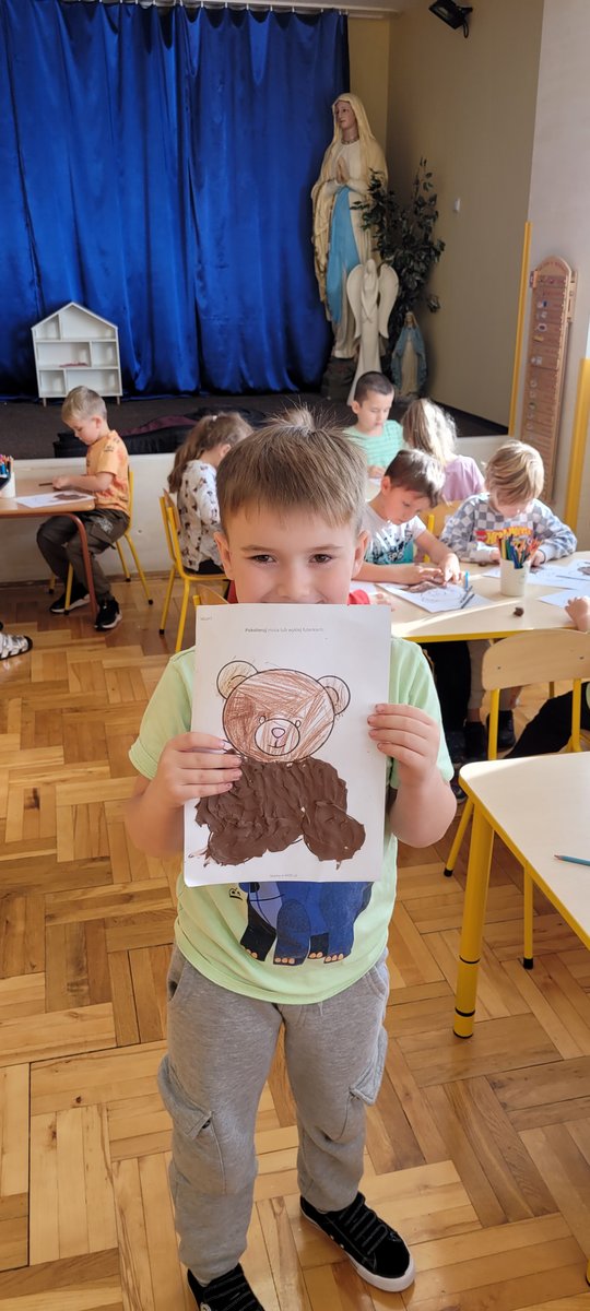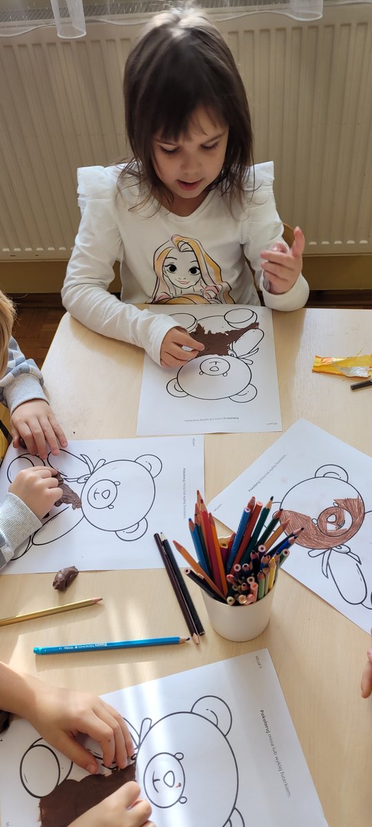 Na zakończenie wykonaliśmy prace plastyczne – rysunek przedstawiający Misię Tosię, która bardzo sie przestraszyła, ale jak się później okazało – strach miał tylko wielkie oczy 😉