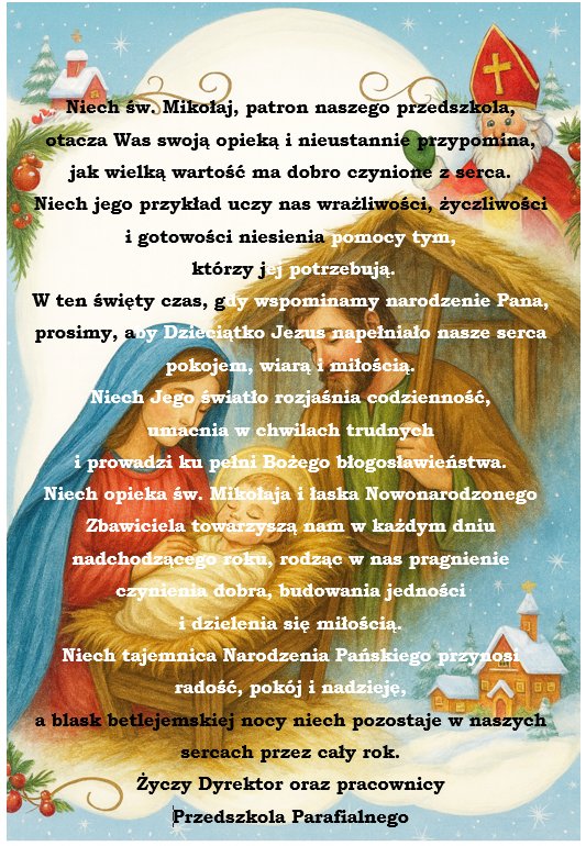 Życzymy zdrowia, spokoju oraz Bożego błogosławieństwa na każdy dzień nadchodzącego Nowego Roku, a także wielu powodów do dumy i radości z dorastania Państwa dzieci. 🎄