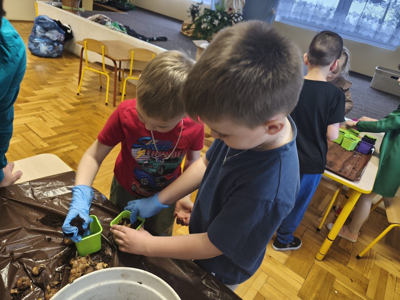 Wspólnie z paniami wychowawczyniami posadziliśmy cebulki krokusów, które już niedługo będą cieszyć nasze oczy. 🌸👀 Pamiętajmy o ochronie Ziemi przez cały rok, nie tylko w ten wyjątkowy dzień! Razem możemy zrobić wiele dobrego dla naszej planety. 🌎❤️