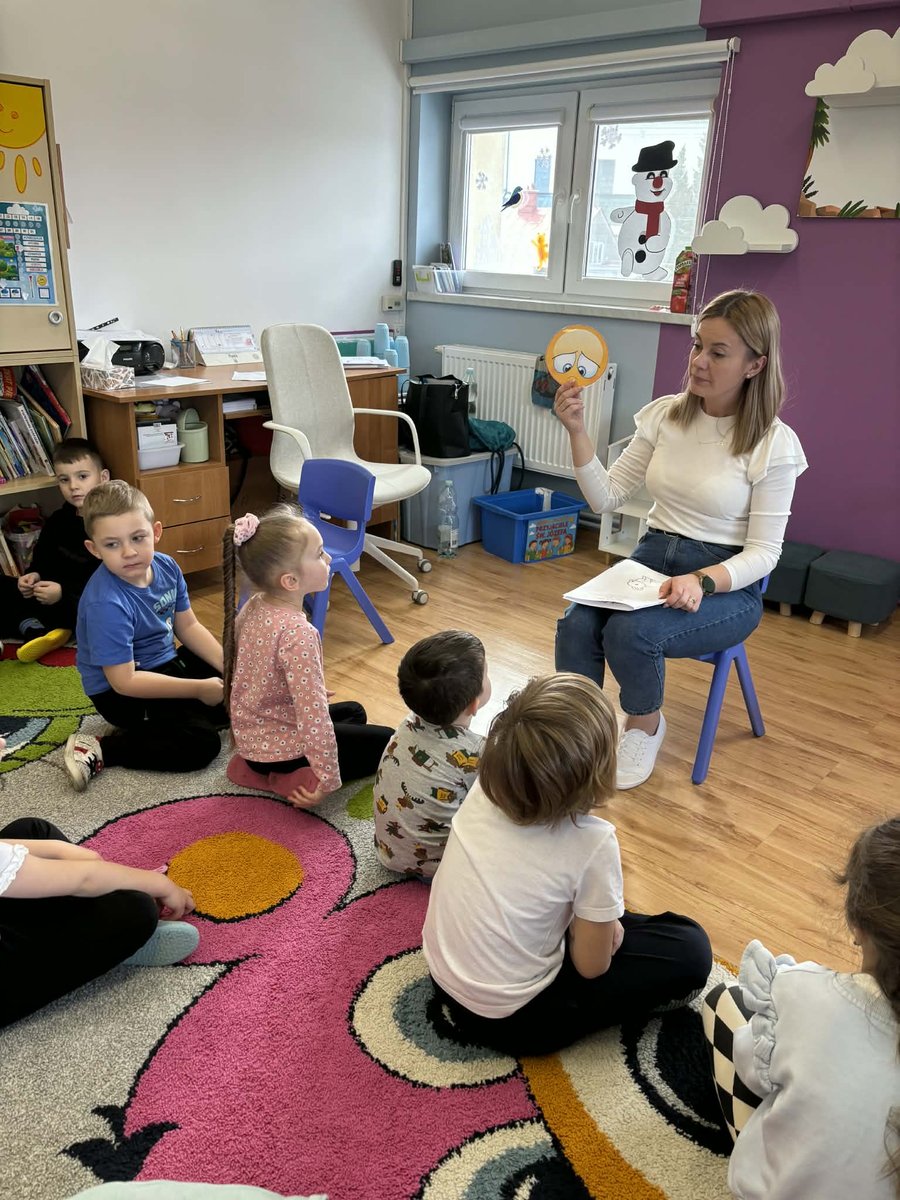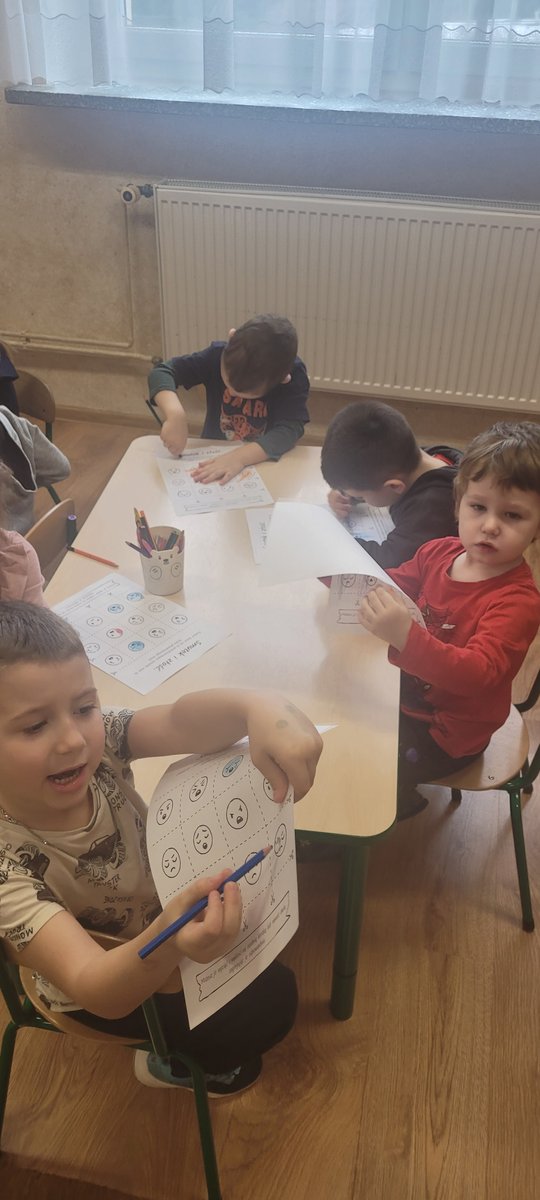 W ostatnich dniach kontynuowaliśmy naszą przygodę w krainie emocji. Podczas zajęć dzieci rozmawiały o emocjach, ze szczególnym uwzględnieniem smutku. Przedszkolaki uczyły się rozpoznawać tę emocję na podstawie ilustracji, opowiadania oraz własnych doświadczeń. Wspólnie zastanawialiśmy się, kiedy czujemy smutek?, czy dorośli też bywają smutni?, co może nam pomóc w trudnych chwilach?