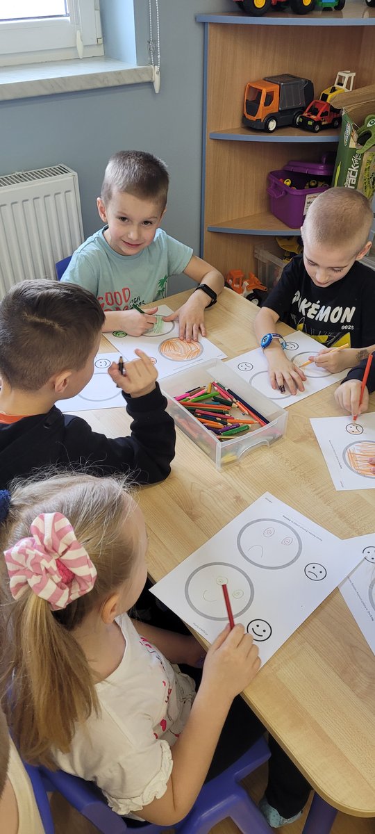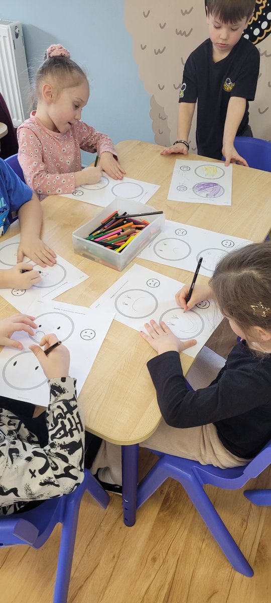 Dzieci wyrażały emocje poprzez rozmowę, ruch oraz pracę plastyczną. Zajęcia sprzyjały rozwijaniu empatii, nazywaniu uczuć oraz poznawaniu sposobów radzenia sobie ze smutkiem. Dzieci chętnie uczestniczyły w proponowanych aktywnościach i aktywnie dzieliły się swoimi spostrzeżeniami.