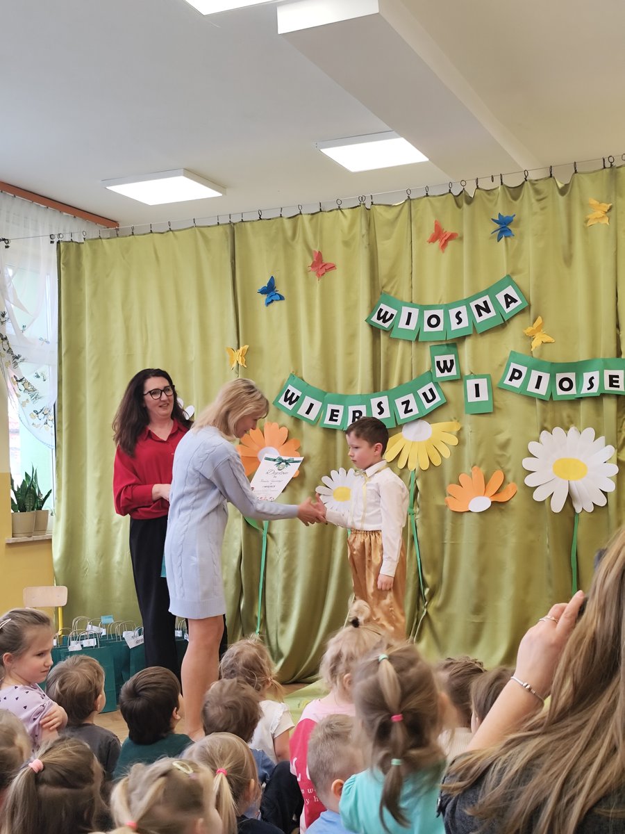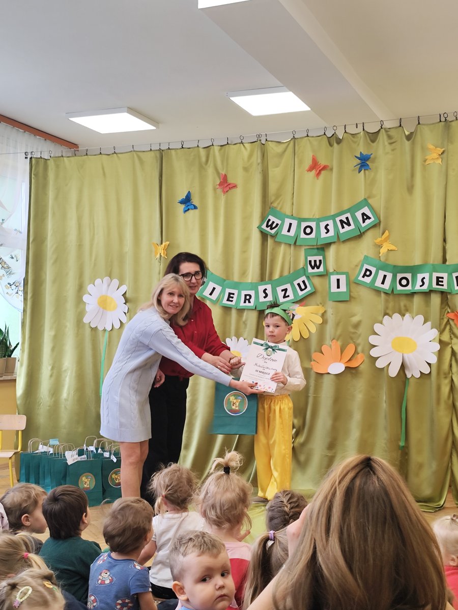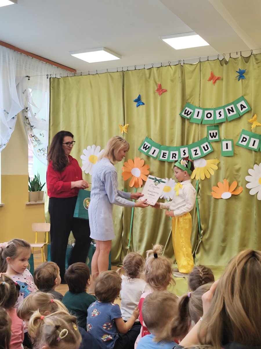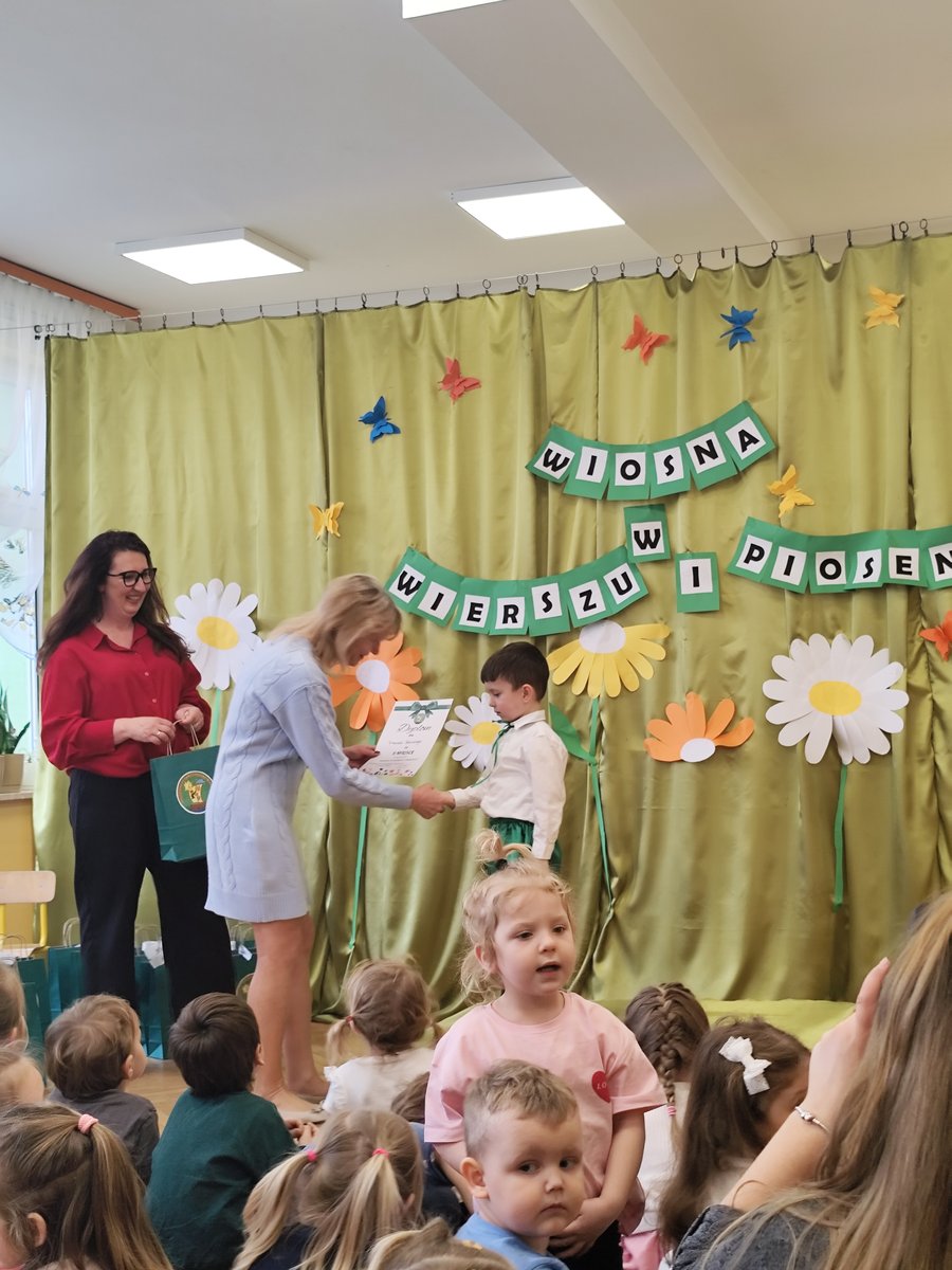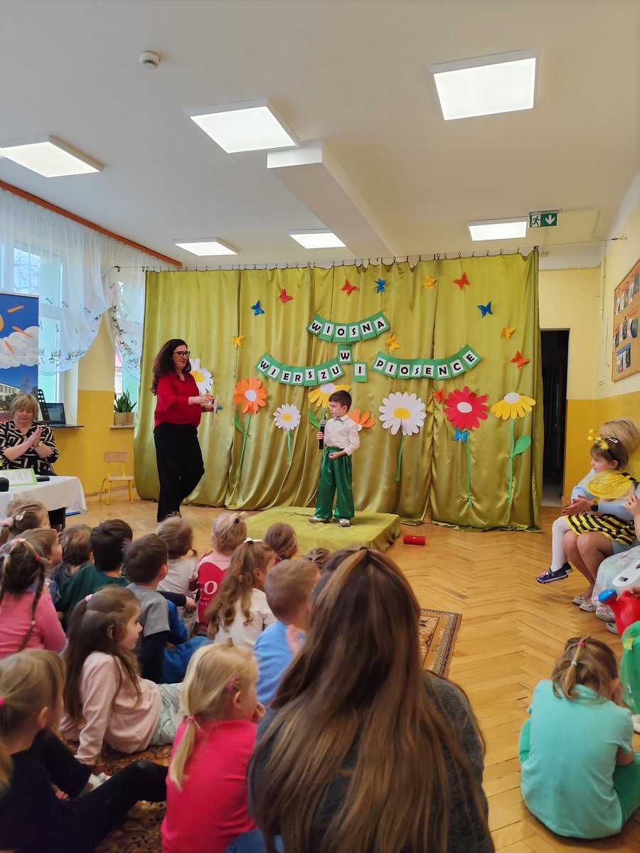 5-cioro dzieci z naszego przedszkola wzięło udział w tym wyjątkowym przedsięwzięciu, a ich występy rozgrzały nasze serca! 🍃 Dzięki pięknym recytacjom wierszy i piosenek o wiosennej tematyce poczuliśmy, jak wiosna wkracza do naszego życia! 🎶