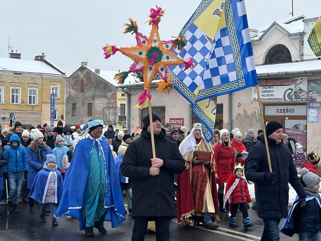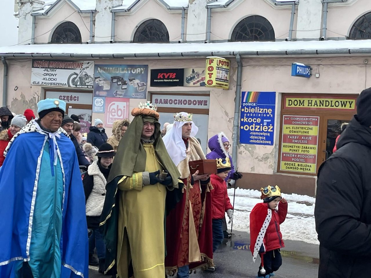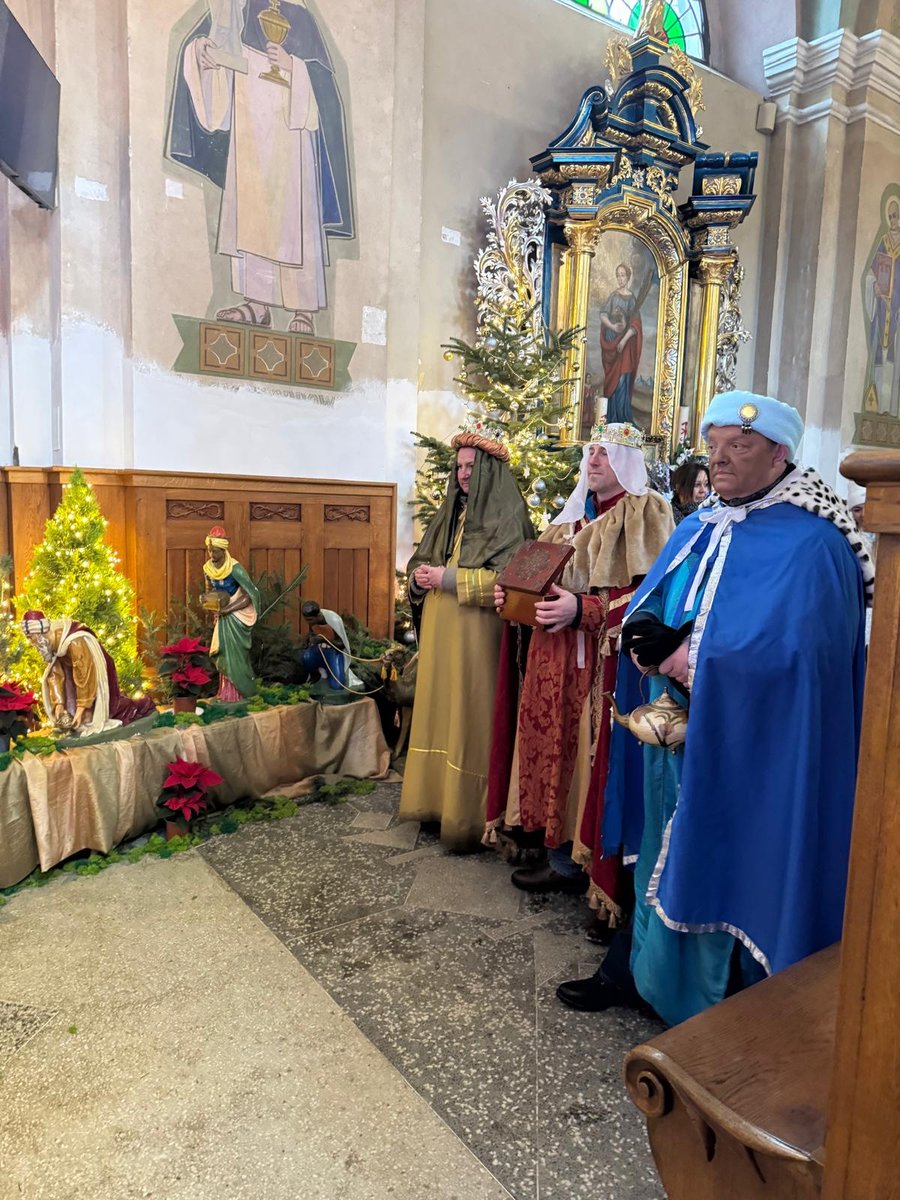 Podążaliśmy z sercem wypełnionym brzmieniem kolęd do centrum naszego miasta, którym jest rynek, gdzie spotkały się trzy orszaki Mędrców ze Wschodu. Witając się wspólnie w melodii kolędy „Mędrcy Świata Monarchowie”, przybyliśmy do Świątyni, aby Królowie mogli złożyć dary Pani Jezusowi w żłobku na sianeczku. 🐑