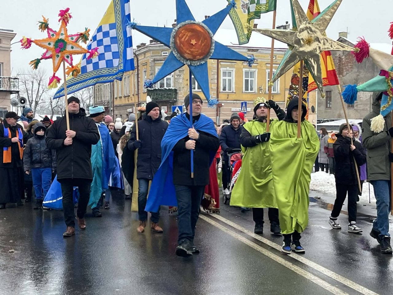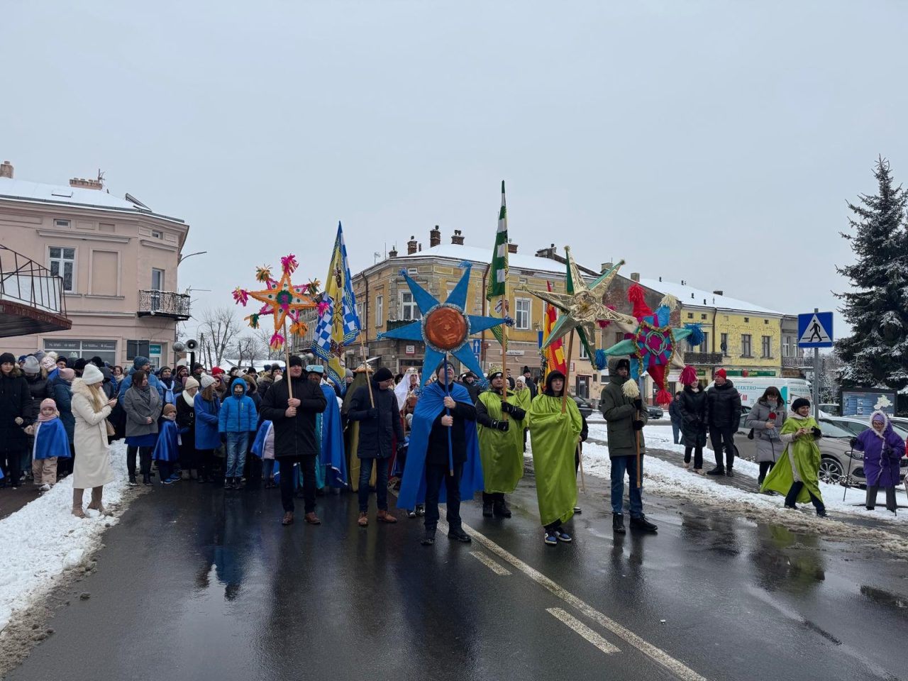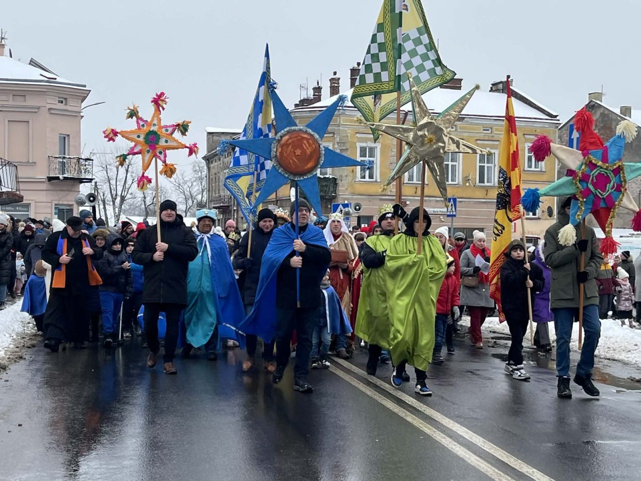 Podążaliśmy z sercem wypełnionym brzmieniem kolęd do centrum naszego miasta, którym jest rynek, gdzie spotkały się trzy orszaki Mędrców ze Wschodu. Witając się wspólnie w melodii kolędy „Mędrcy Świata Monarchowie”, przybyliśmy do Świątyni, aby Królowie mogli złożyć dary Pani Jezusowi w żłobku na sianeczku. 🐑