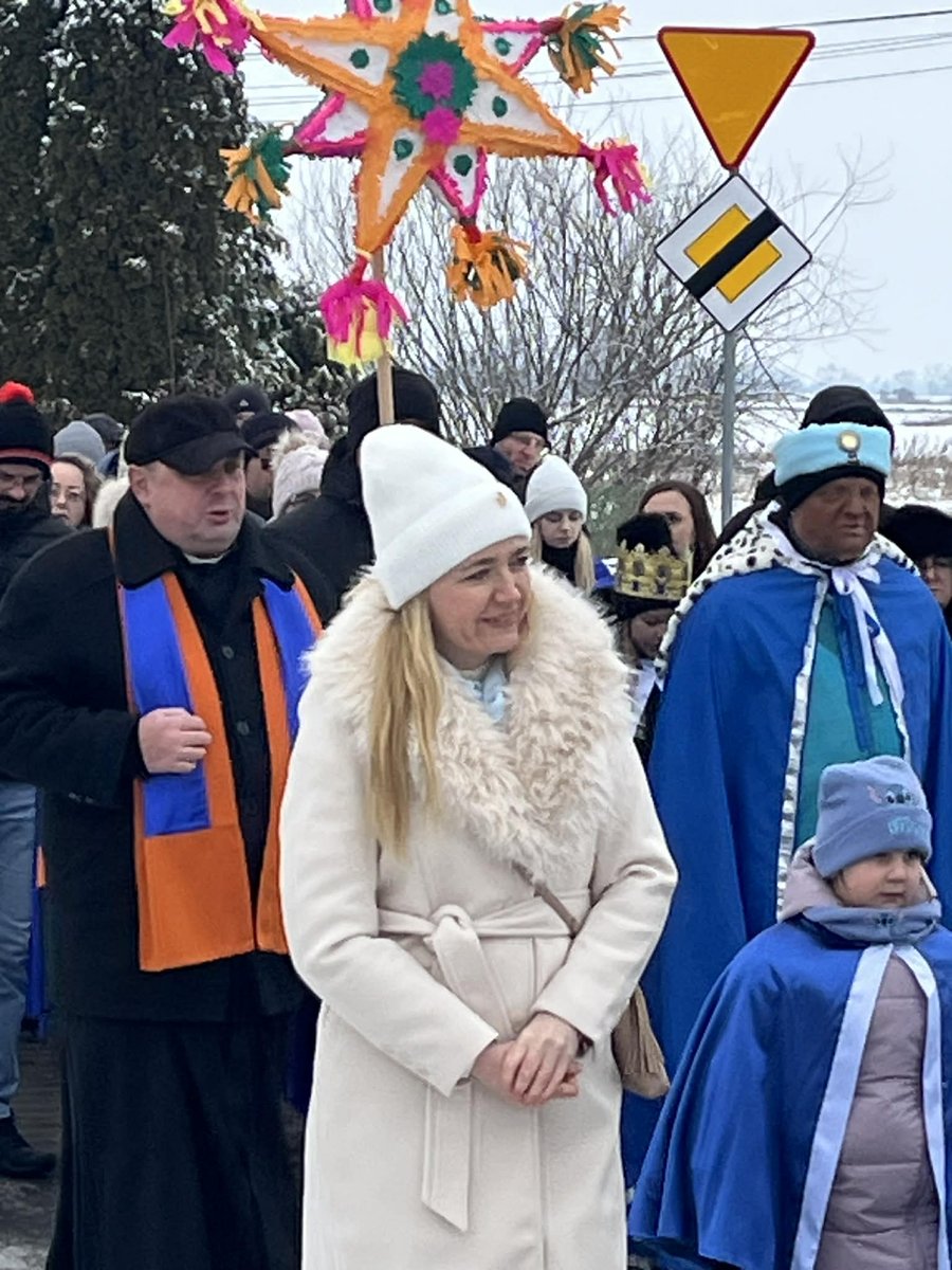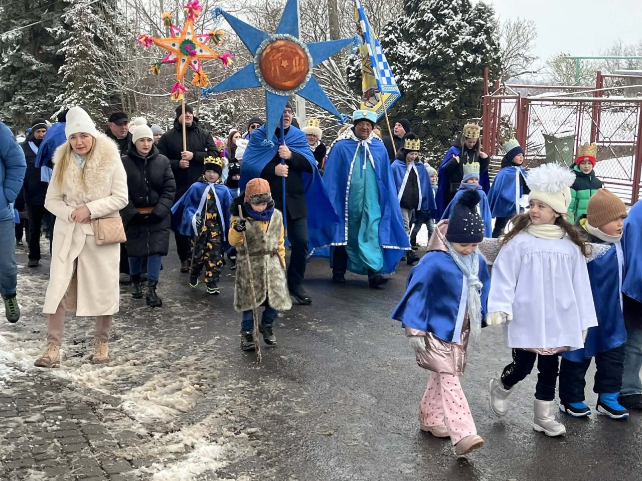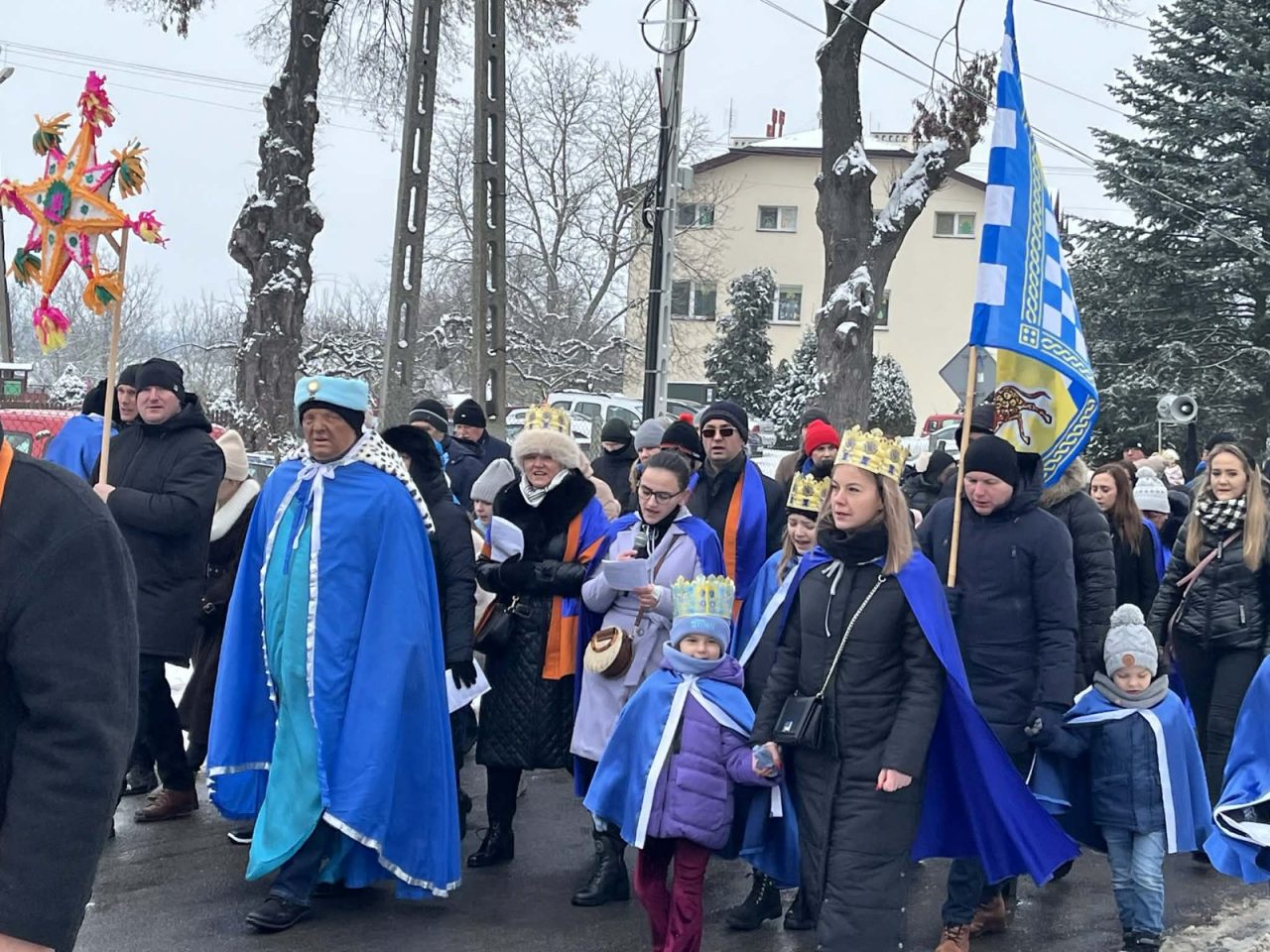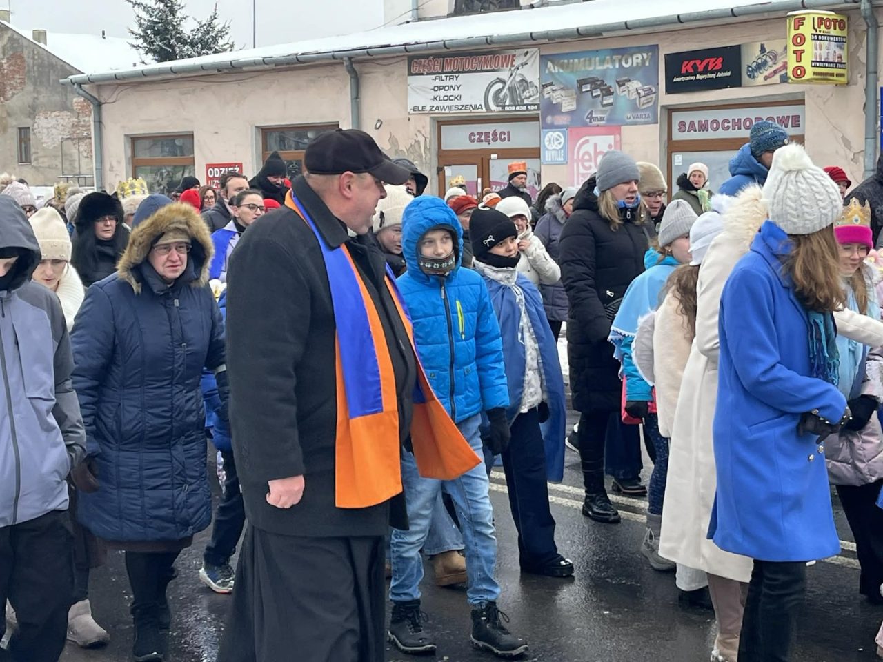 Na czele z panią dyrektor Małgorzatą Sobejko oraz księżmi Grzegorzem Kowalczykiem, Stanisławem Sygnarowskim i Grzegorzem Delmanowiczem, wyruszyliśmy w pochodzie (Niebieskim) Afrykańskim, podążając za Królem Baltazarem, który niósł dar mirry dla Dzieciątka Jezus. 🌟