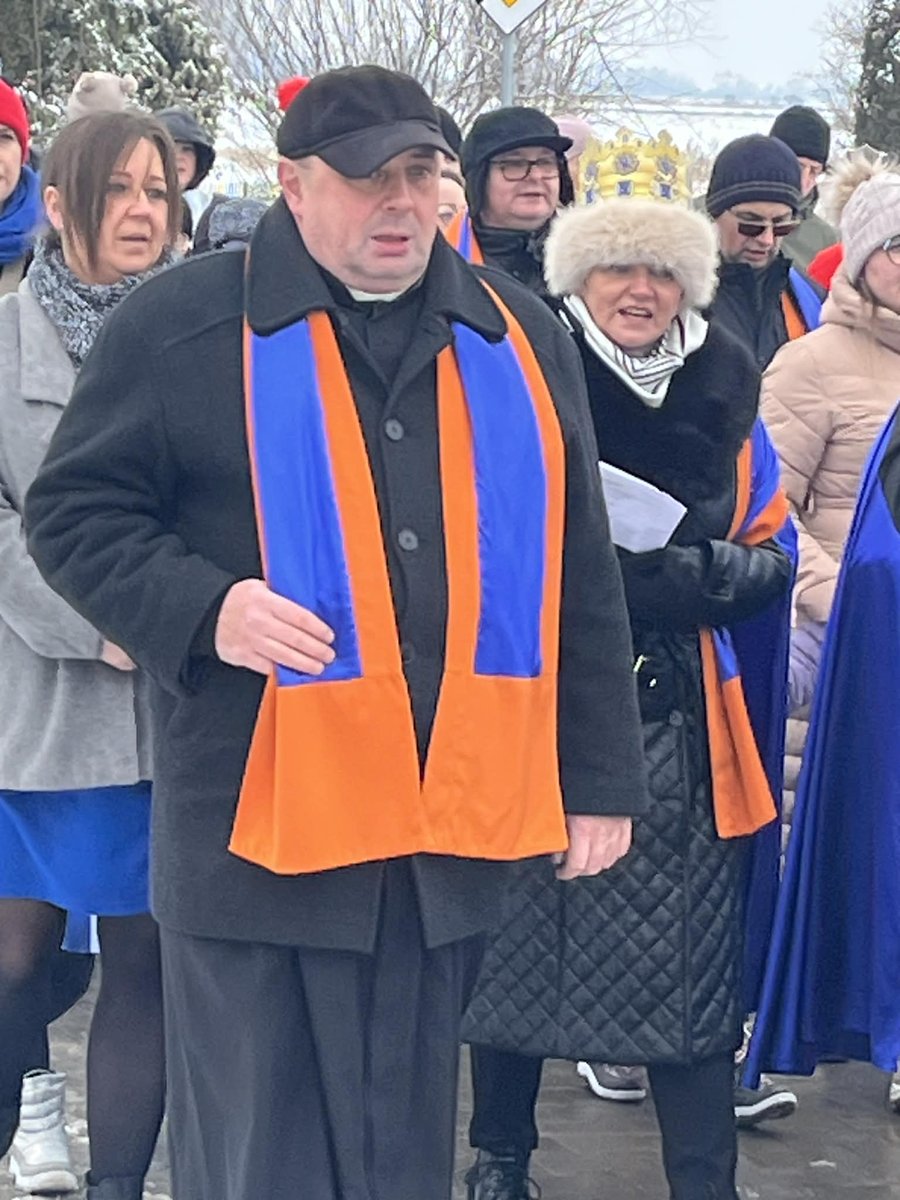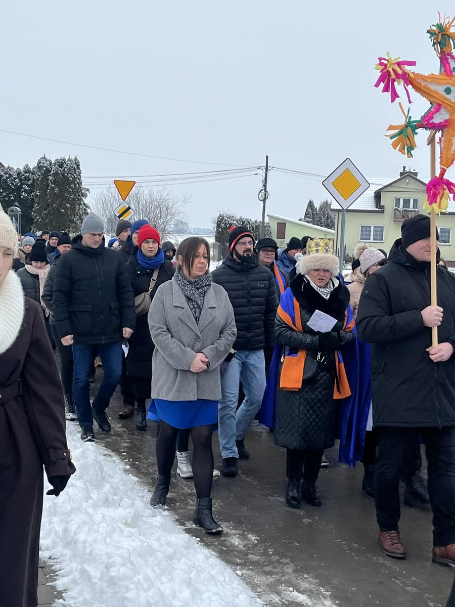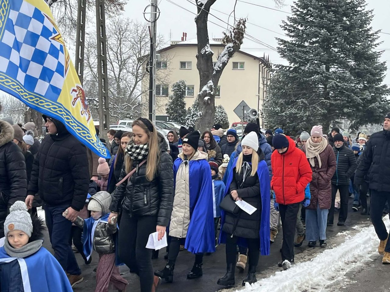 Na czele z panią dyrektor Małgorzatą Sobejko oraz księżmi Grzegorzem Kowalczykiem, Stanisławem Sygnarowskim i Grzegorzem Delmanowiczem, wyruszyliśmy w pochodzie (Niebieskim) Afrykańskim, podążając za Królem Baltazarem, który niósł dar mirry dla Dzieciątka Jezus. 🌟