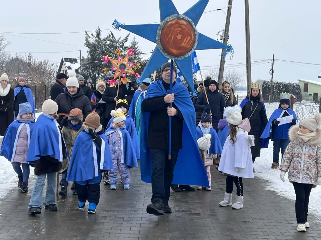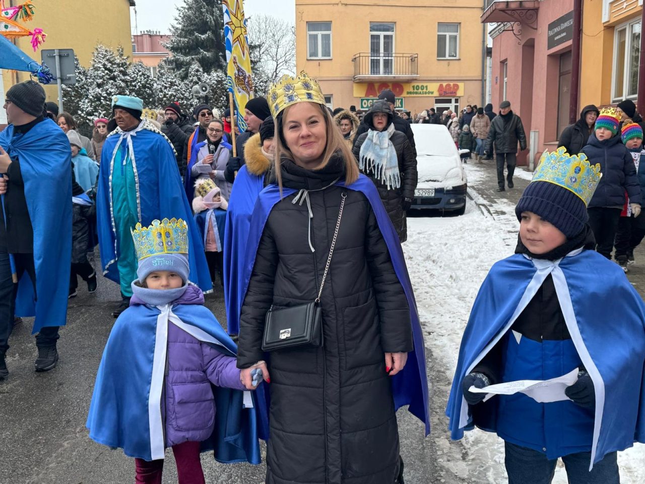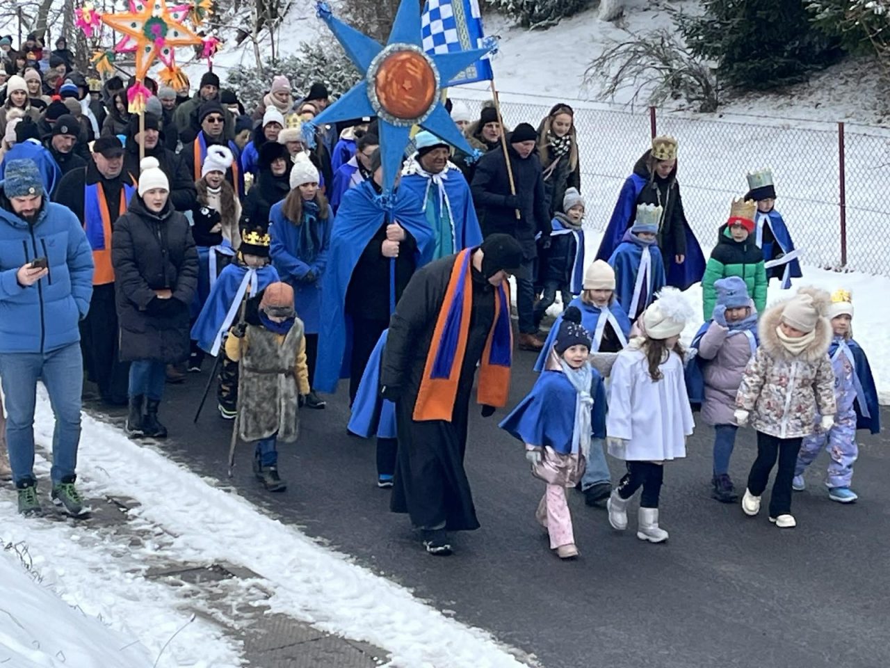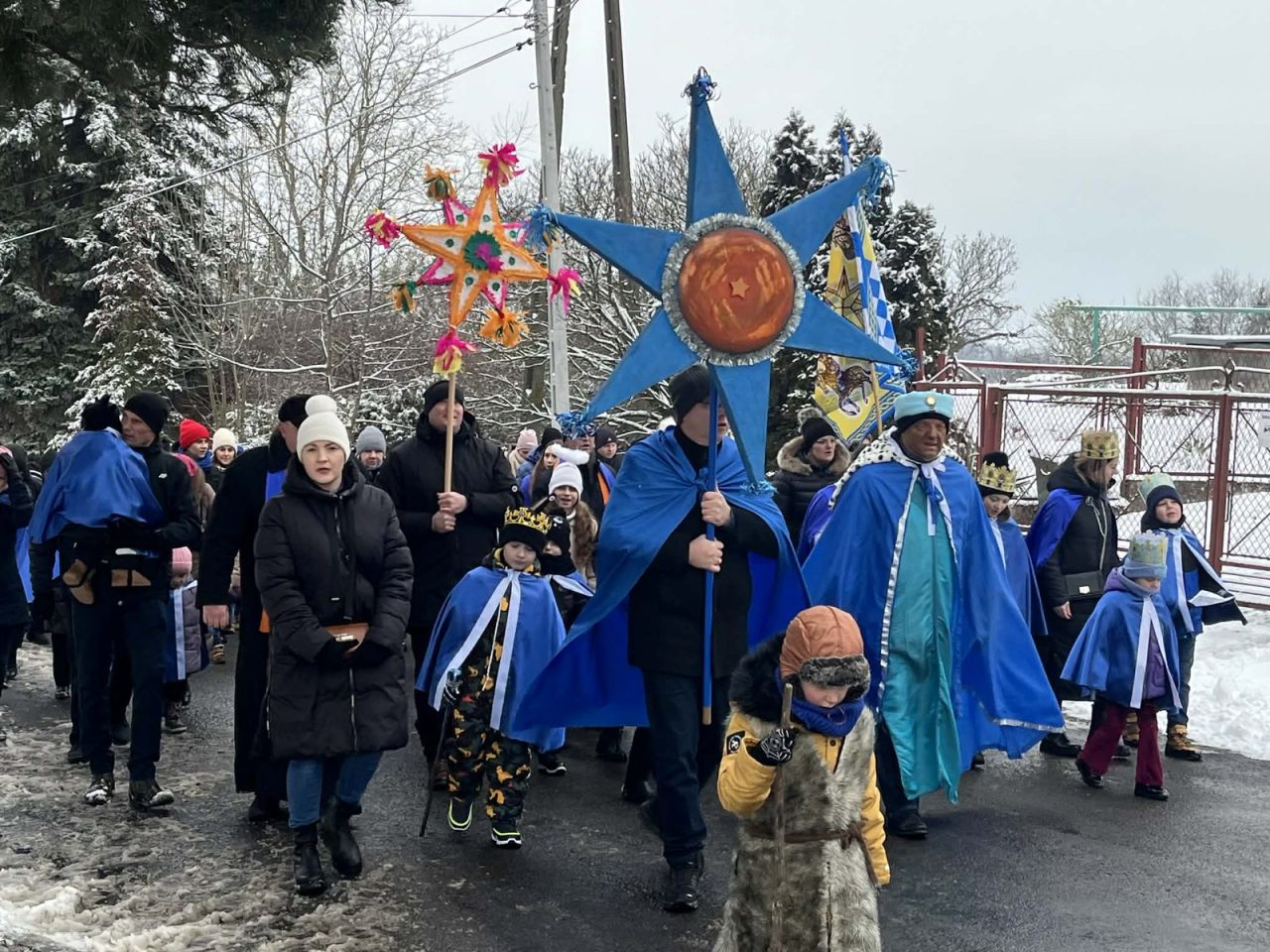 Na czele z panią dyrektor Małgorzatą Sobejko oraz księżmi Grzegorzem Kowalczykiem, Stanisławem Sygnarowskim i Grzegorzem Delmanowiczem, wyruszyliśmy w pochodzie (Niebieskim) Afrykańskim, podążając za Królem Baltazarem, który niósł dar mirry dla Dzieciątka Jezus. 🌟