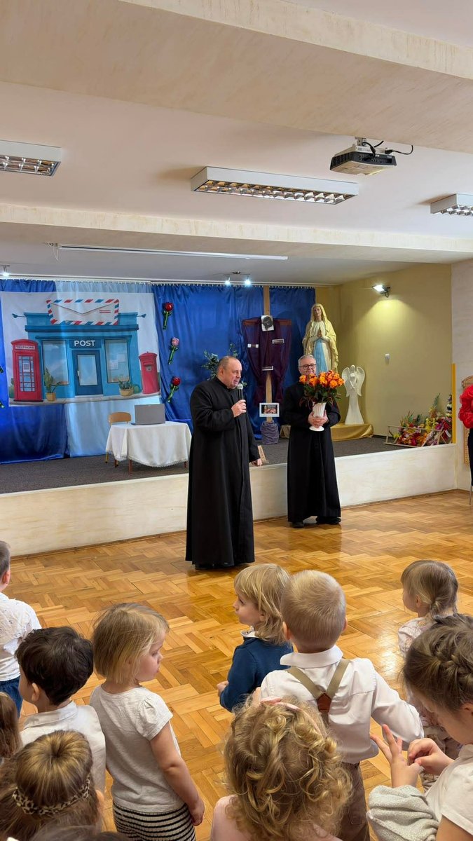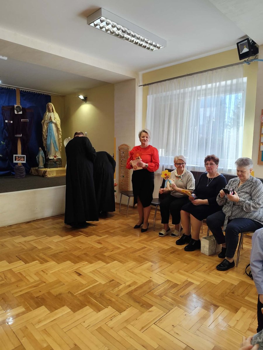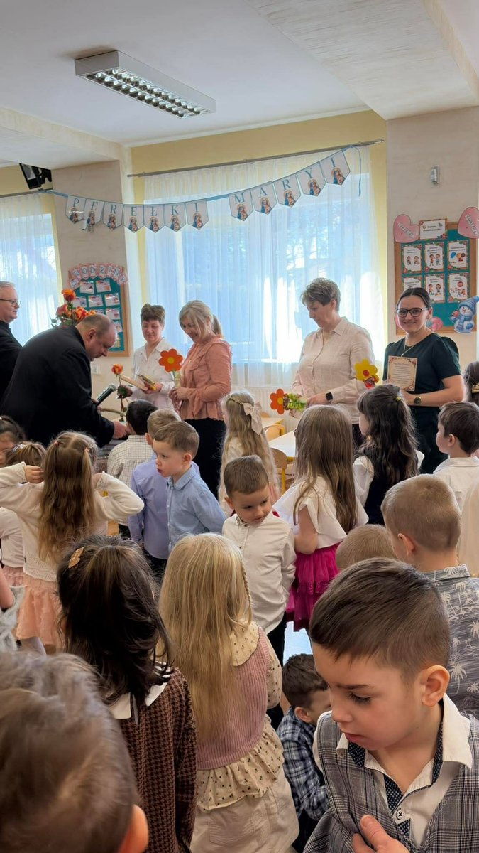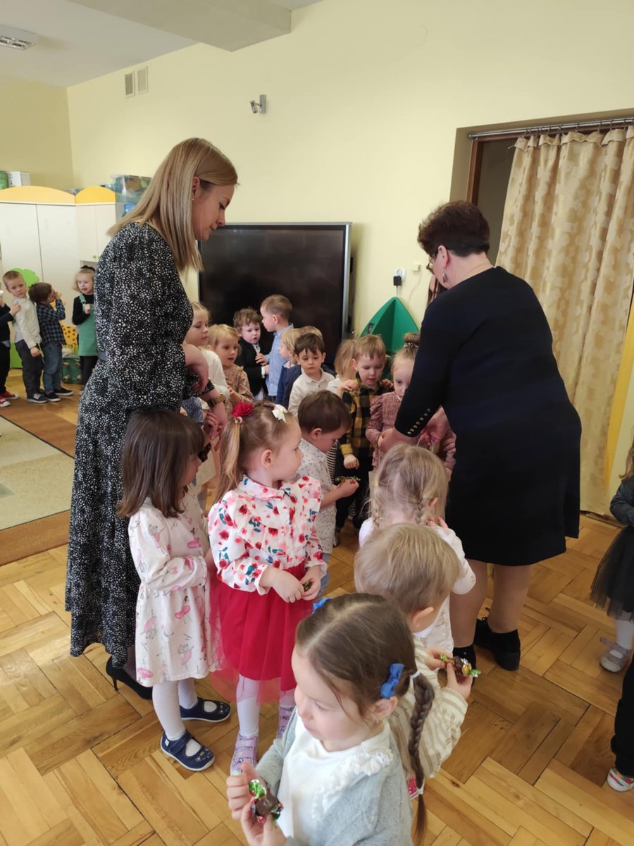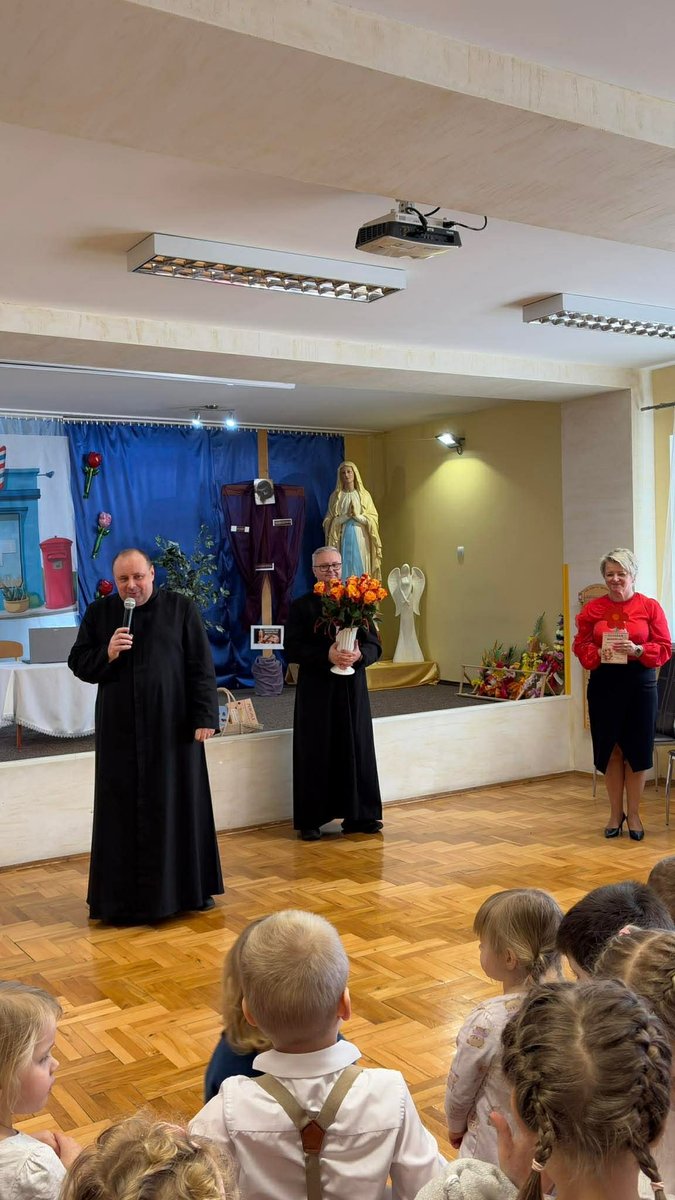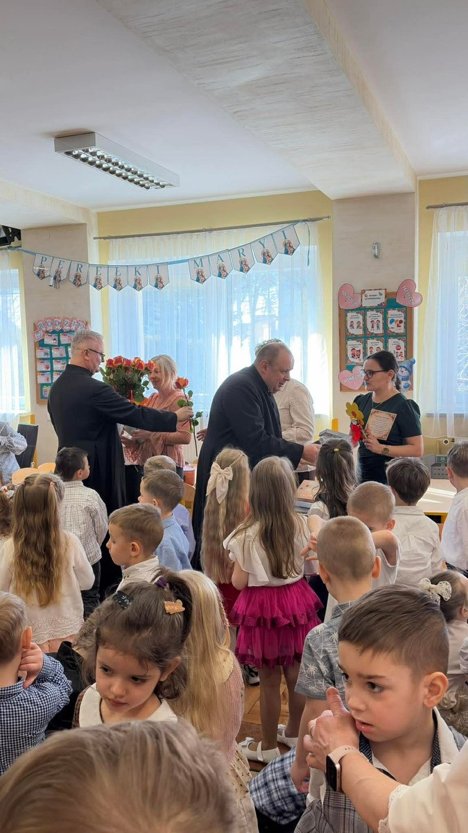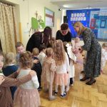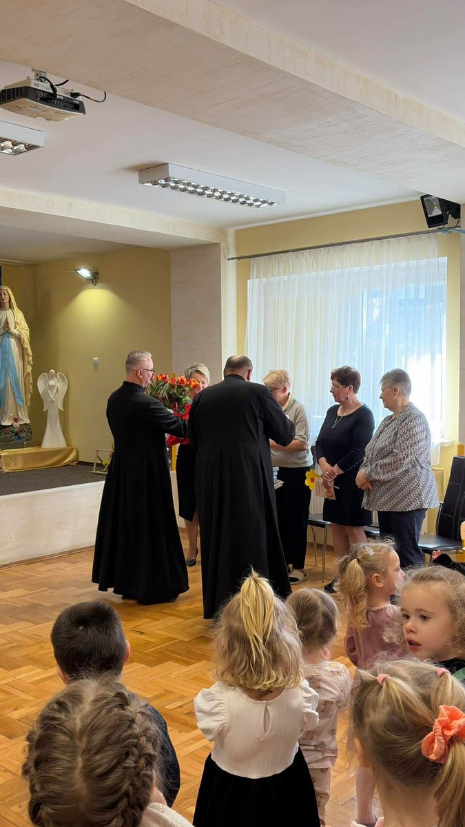 Po występie, każda z pań pracujących w przedszkolu oraz emerytki otrzymały telegramy z życzeniami oraz kwiaty, które były uzupełnione słodkościami. 🍬💕 Również ksiądz proboszcz Grzegorz wraz z księdzem Stanisławem postanowili obdarować przedstawicielki naszego przedszkola różami oraz czekoladkami, a także przekazać wiele pięknych słów.