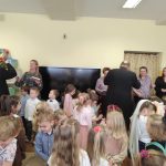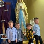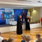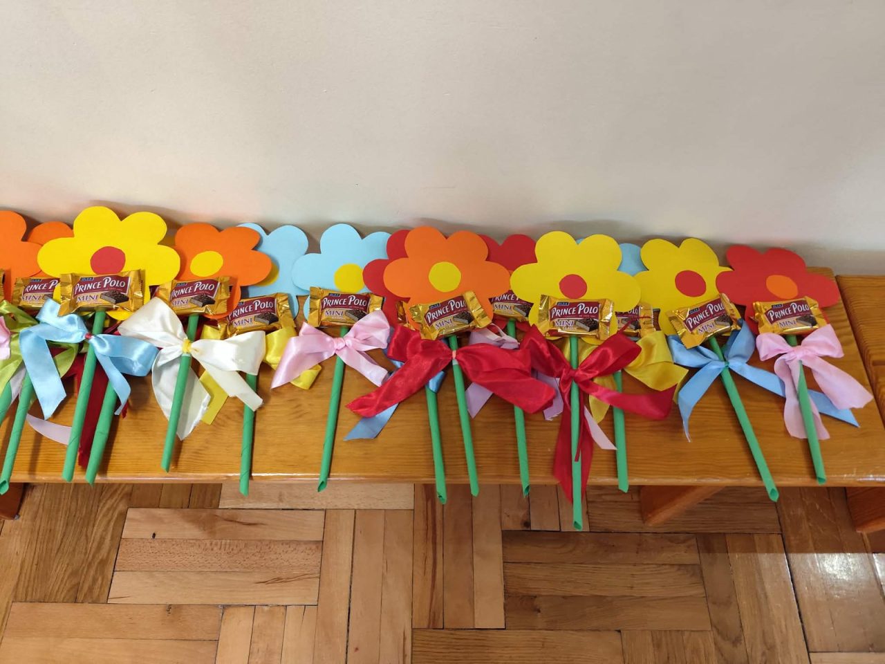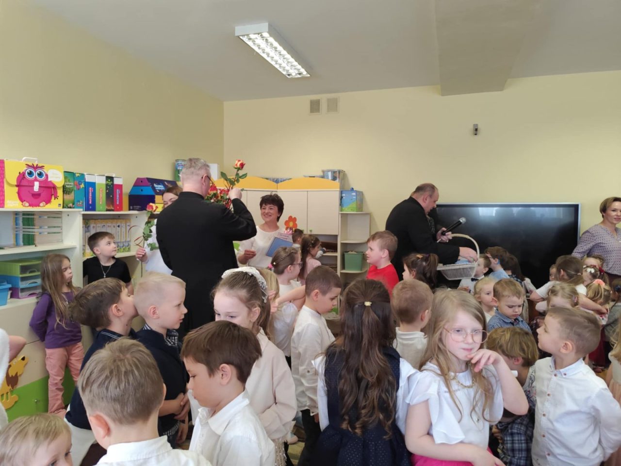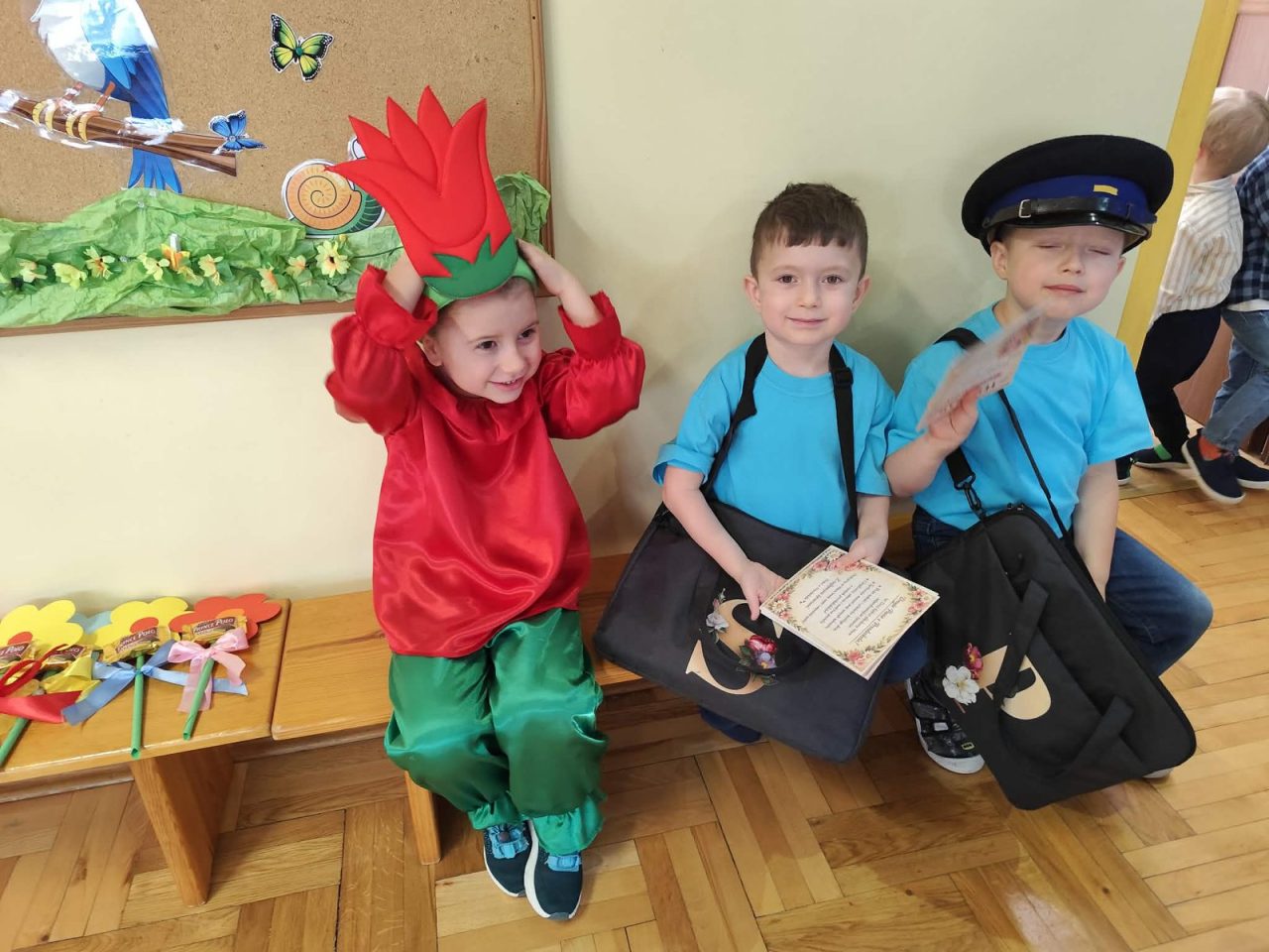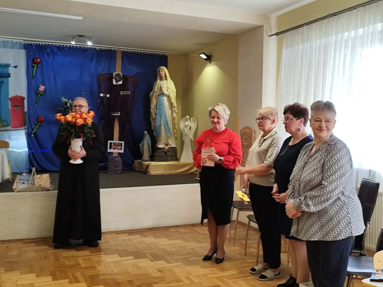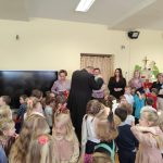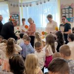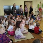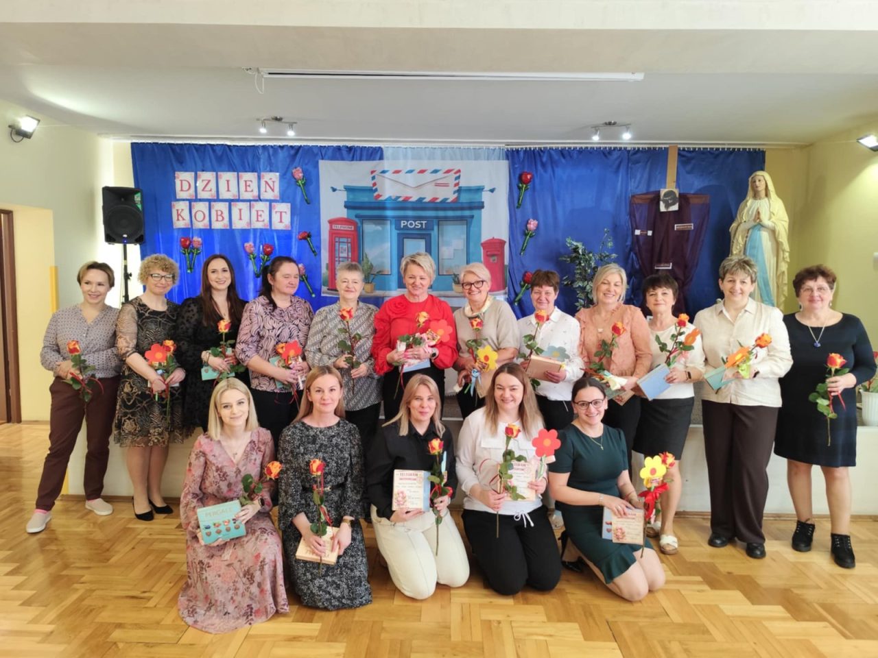 Po występie, każda z pań pracujących w przedszkolu oraz emerytki otrzymały telegramy z życzeniami oraz kwiaty, które były uzupełnione słodkościami. 🍬💕 Również ksiądz proboszcz Grzegorz wraz z księdzem Stanisławem postanowili obdarować przedstawicielki naszego przedszkola różami oraz czekoladkami, a także przekazać wiele pięknych słów.