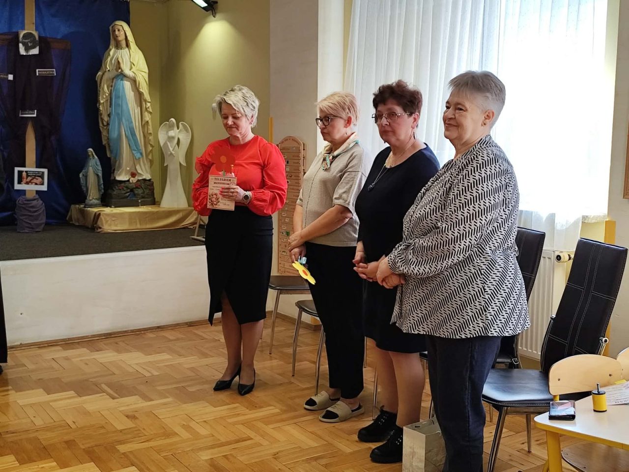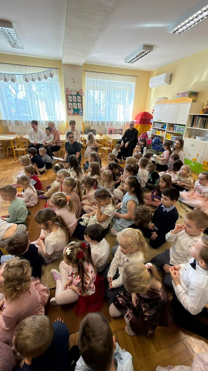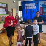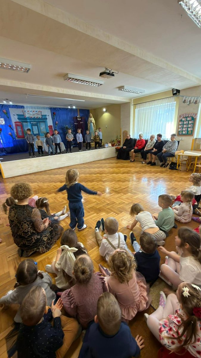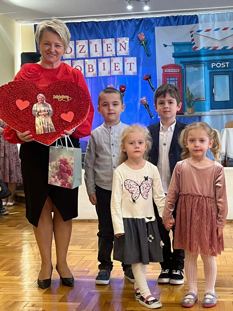 Na początku uroczystości, dzieci wspólnie pomodliły się, a następnie złożyły serdeczne życzenia naszej Pani Dyrektor z okazji jej imienin. 🎉 Obdarowały ją pięknym sercem z życzeniami, co było wzruszającym gestem!