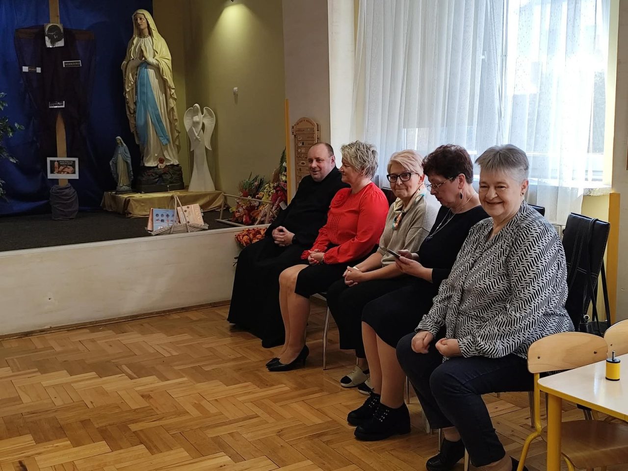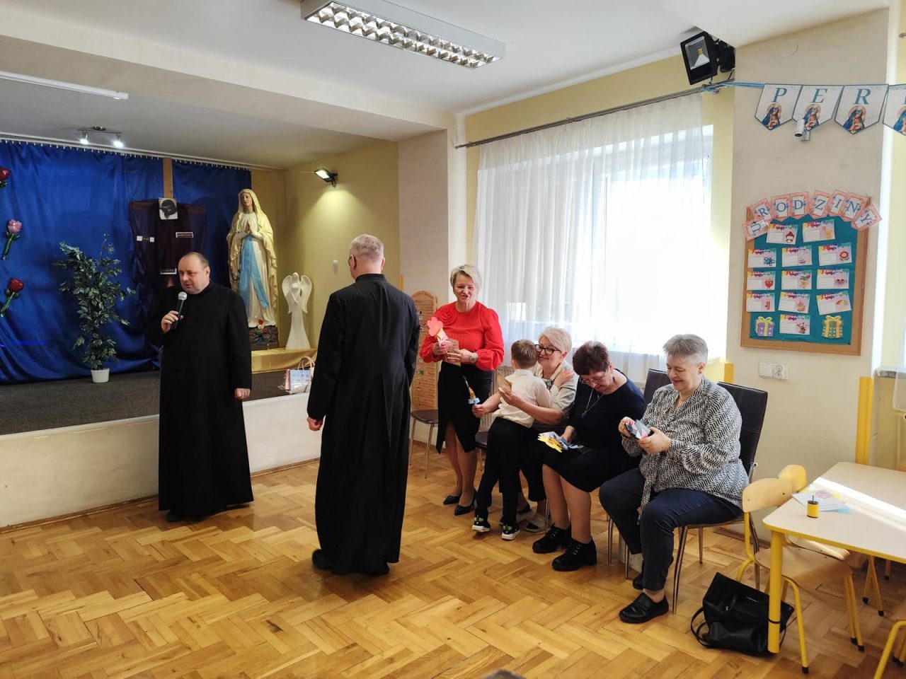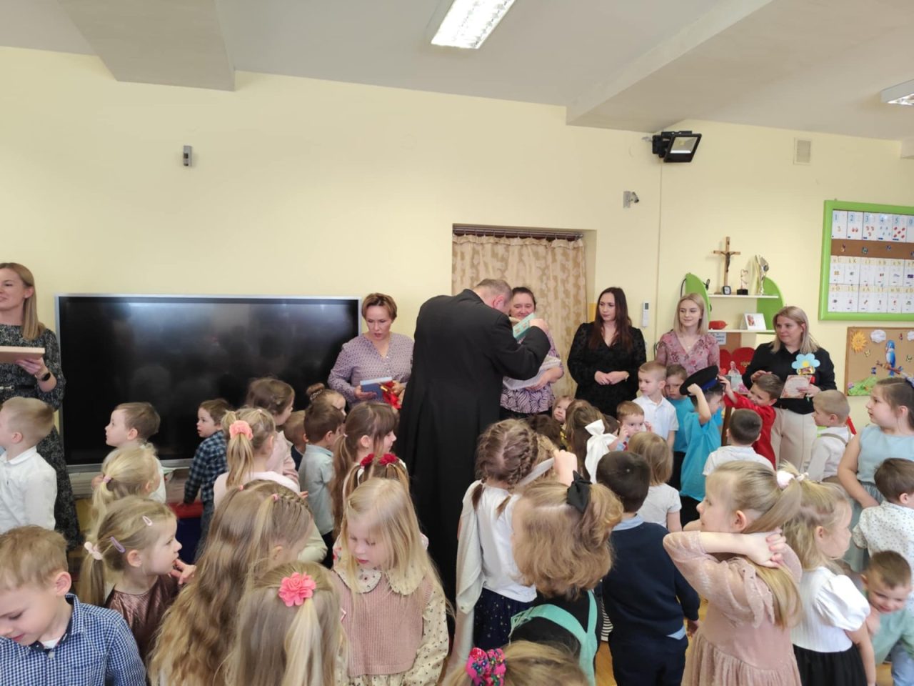 Na początku uroczystości, dzieci wspólnie pomodliły się, a następnie złożyły serdeczne życzenia naszej Pani Dyrektor z okazji jej imienin. 🎉 Obdarowały ją pięknym sercem z życzeniami, co było wzruszającym gestem!