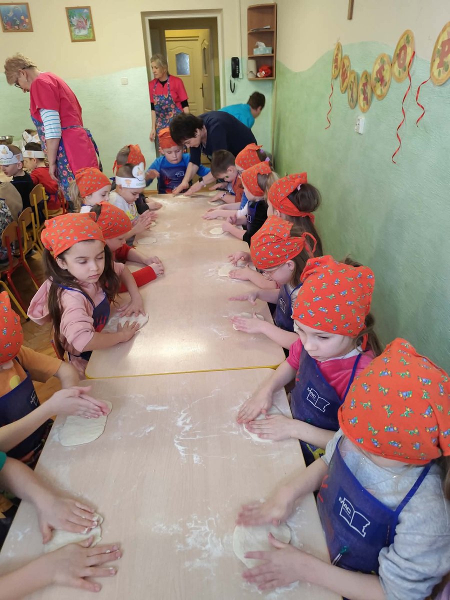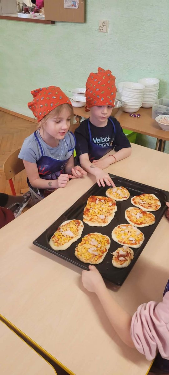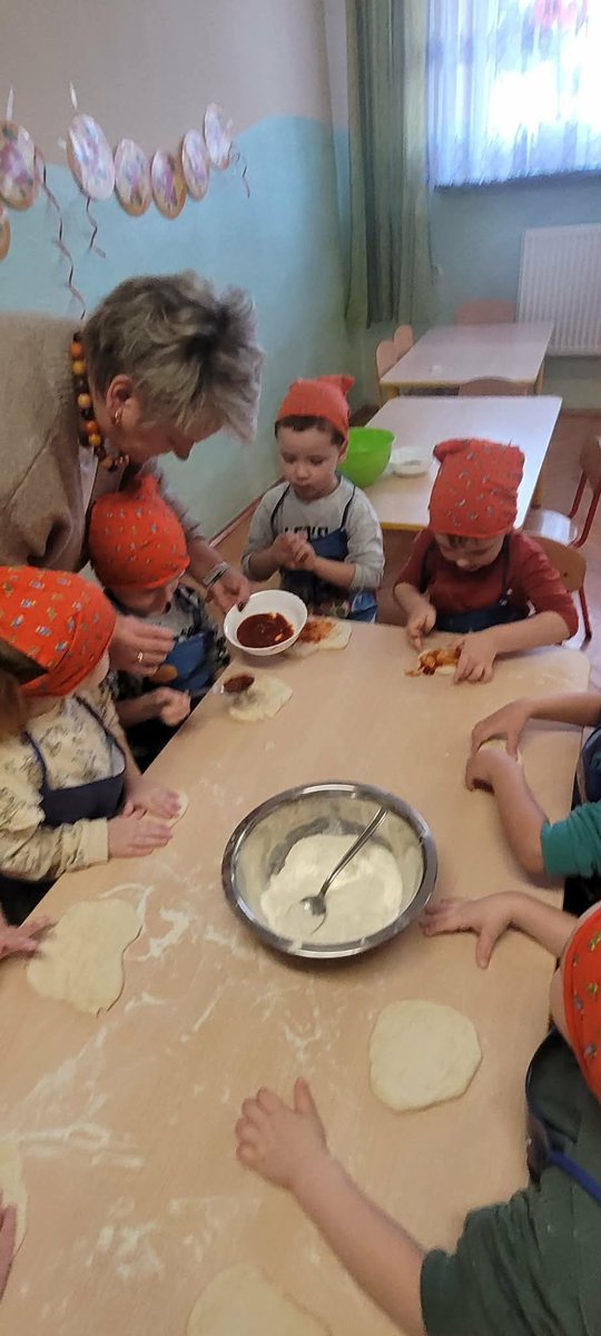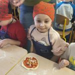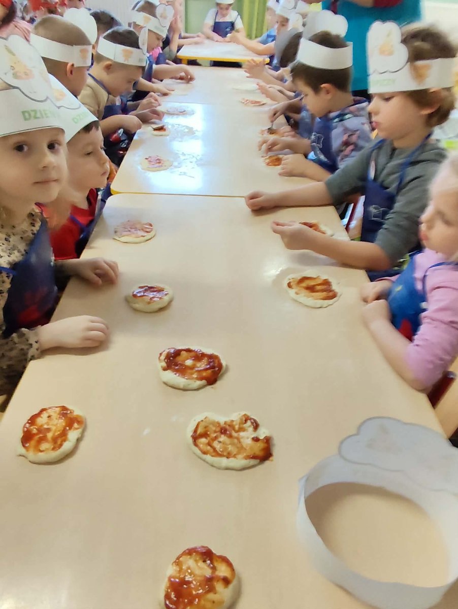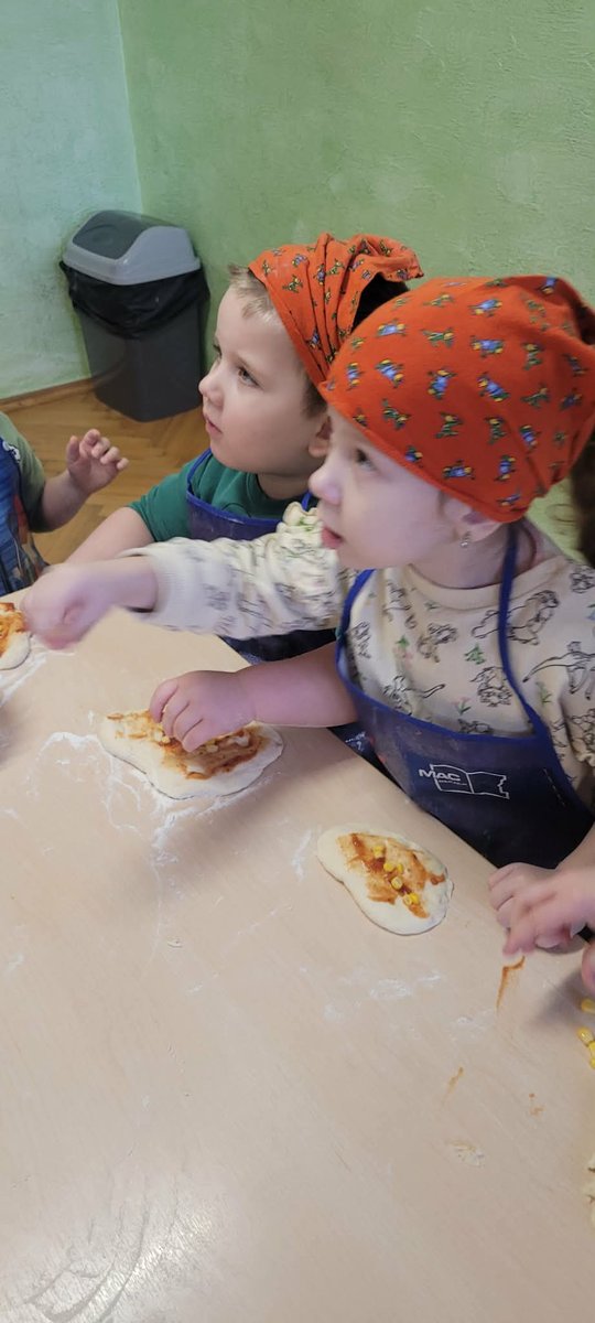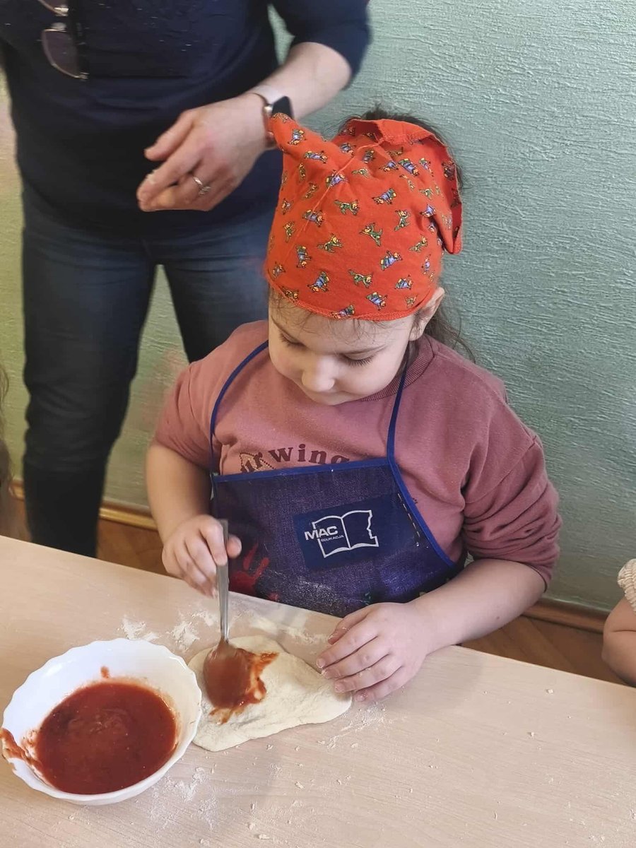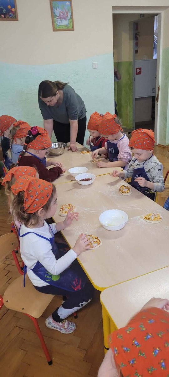 Podczas warsztatów każde z dzieci miało okazję samodzielnie wykonać swoją pizzę, co okazało się wspaniałą zabawą oraz doskonałą okazją do rozwijania kreatywności i umiejętności manualnych. 🍕 Podczas przygotowywania swoich wyjątkowych wypieków, dzieci miały możliwość wyboru ulubionych składników, co sprzyjało ich aktywnemu uczestnictwu i wyrażaniu indywidualnych smaków.