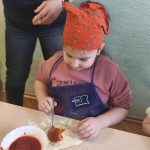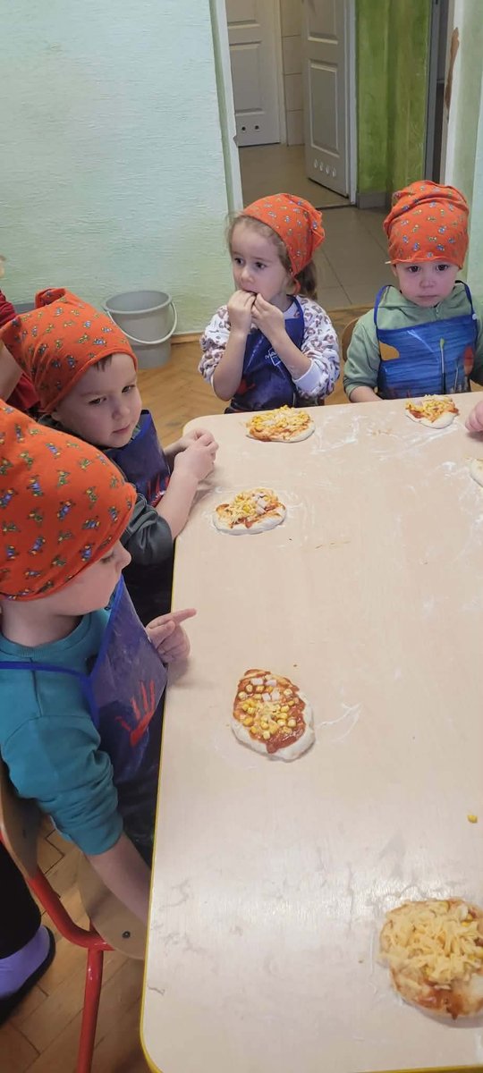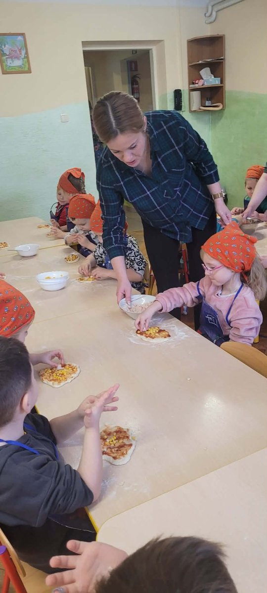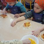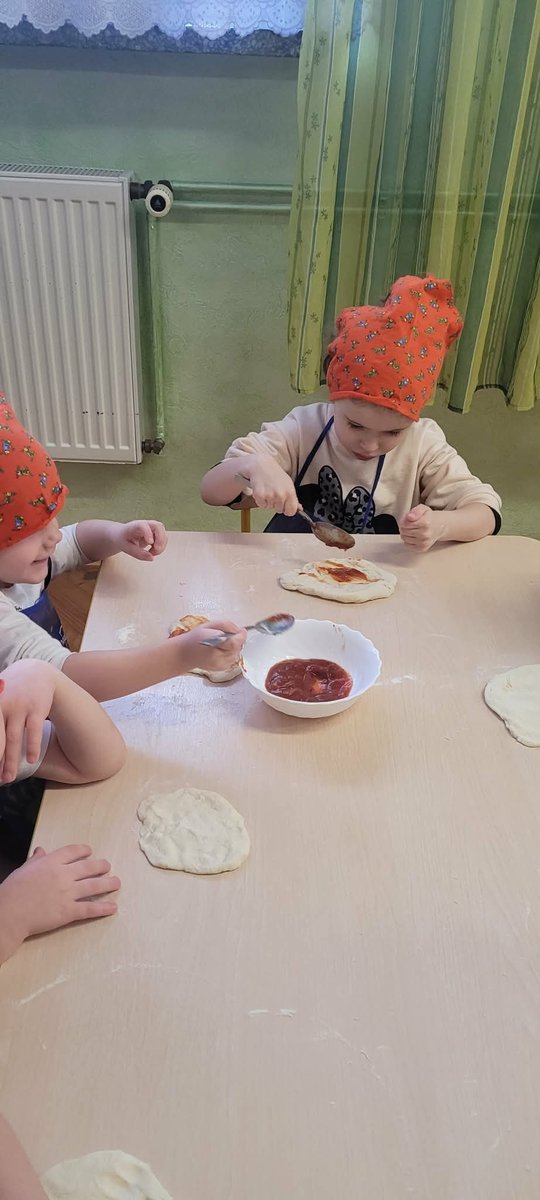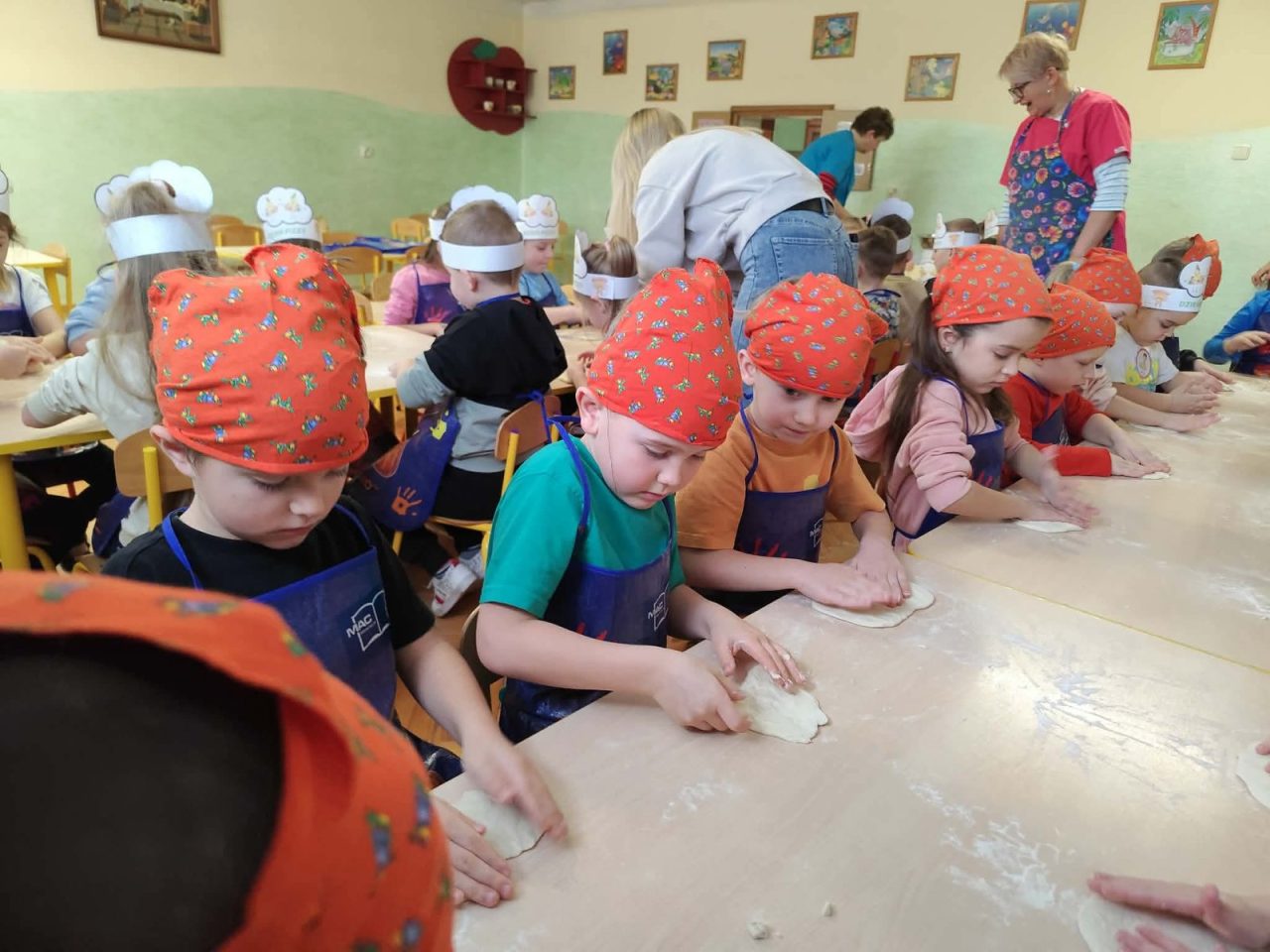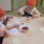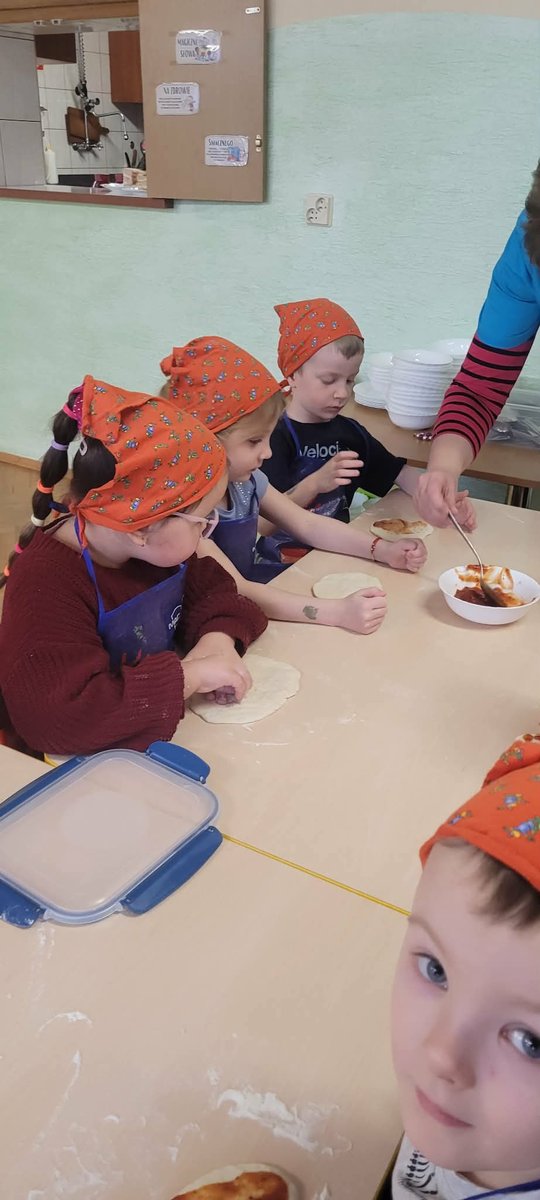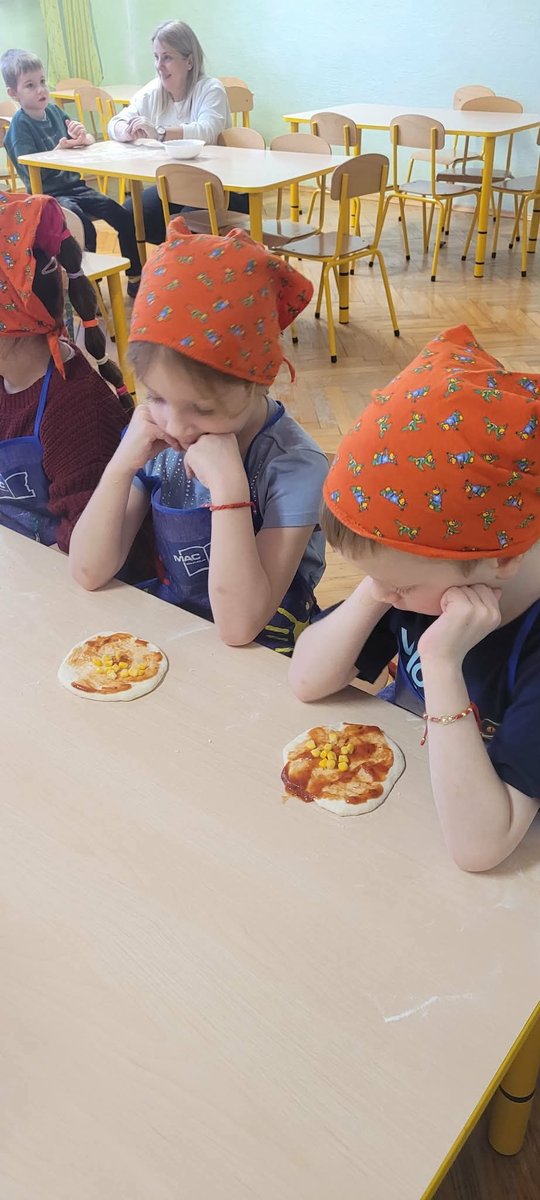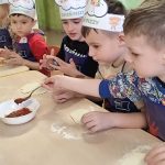 Podczas warsztatów każde z dzieci miało okazję samodzielnie wykonać swoją pizzę, co okazało się wspaniałą zabawą oraz doskonałą okazją do rozwijania kreatywności i umiejętności manualnych. 🍕 Podczas przygotowywania swoich wyjątkowych wypieków, dzieci miały możliwość wyboru ulubionych składników, co sprzyjało ich aktywnemu uczestnictwu i wyrażaniu indywidualnych smaków.