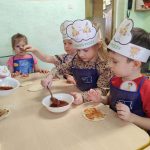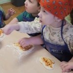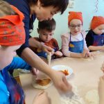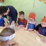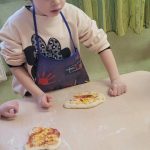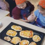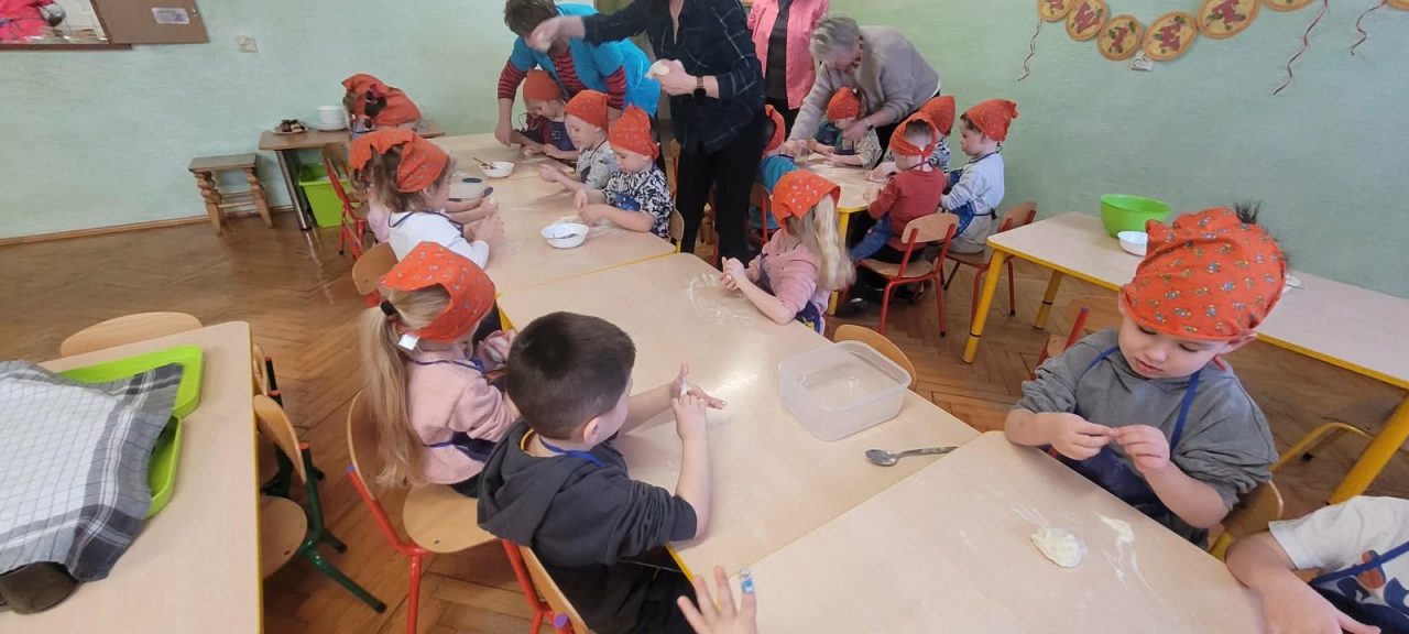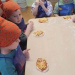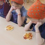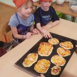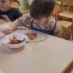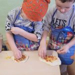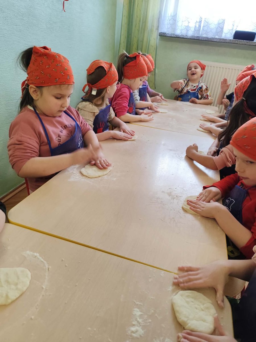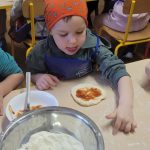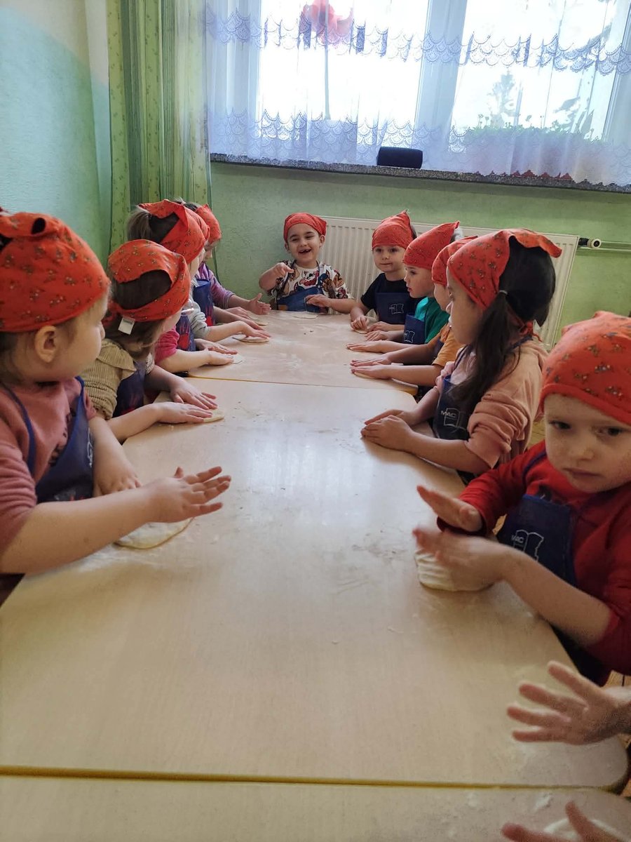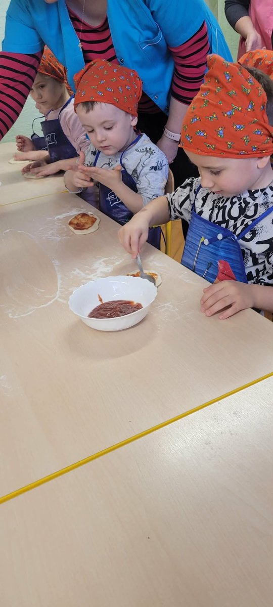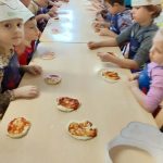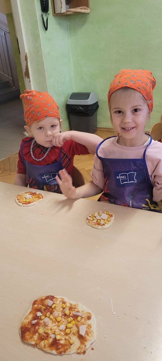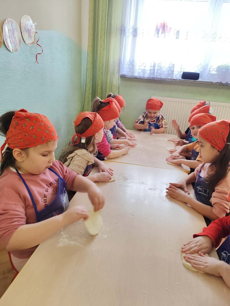 Podczas warsztatów każde z dzieci miało okazję samodzielnie wykonać swoją pizzę, co okazało się wspaniałą zabawą oraz doskonałą okazją do rozwijania kreatywności i umiejętności manualnych. 🍕 Podczas przygotowywania swoich wyjątkowych wypieków, dzieci miały możliwość wyboru ulubionych składników, co sprzyjało ich aktywnemu uczestnictwu i wyrażaniu indywidualnych smaków.