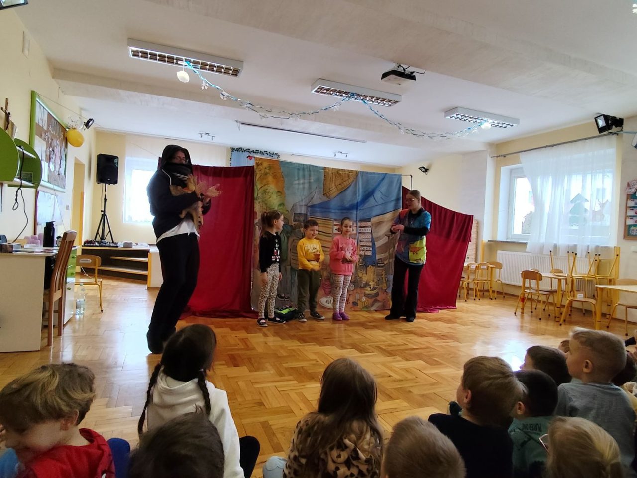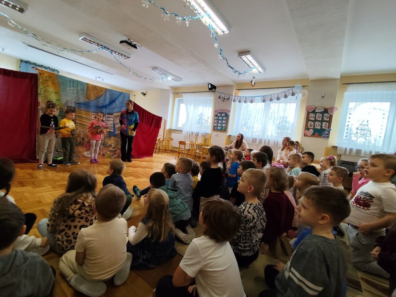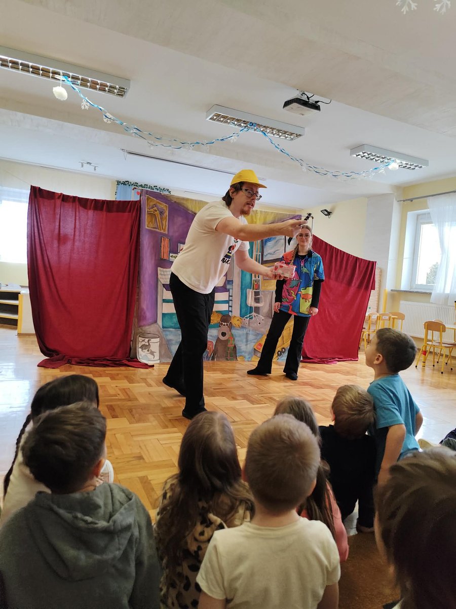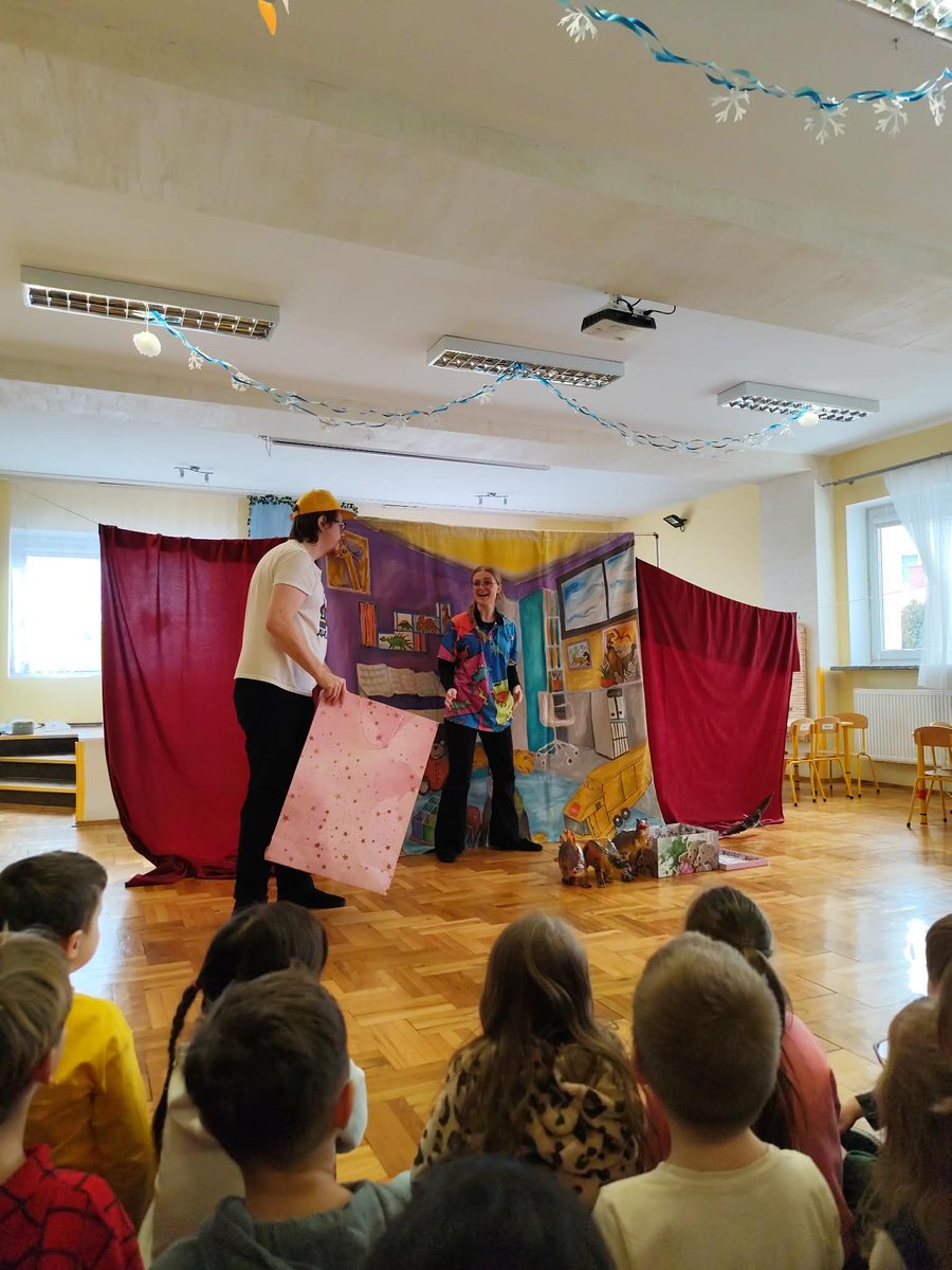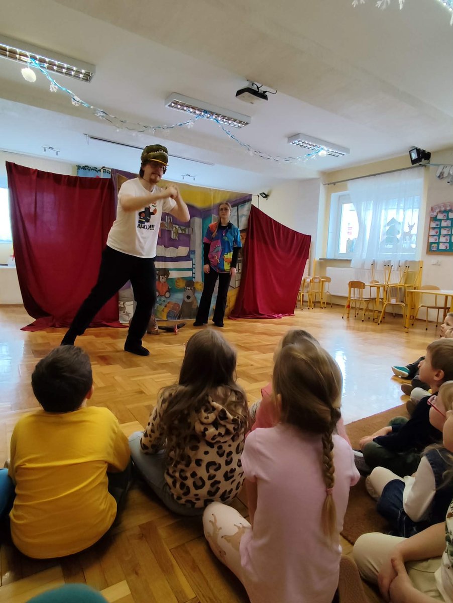 Nasze przedszkolaki miały wyjątkową okazję wystąpić razem z utalentowanymi aktorami! 🌟 Dzieci chętnie brały udział w przedstawieniu, odpowiadając na pytania oraz angażując się w interakcję z postaciami. To była piękna i edukacyjna chwila, która z pewnością na długo pozostanie w pamięci naszych maluchów 🥰.