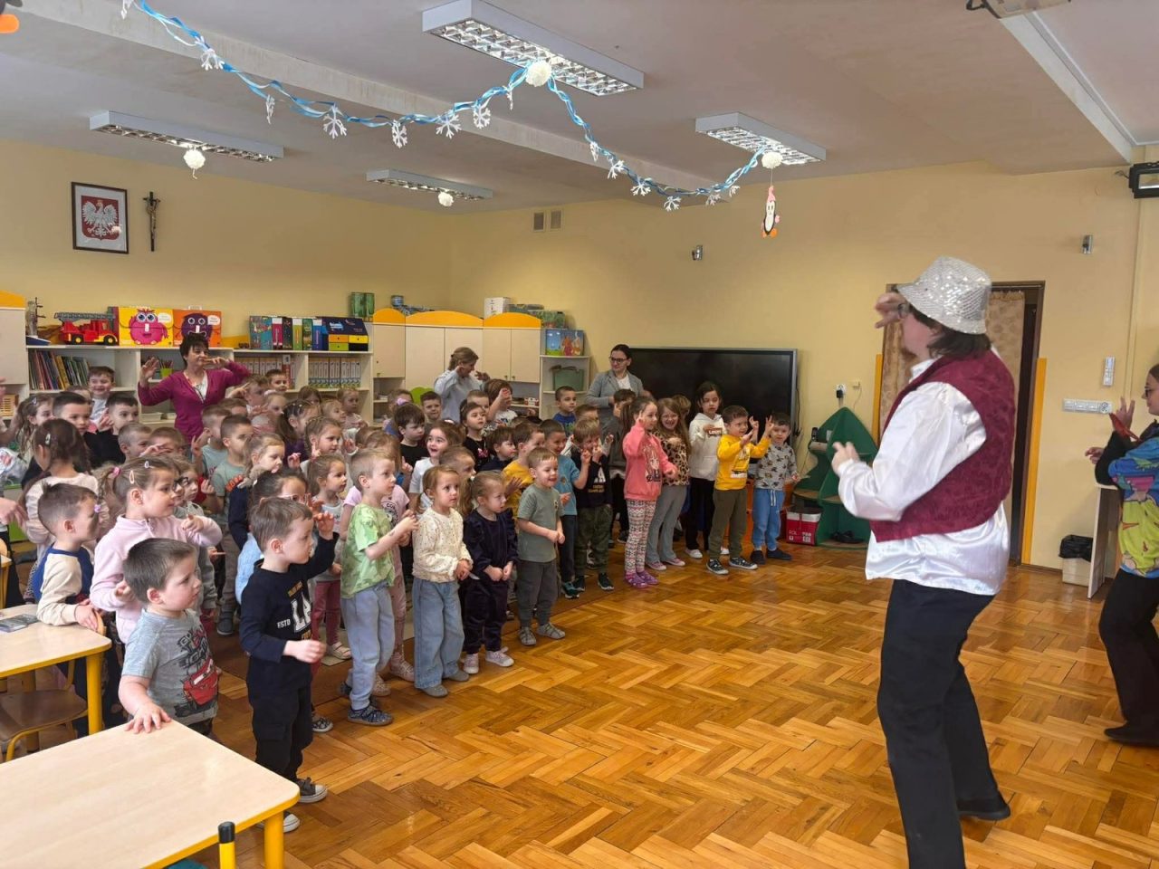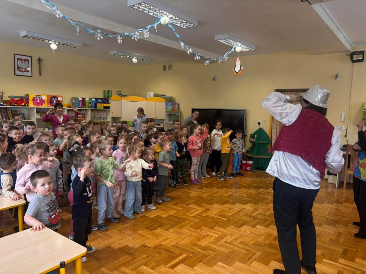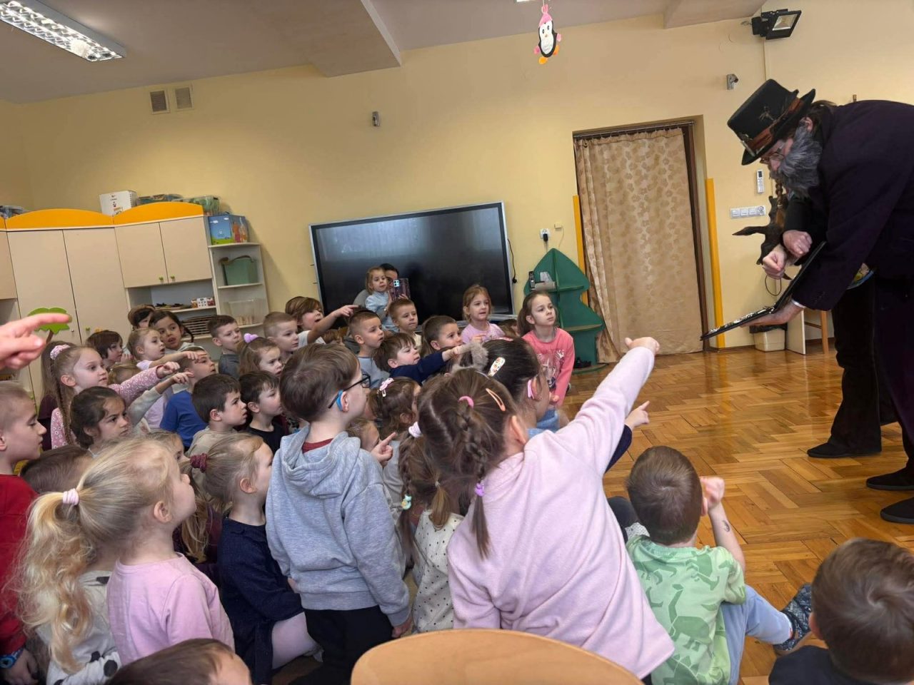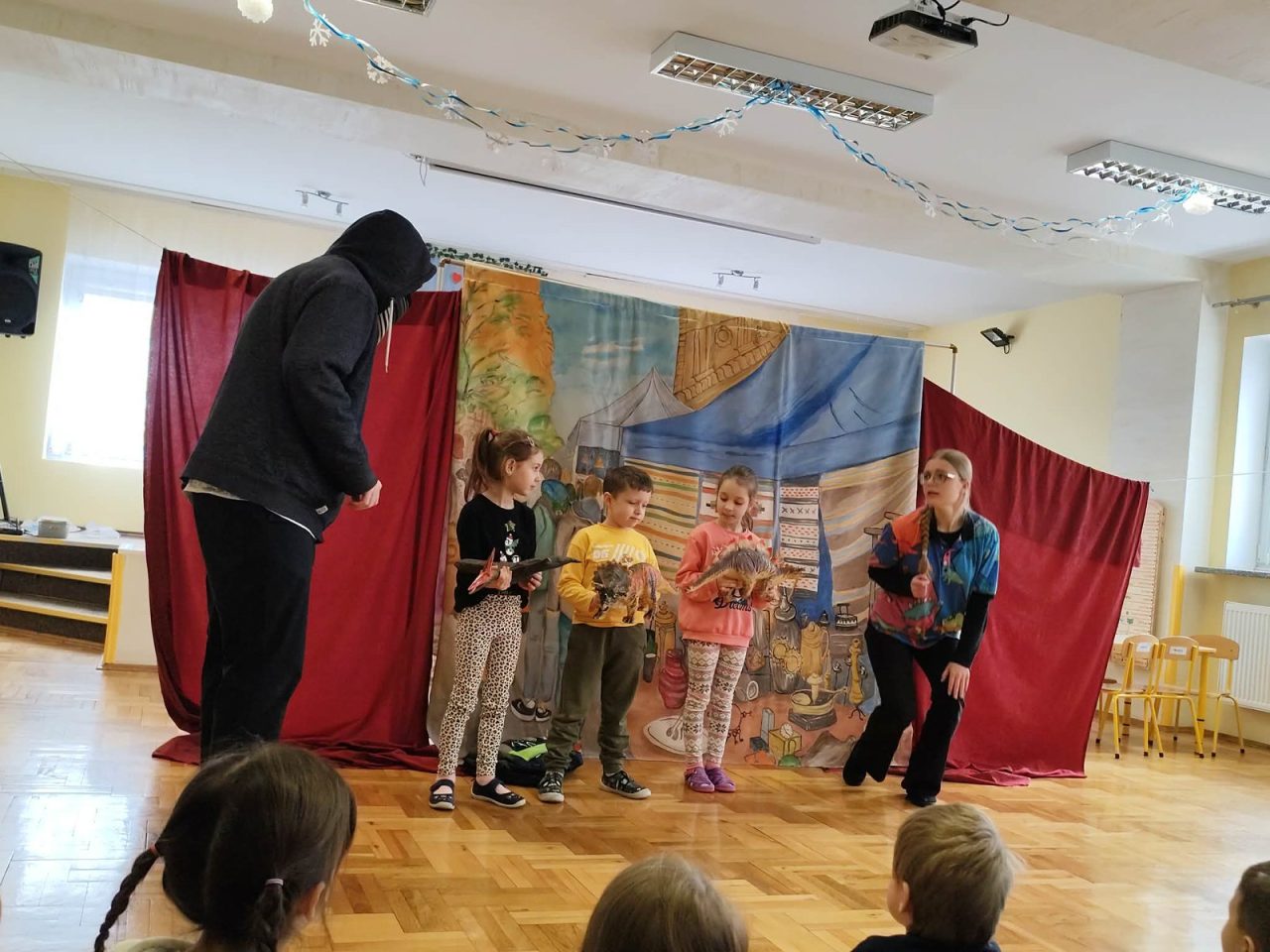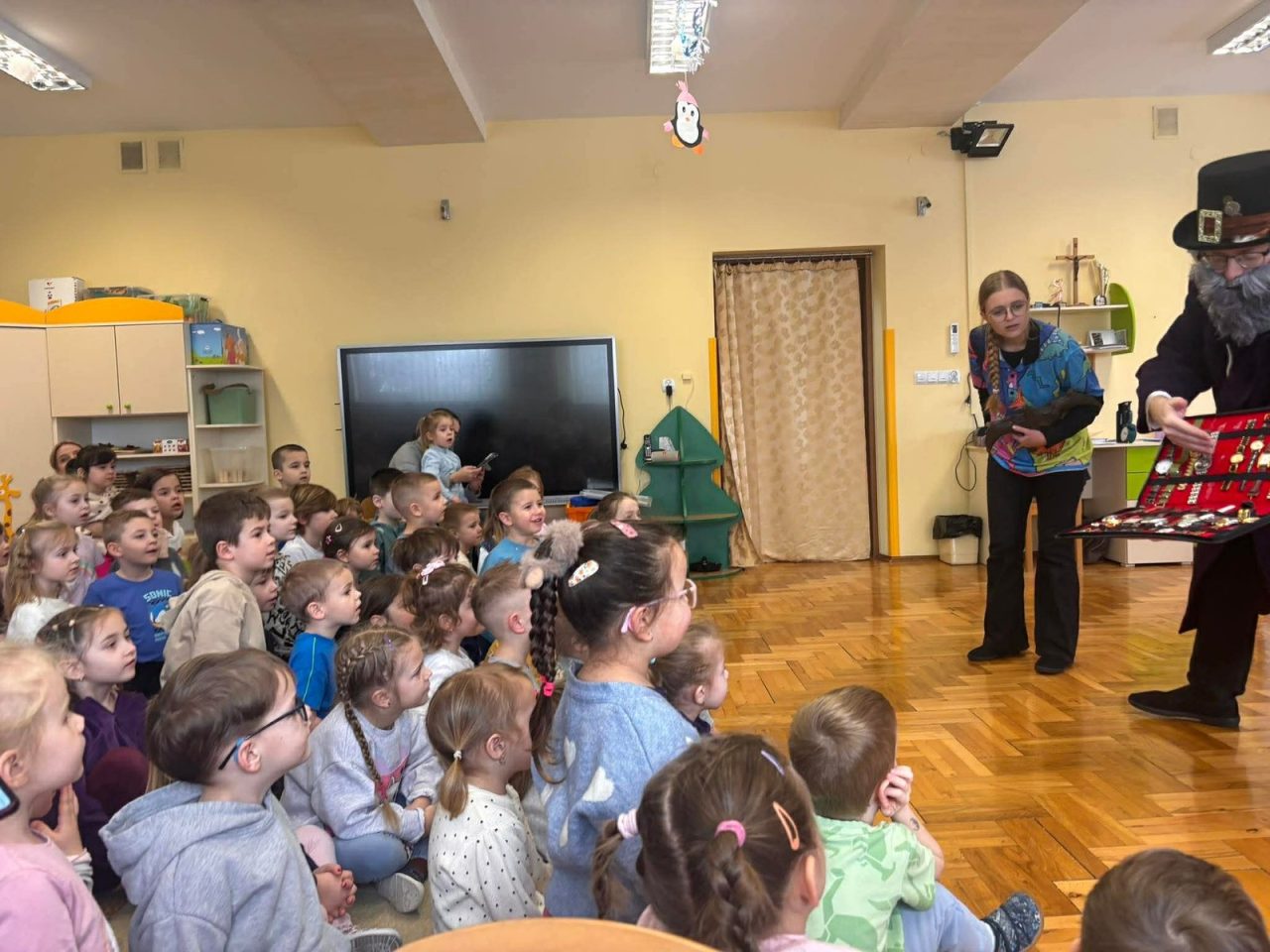 Nasze przedszkolaki miały wyjątkową okazję wystąpić razem z utalentowanymi aktorami! 🌟 Dzieci chętnie brały udział w przedstawieniu, odpowiadając na pytania oraz angażując się w interakcję z postaciami. To była piękna i edukacyjna chwila, która z pewnością na długo pozostanie w pamięci naszych maluchów 🥰.