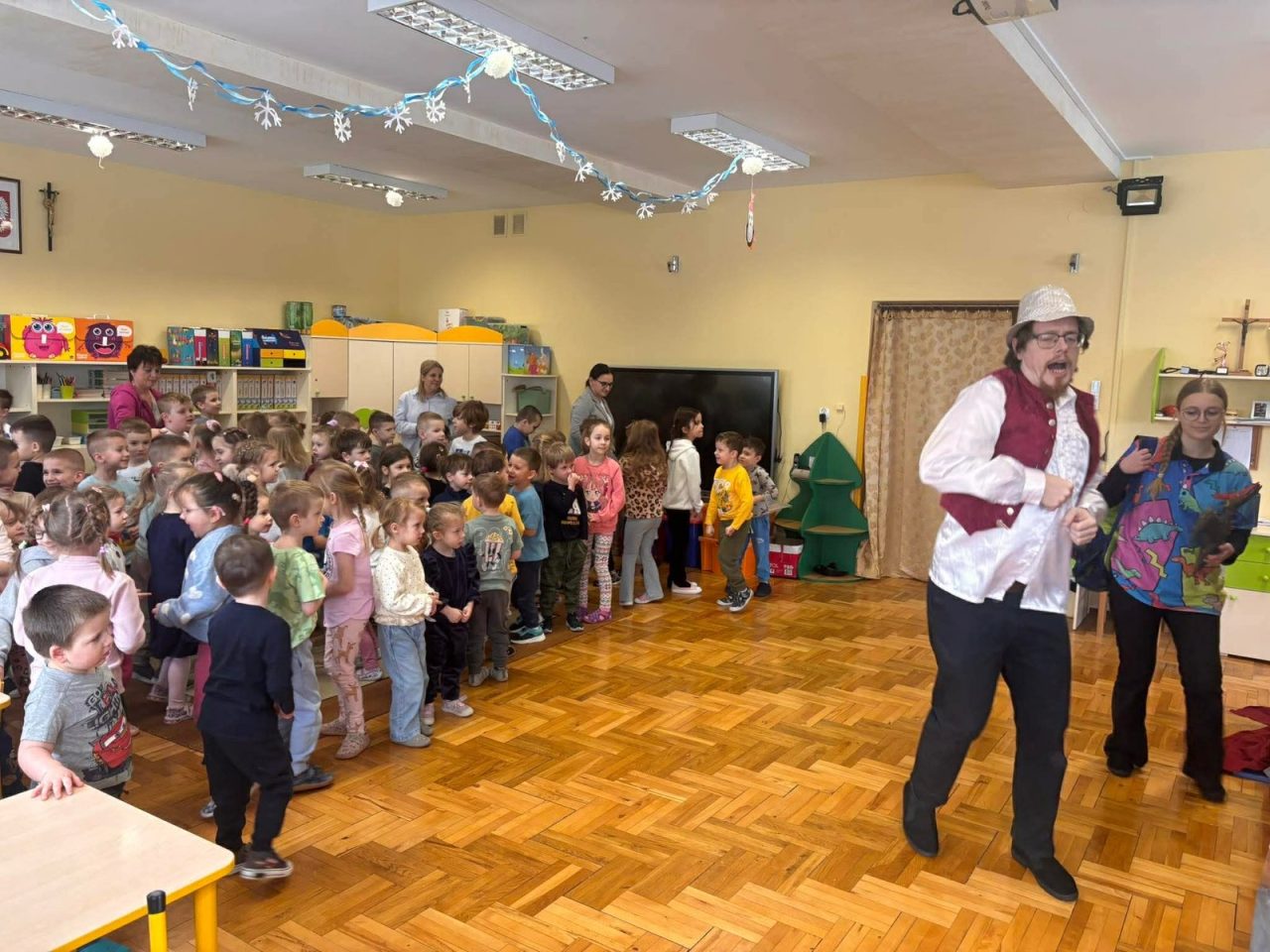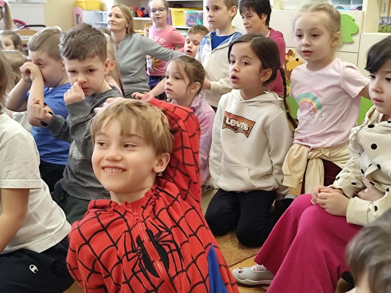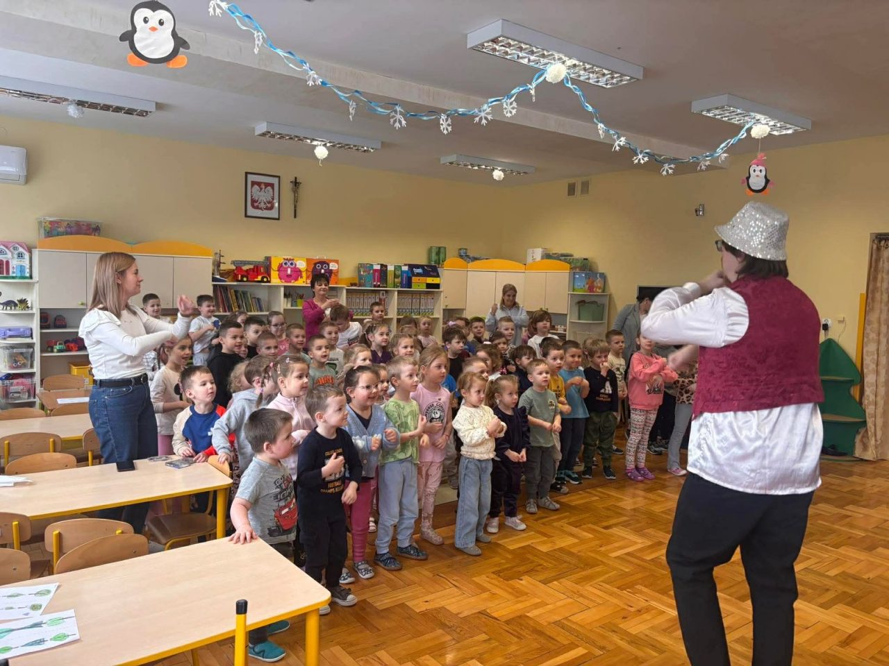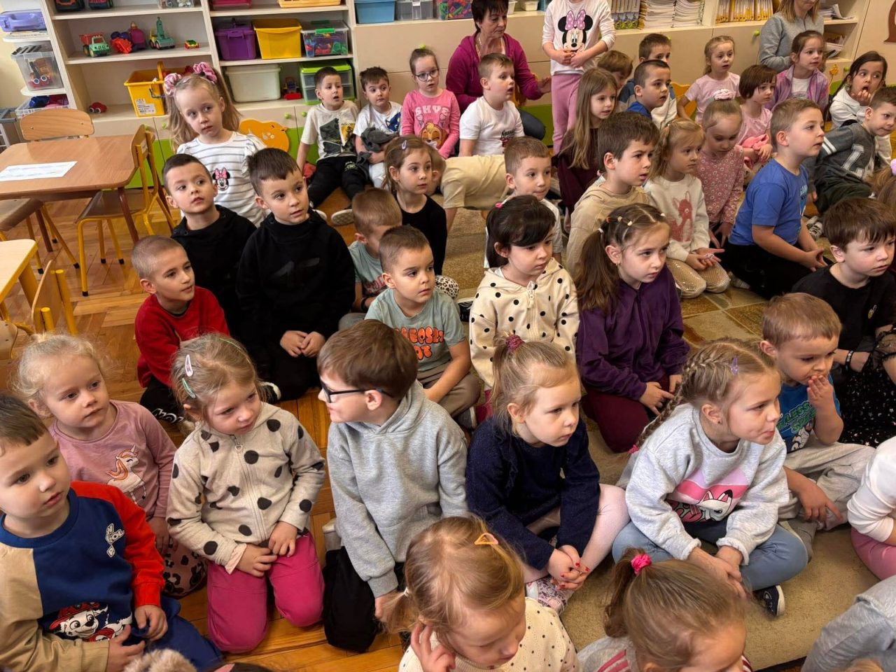 Nasze przedszkolaki miały wyjątkową okazję wystąpić razem z utalentowanymi aktorami! 🌟 Dzieci chętnie brały udział w przedstawieniu, odpowiadając na pytania oraz angażując się w interakcję z postaciami. To była piękna i edukacyjna chwila, która z pewnością na długo pozostanie w pamięci naszych maluchów 🥰.