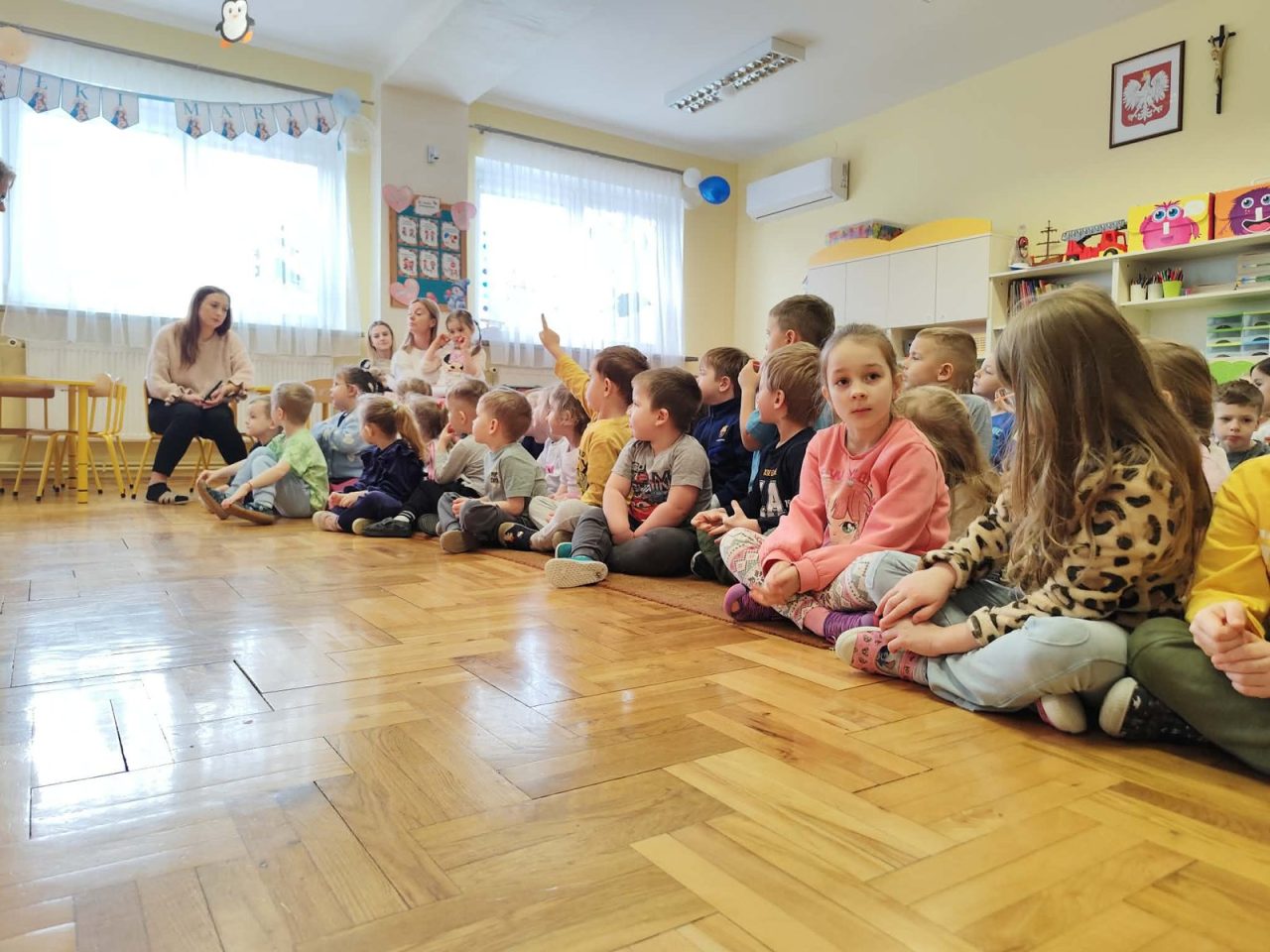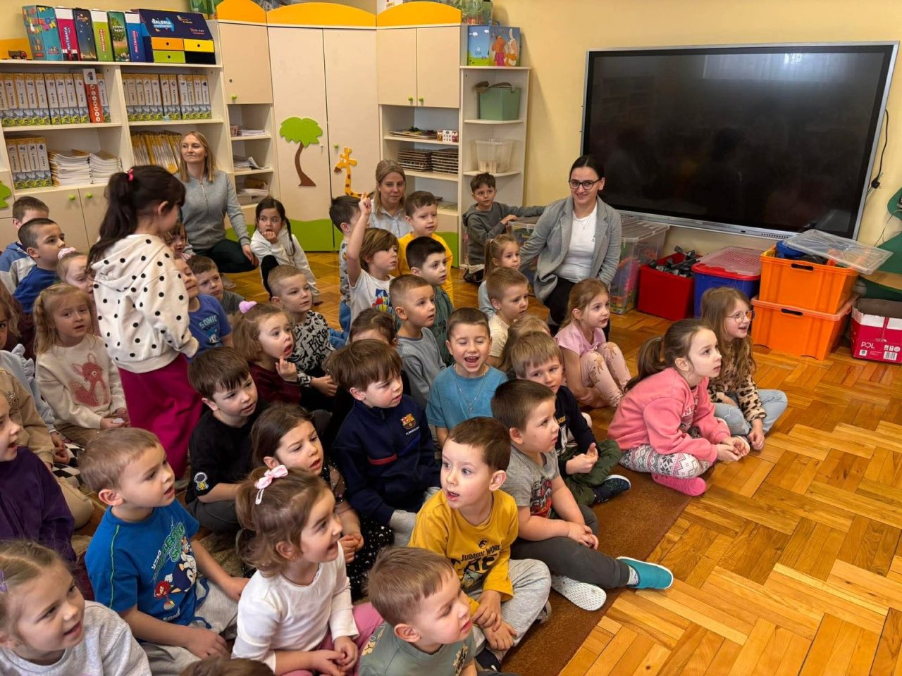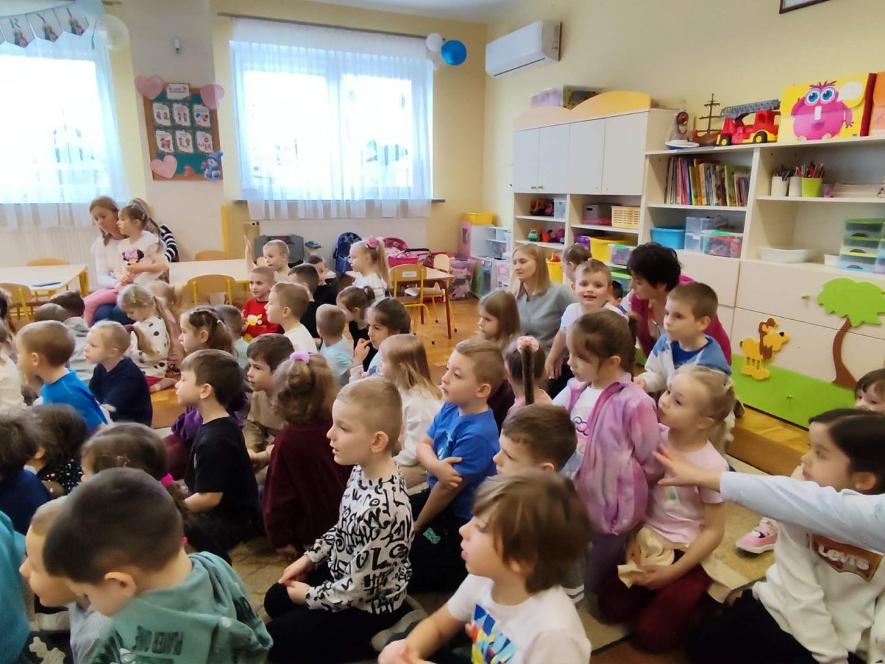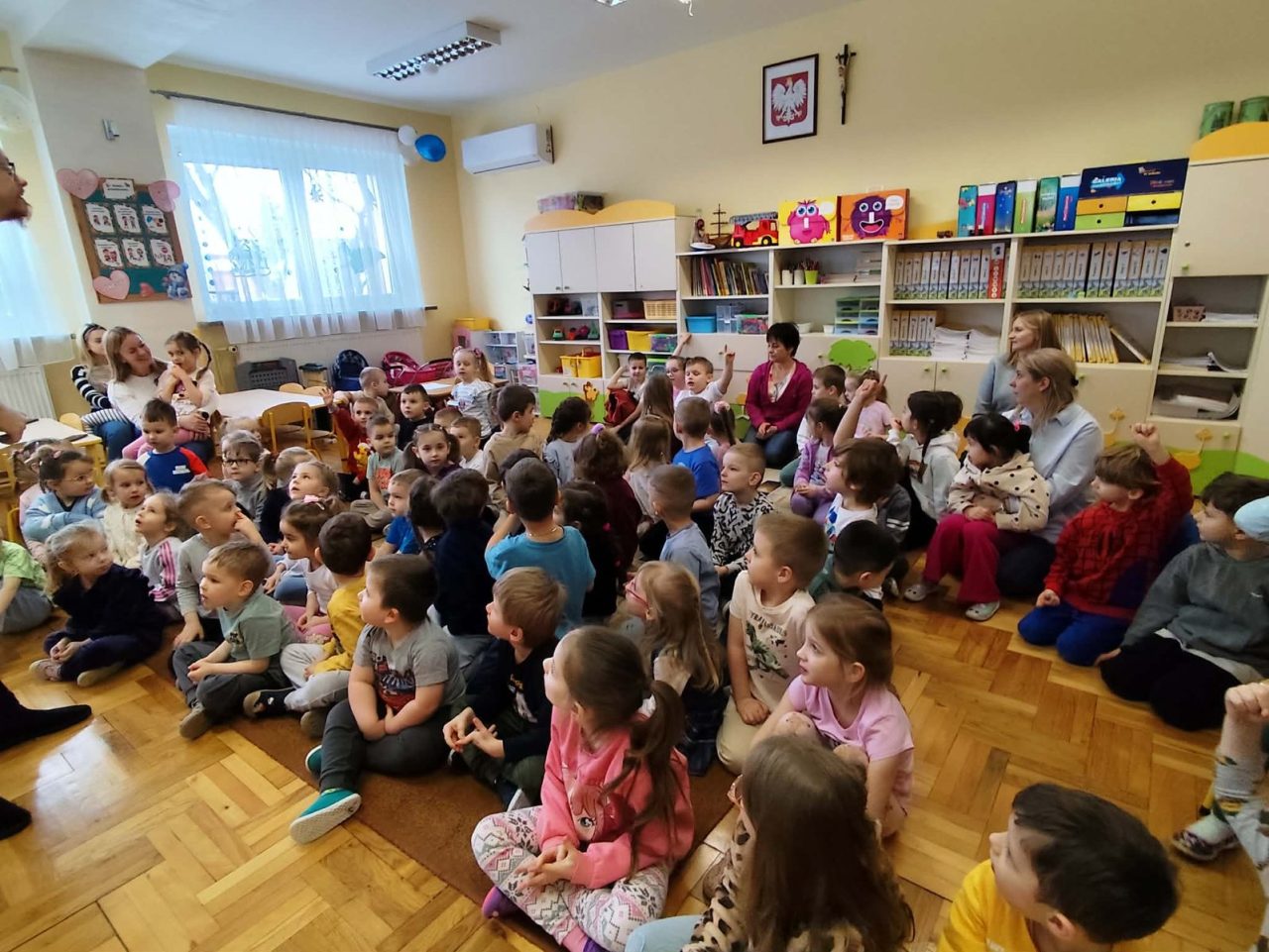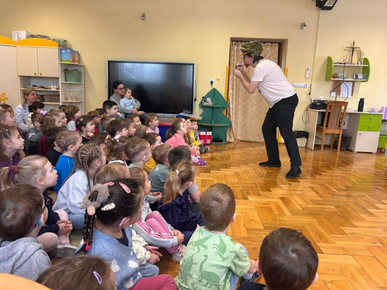 Nasze przedszkolaki miały wyjątkową okazję wystąpić razem z utalentowanymi aktorami! 🌟 Dzieci chętnie brały udział w przedstawieniu, odpowiadając na pytania oraz angażując się w interakcję z postaciami. To była piękna i edukacyjna chwila, która z pewnością na długo pozostanie w pamięci naszych maluchów 🥰.